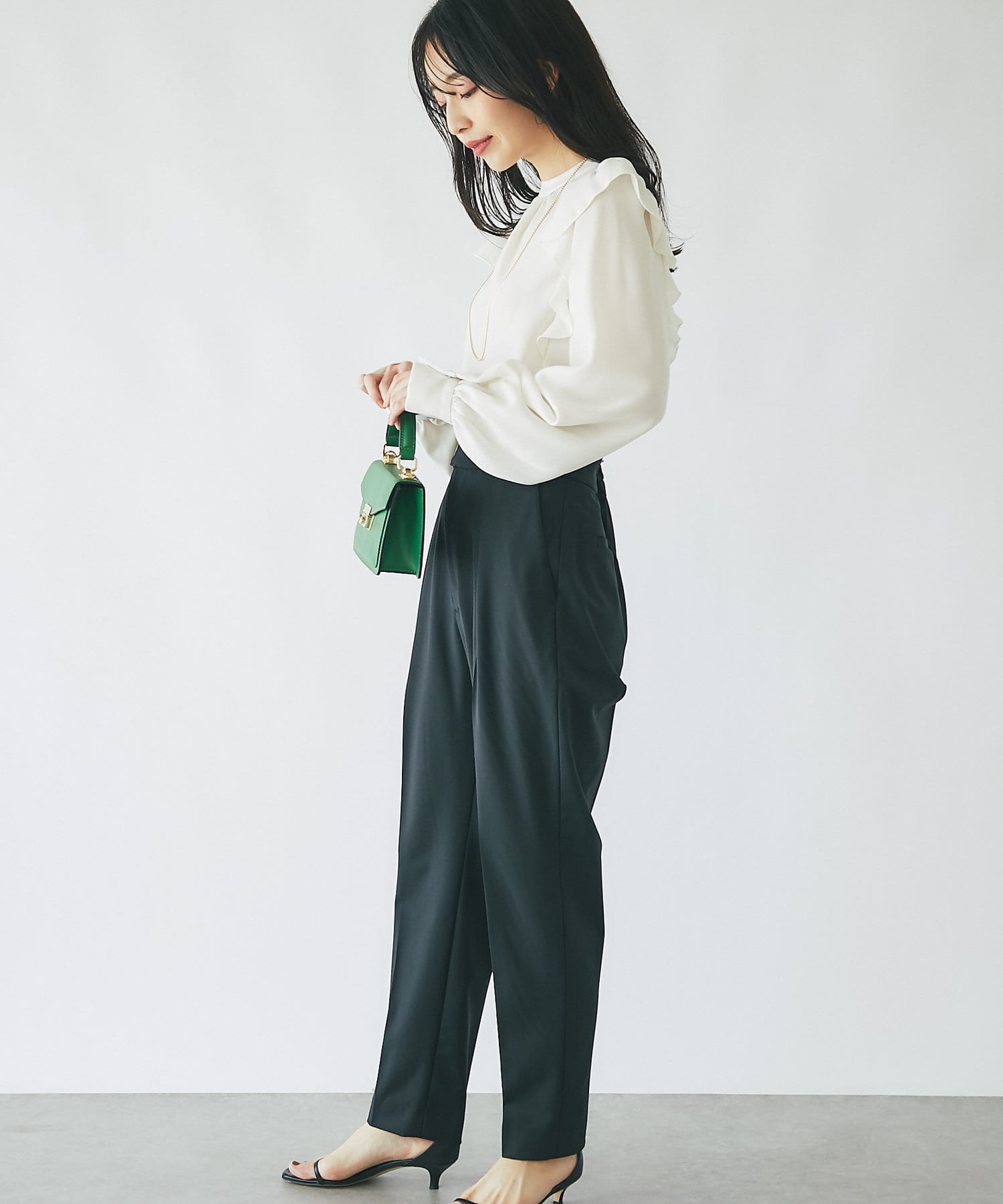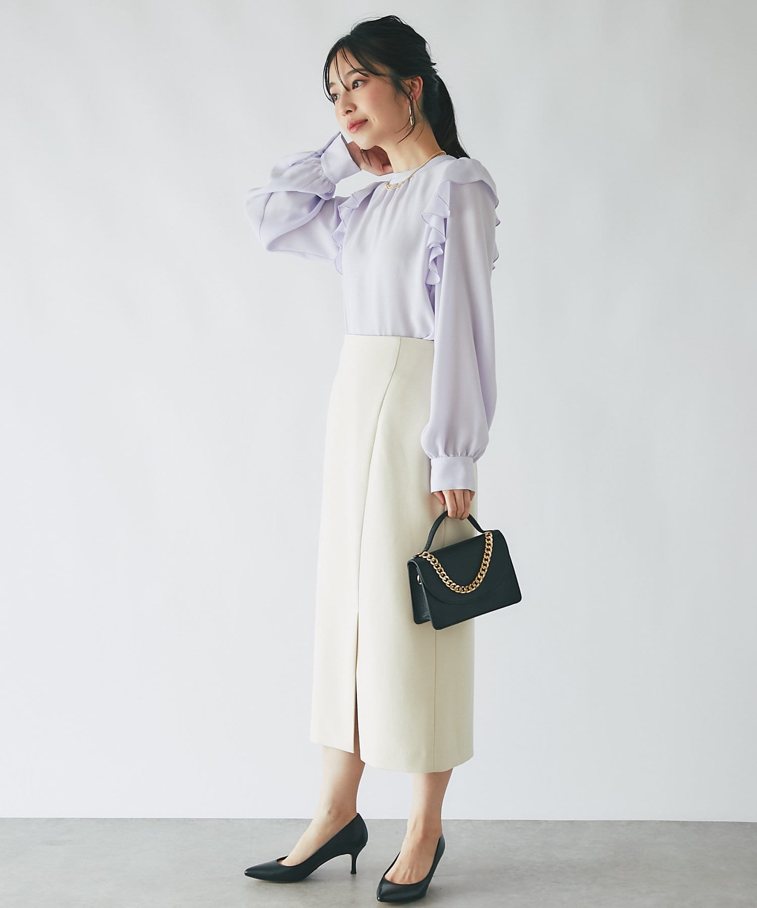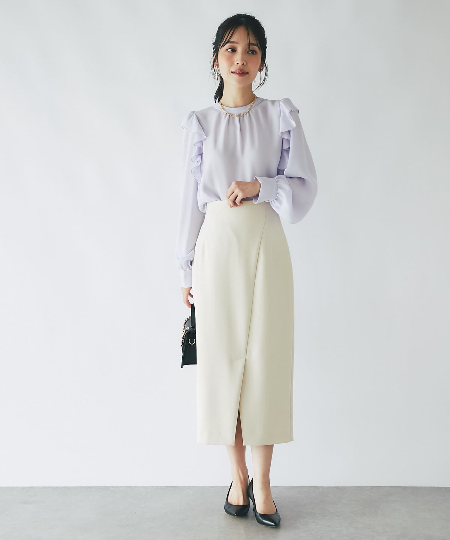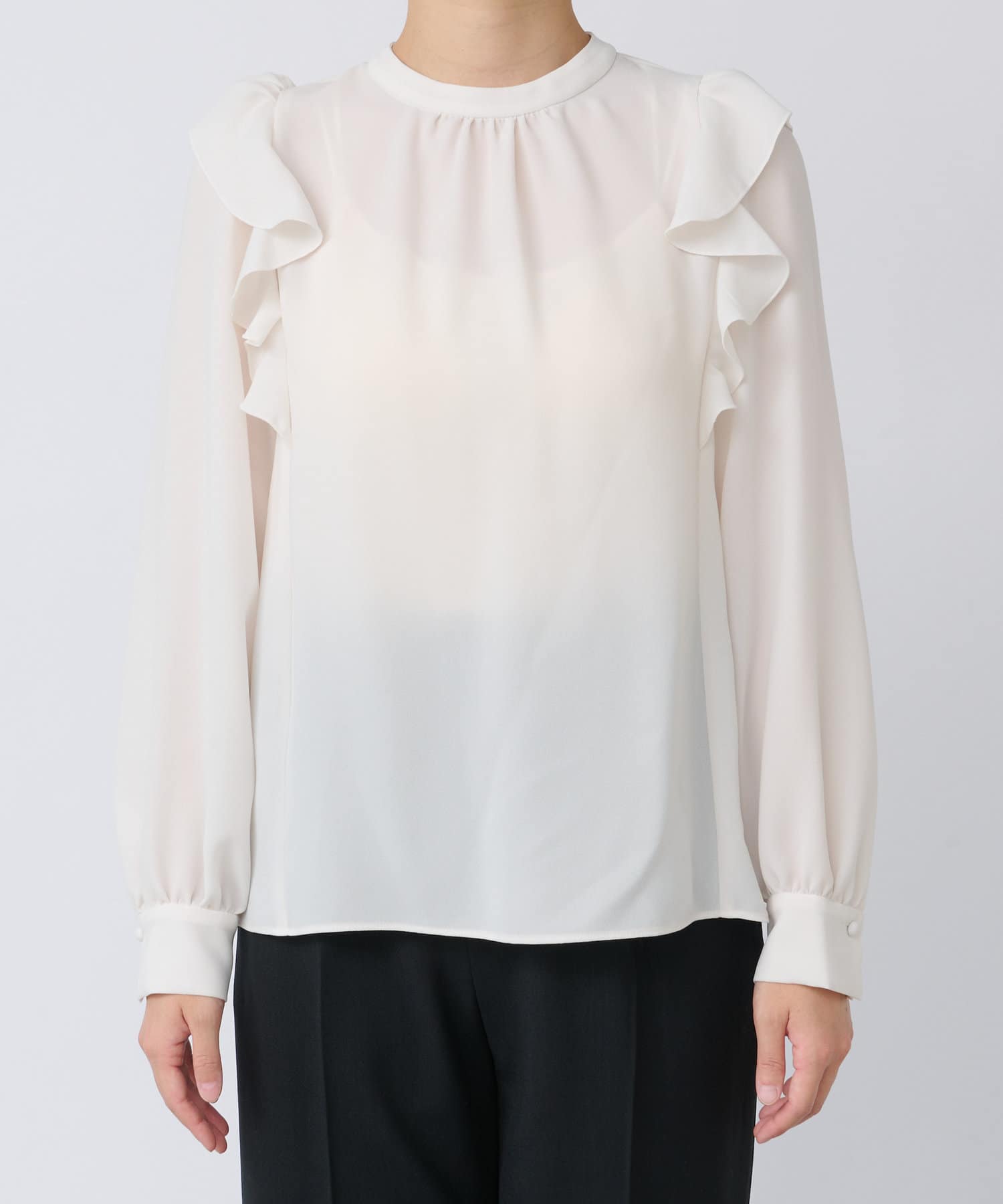 ラッフルデザインが映えるオトナ可愛い上品ブラウス