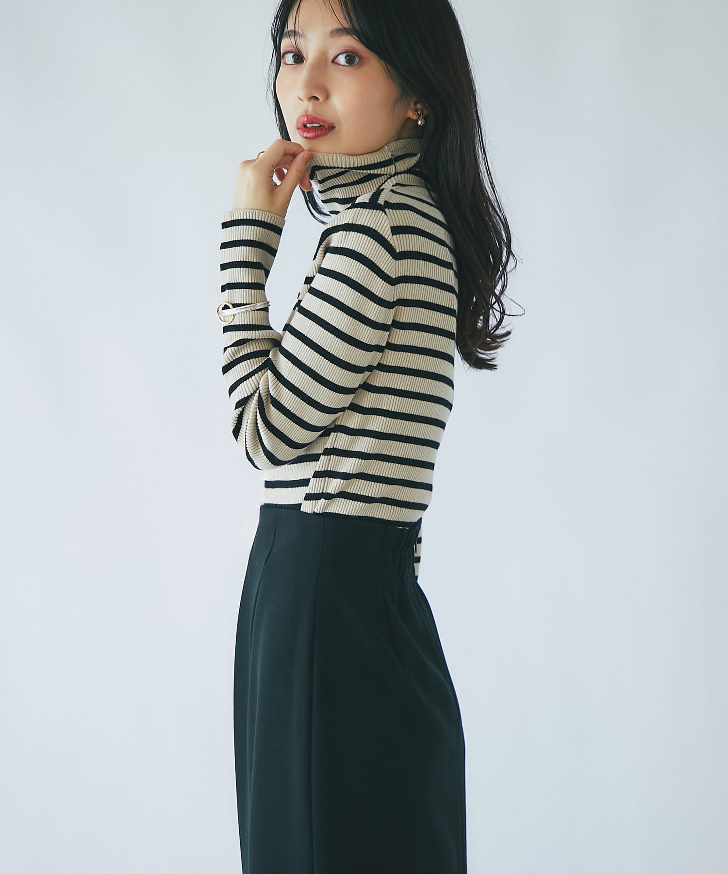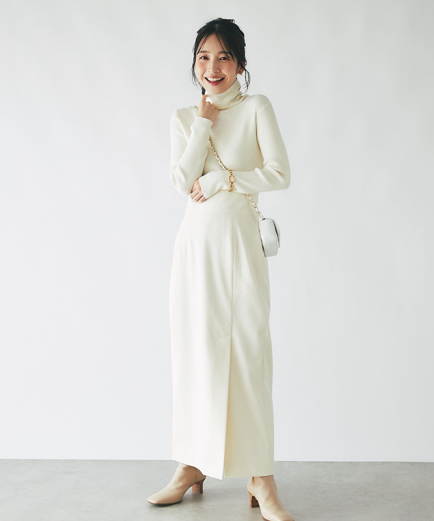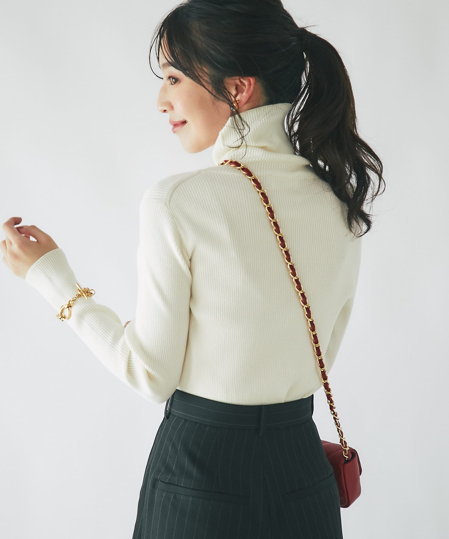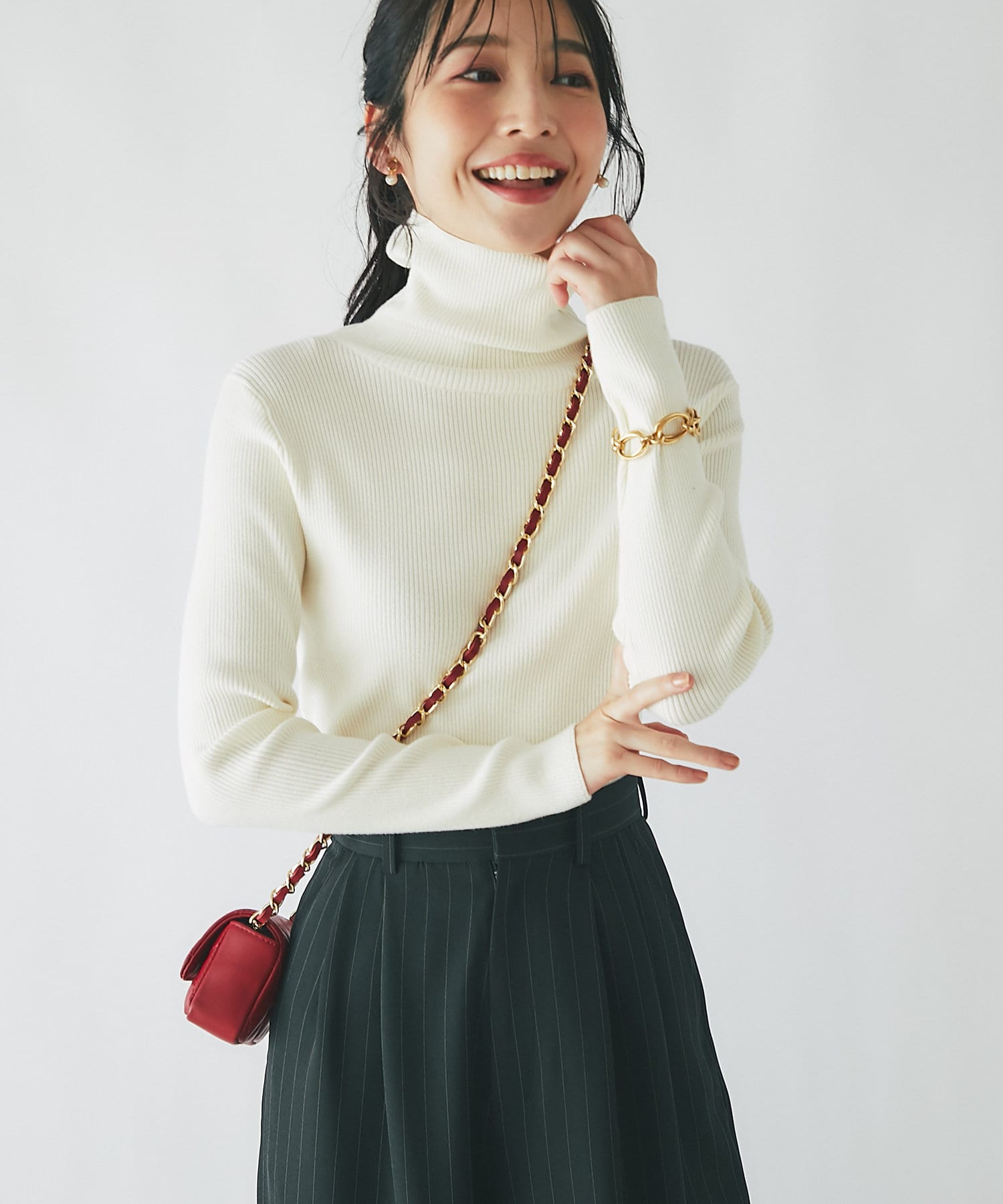 もっちりとした肌触りで着心地の良いタートルニットです。