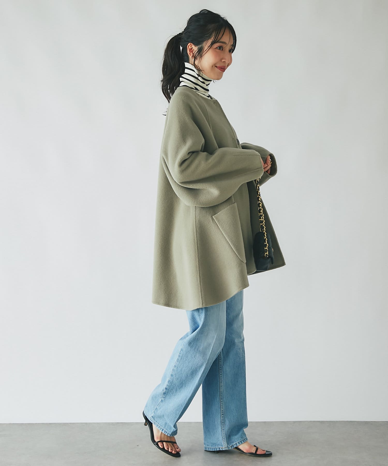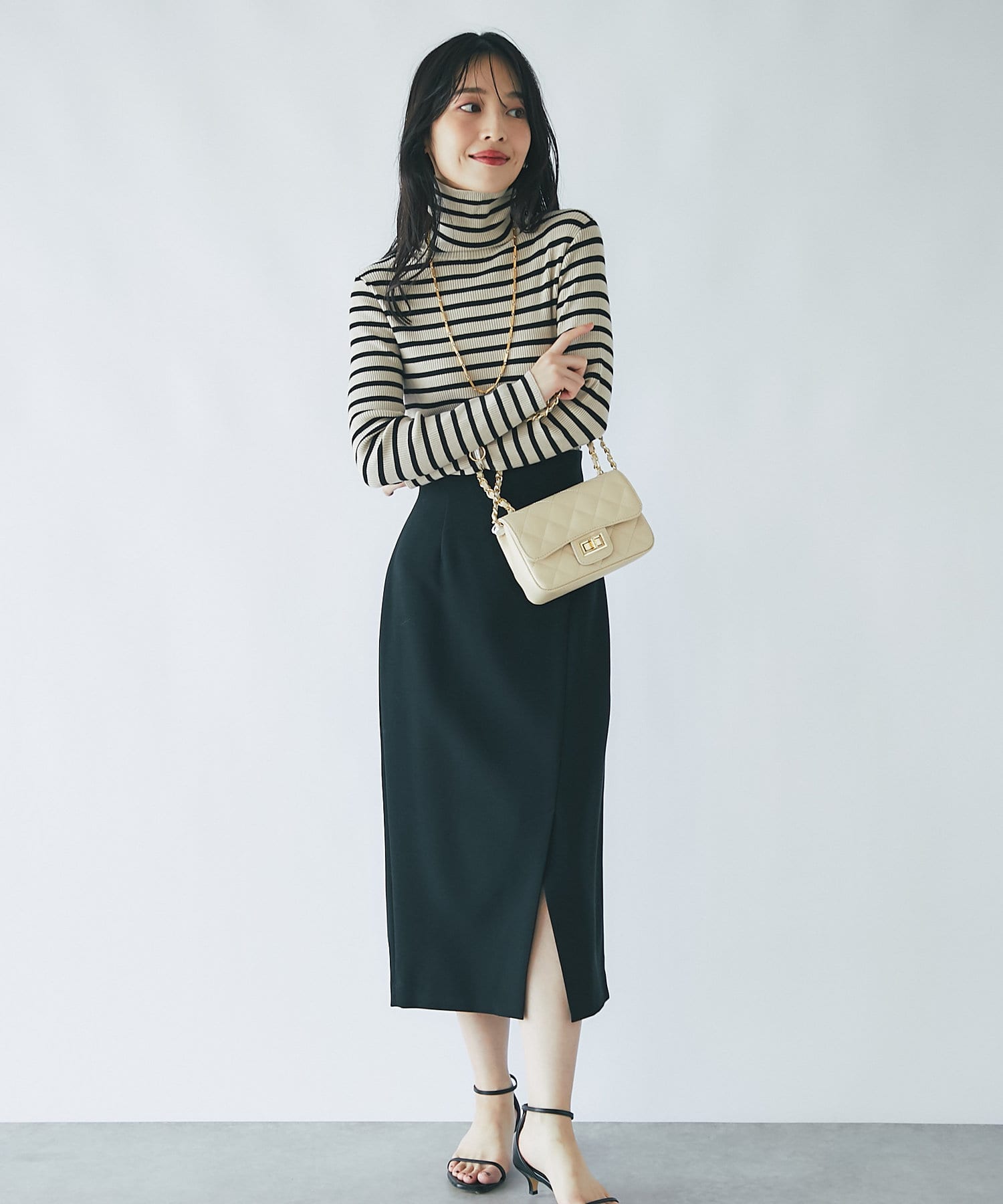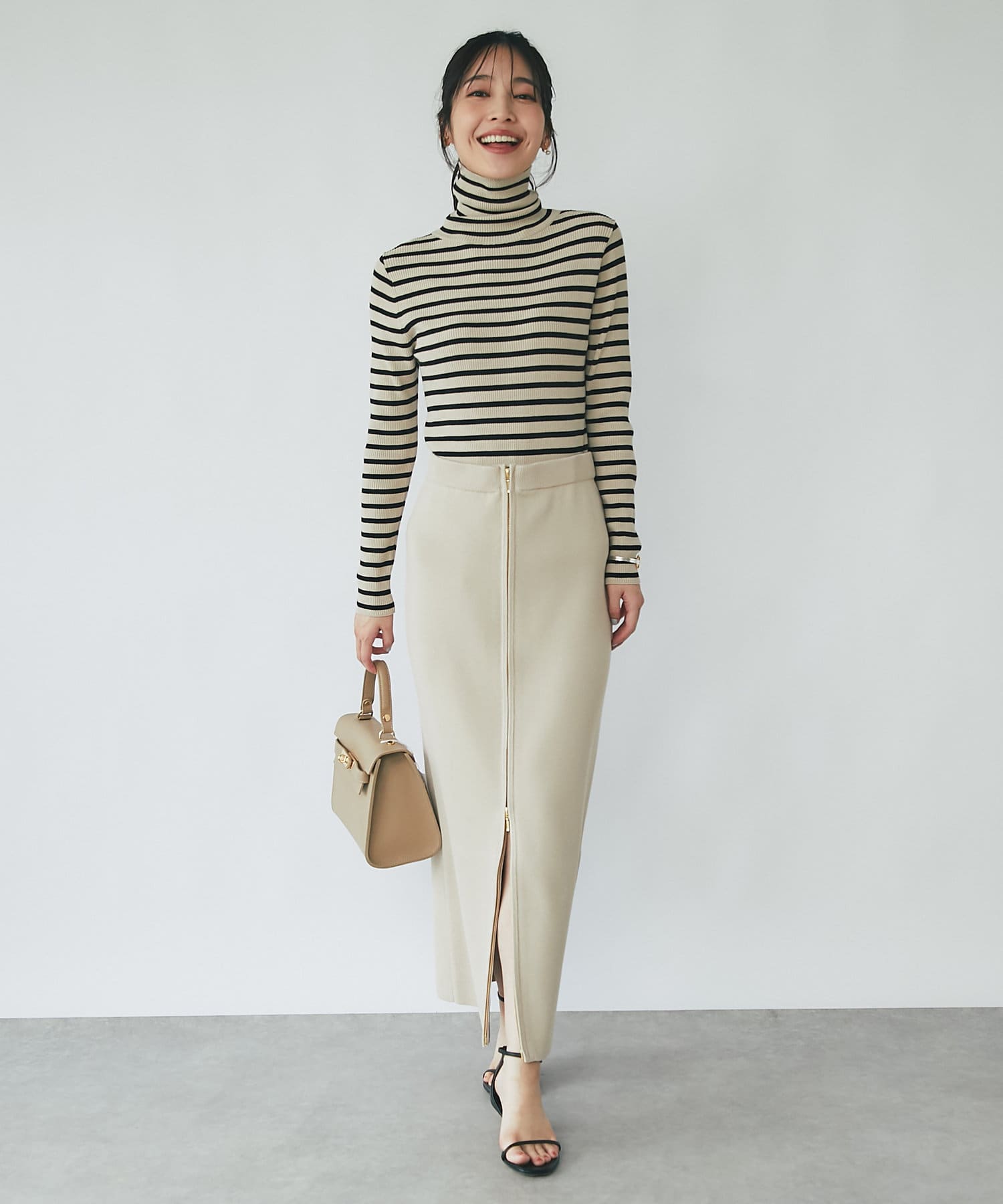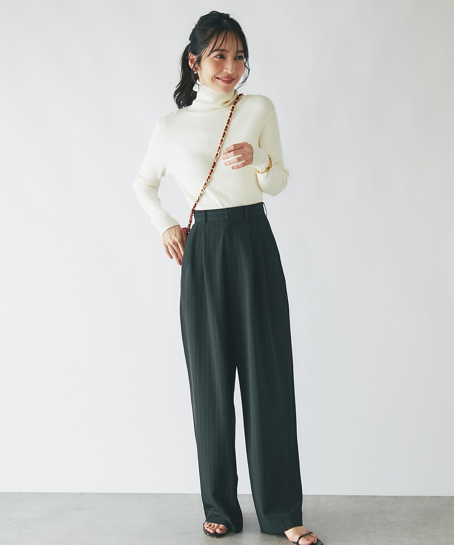 もっちりとした肌触りで着心地の良いタートルニットです。