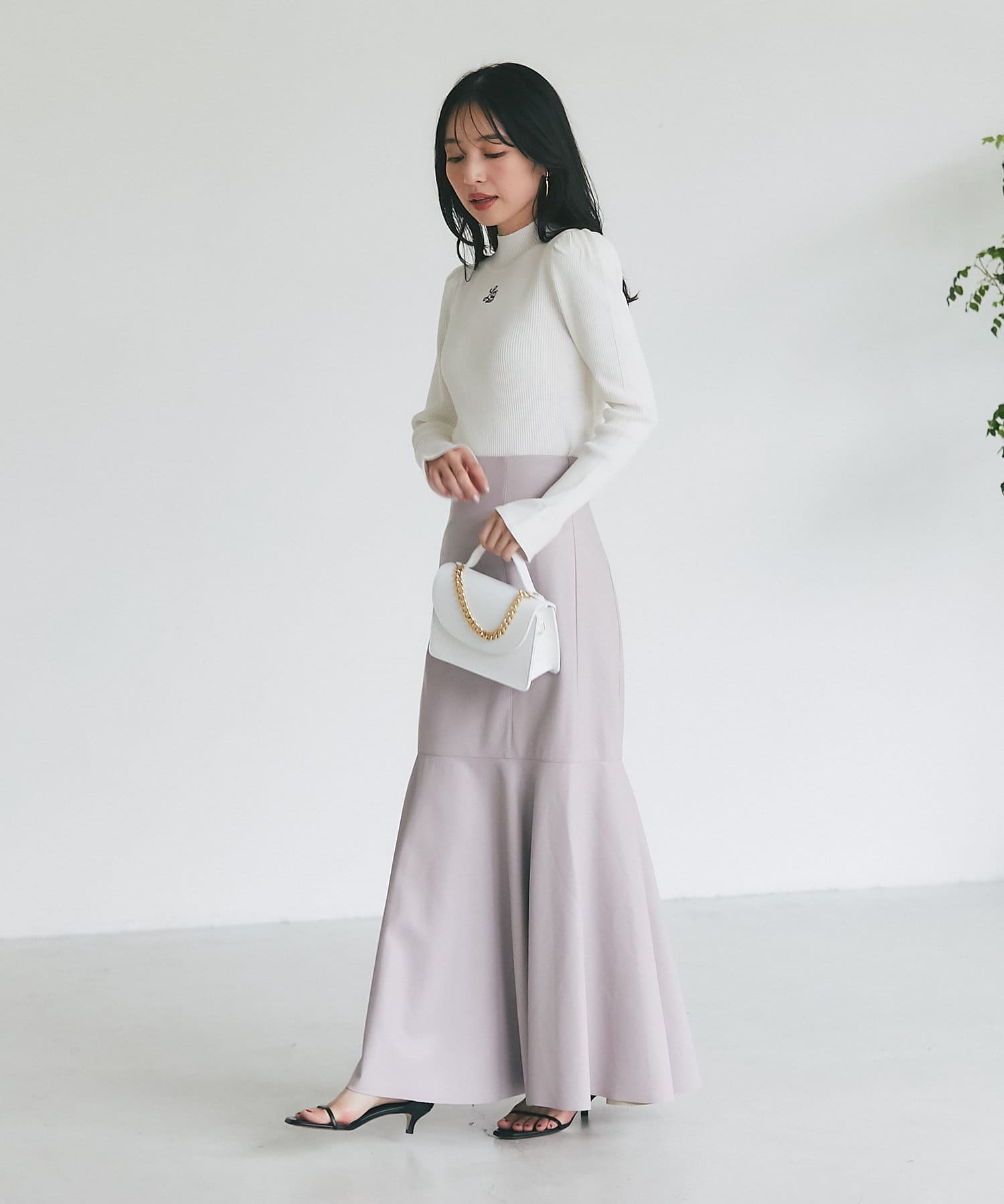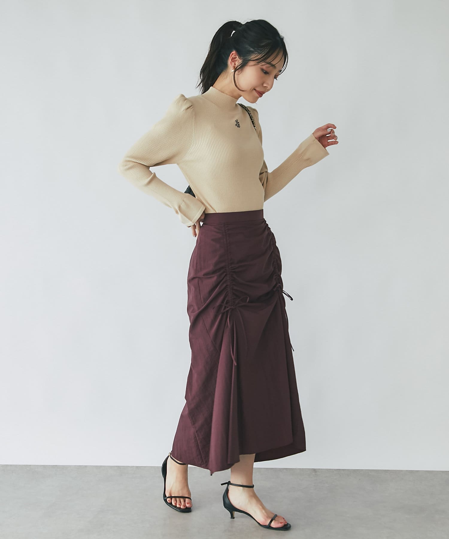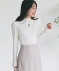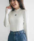 着心地の良いワイドリブニットにワンポイント刺繍を施しました。
