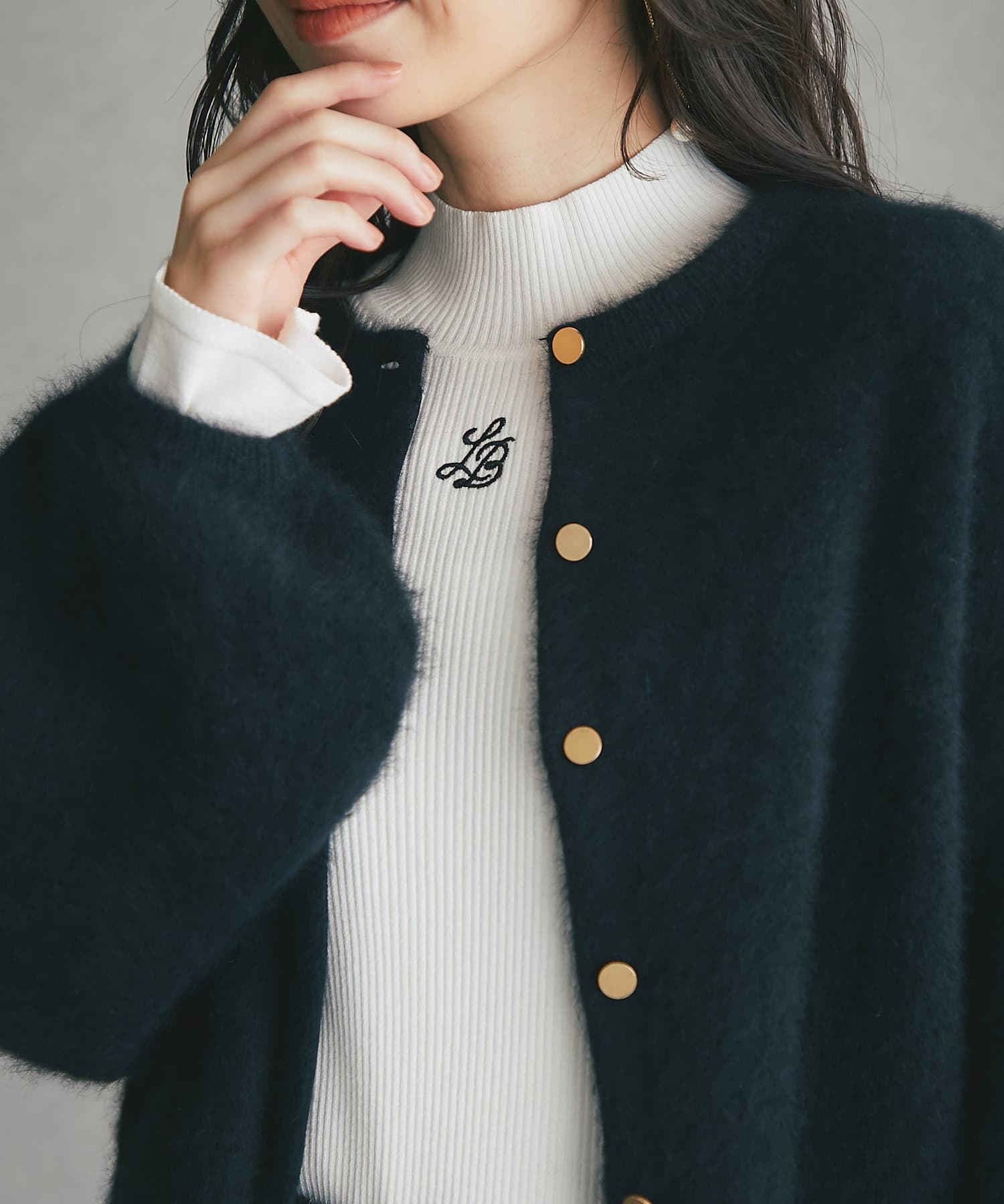 ブランド名の頭文字を取ってLとBを合わせたロゴ刺繍。