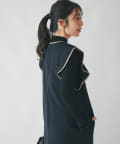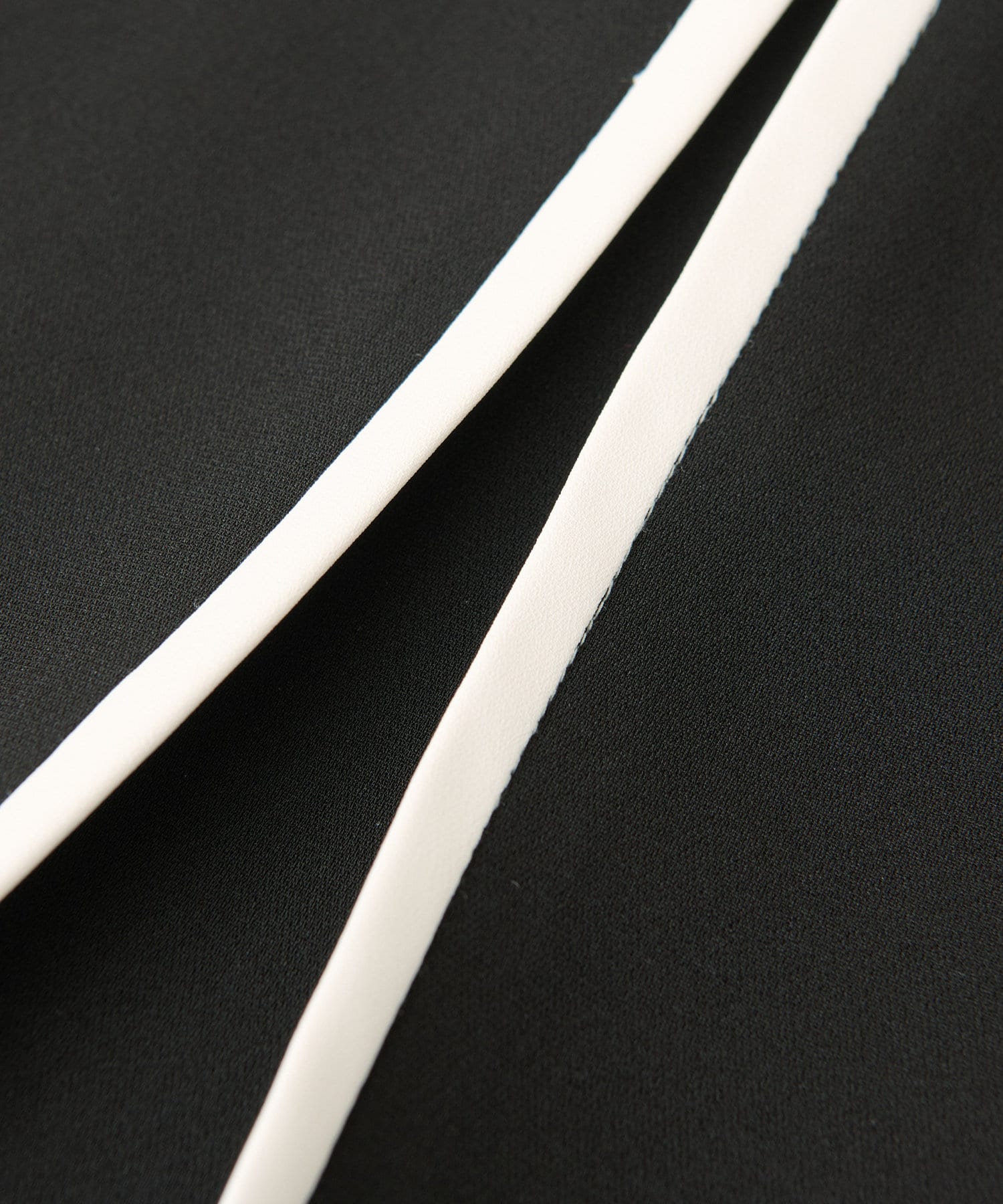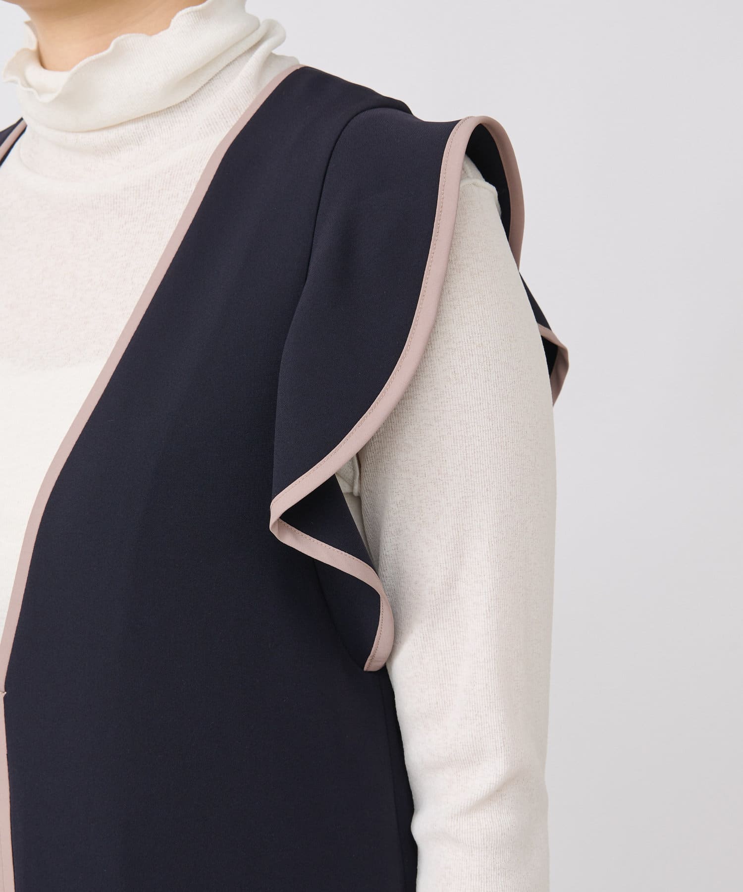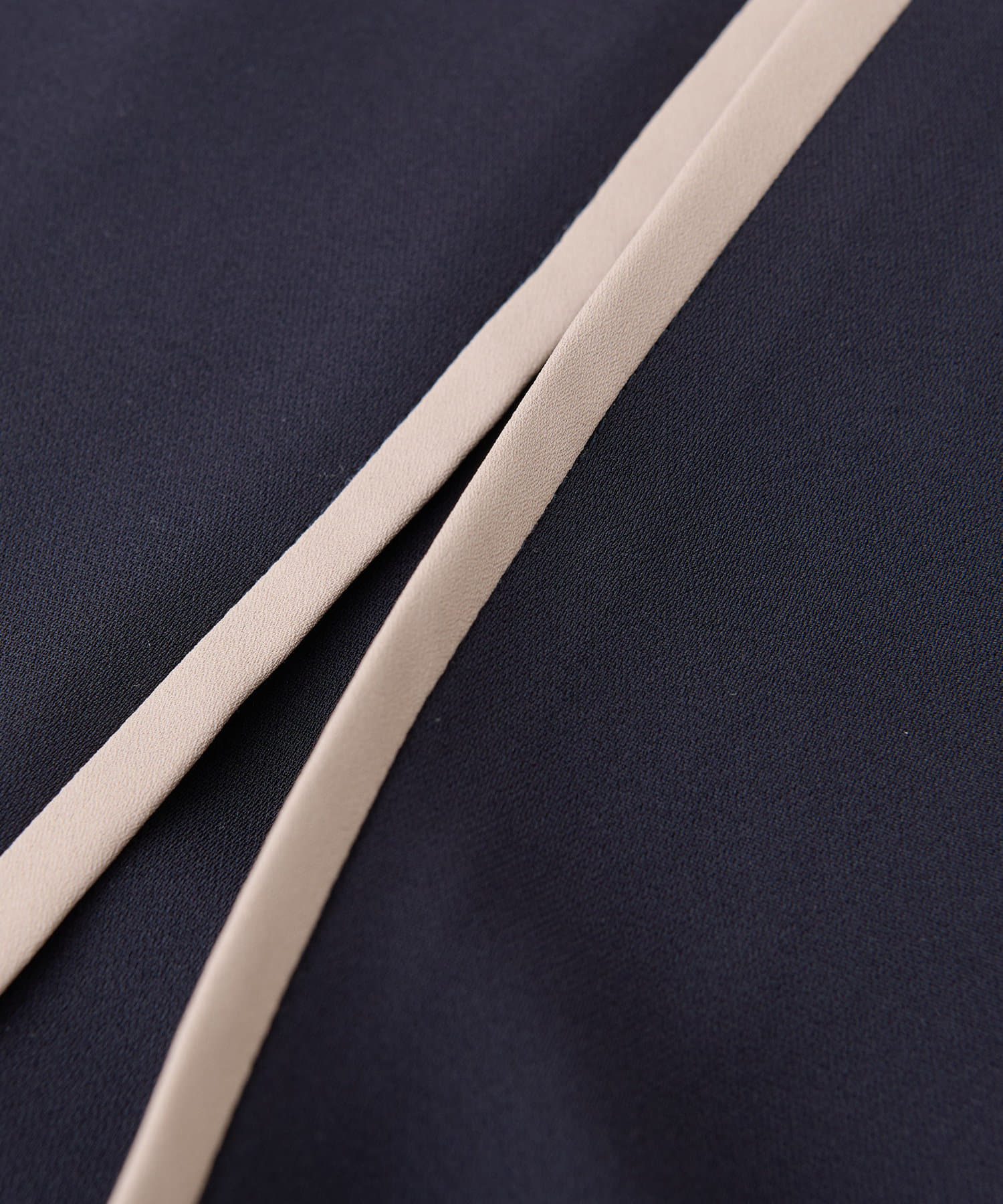 女性らしい深めのVネックとラッフル袖にバイカラーのパイピングをプラス。