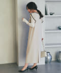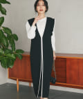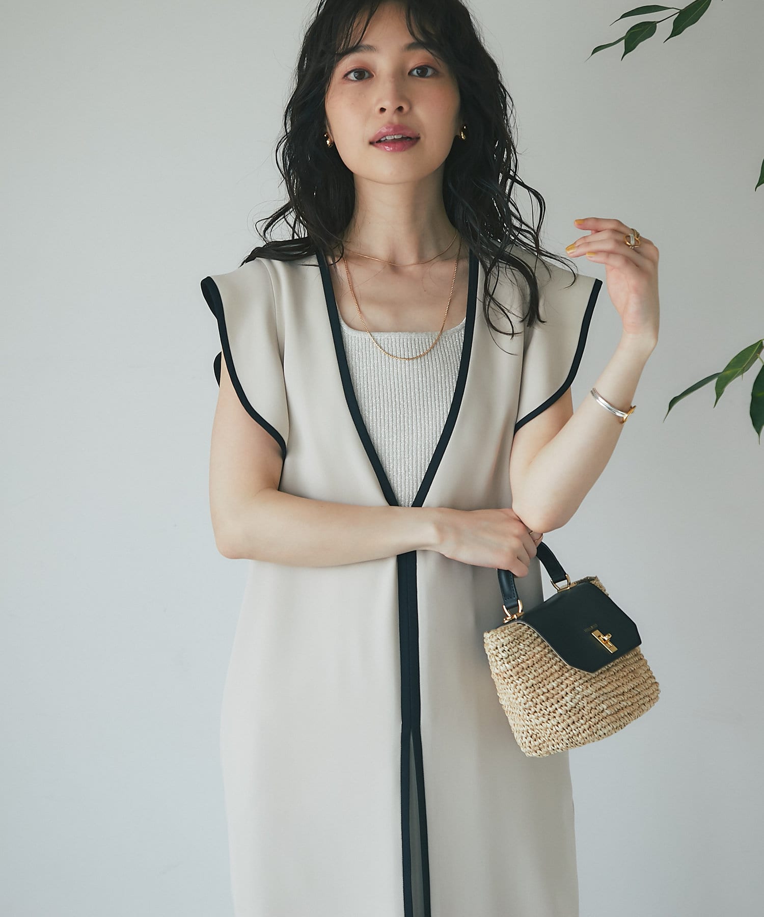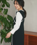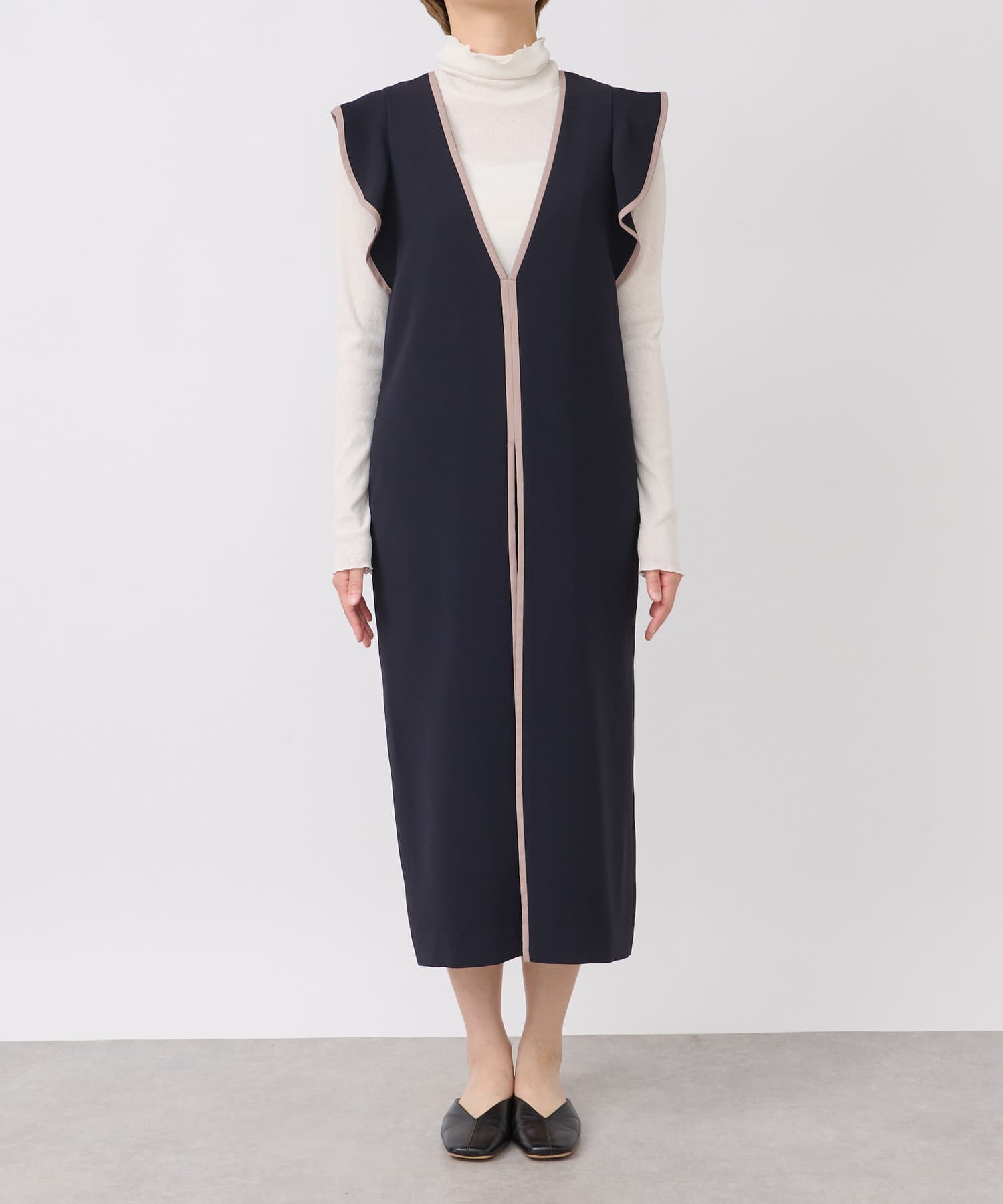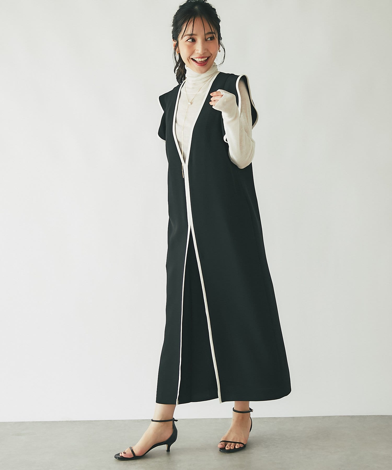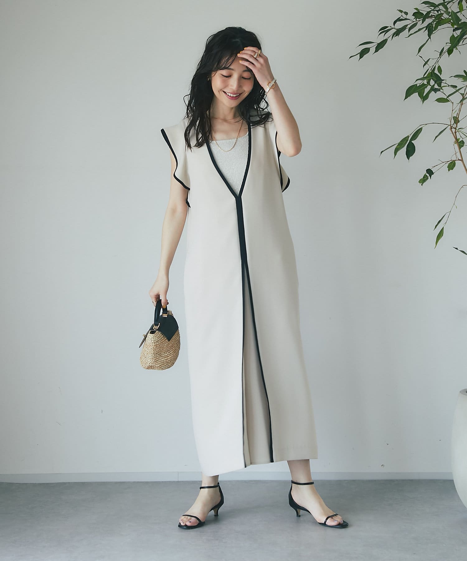 ☑深めのVネックとパイピングデザインですっきり見えが叶う。
