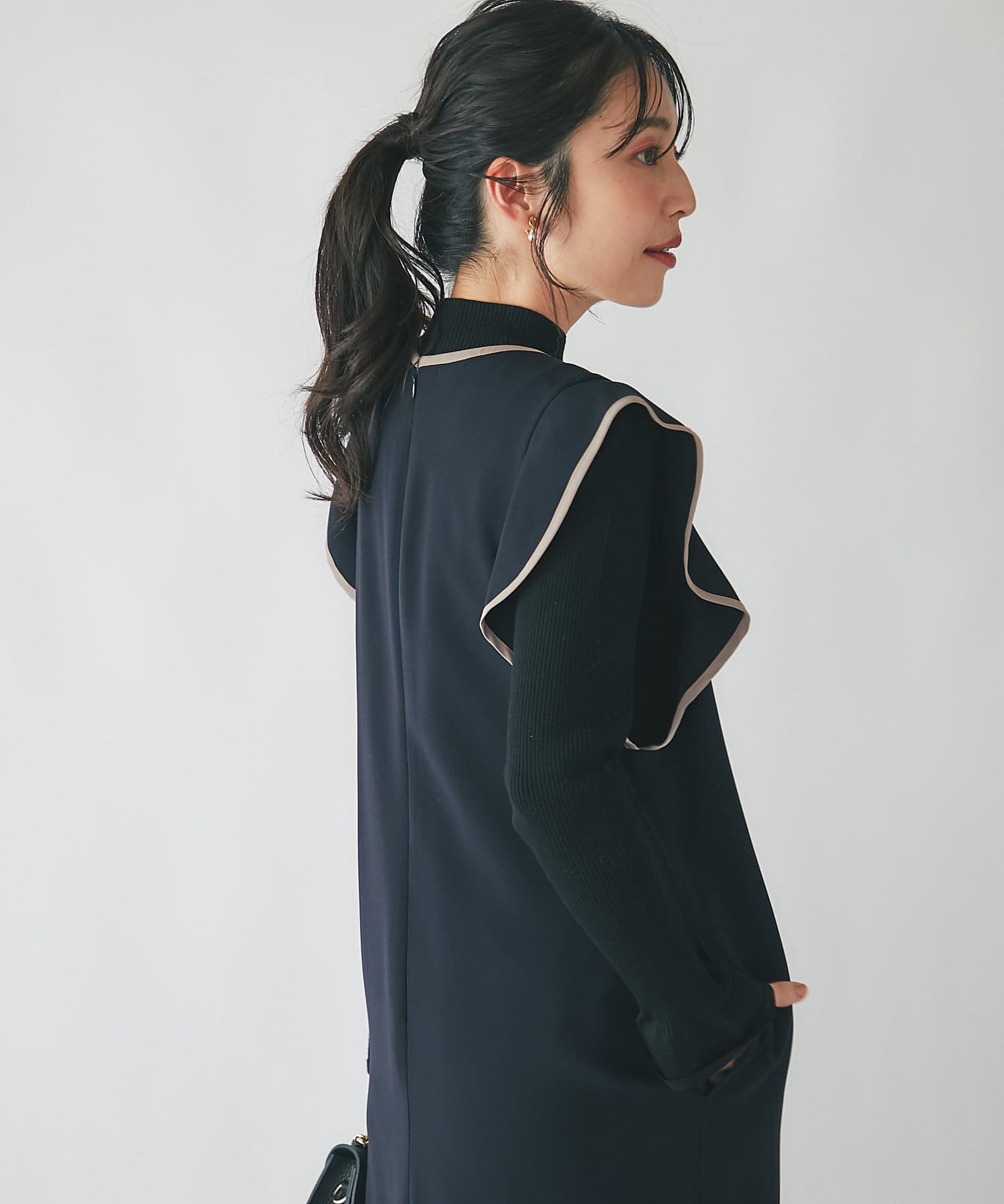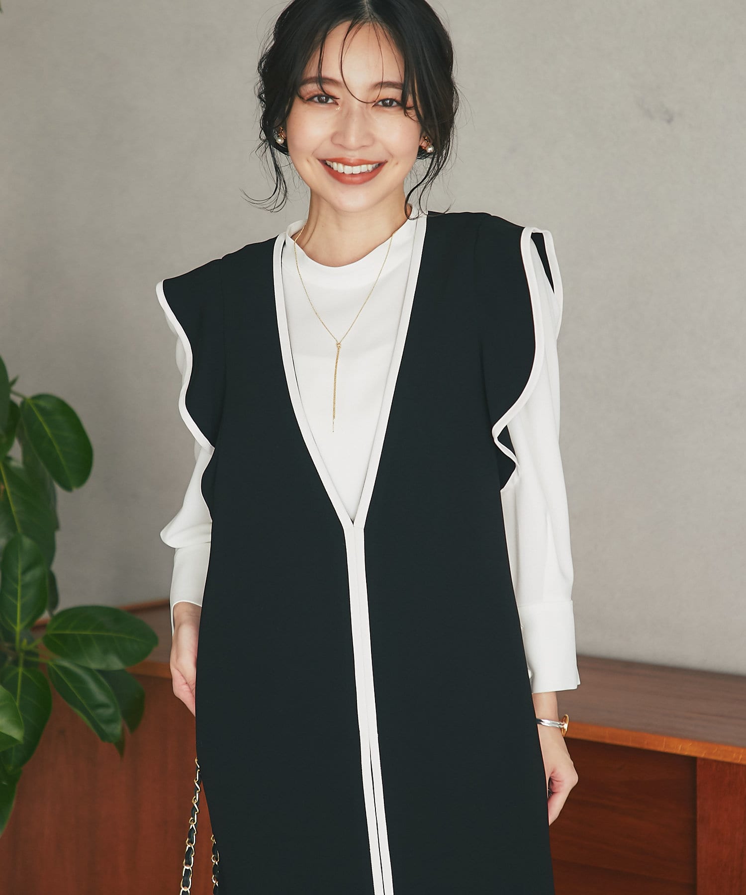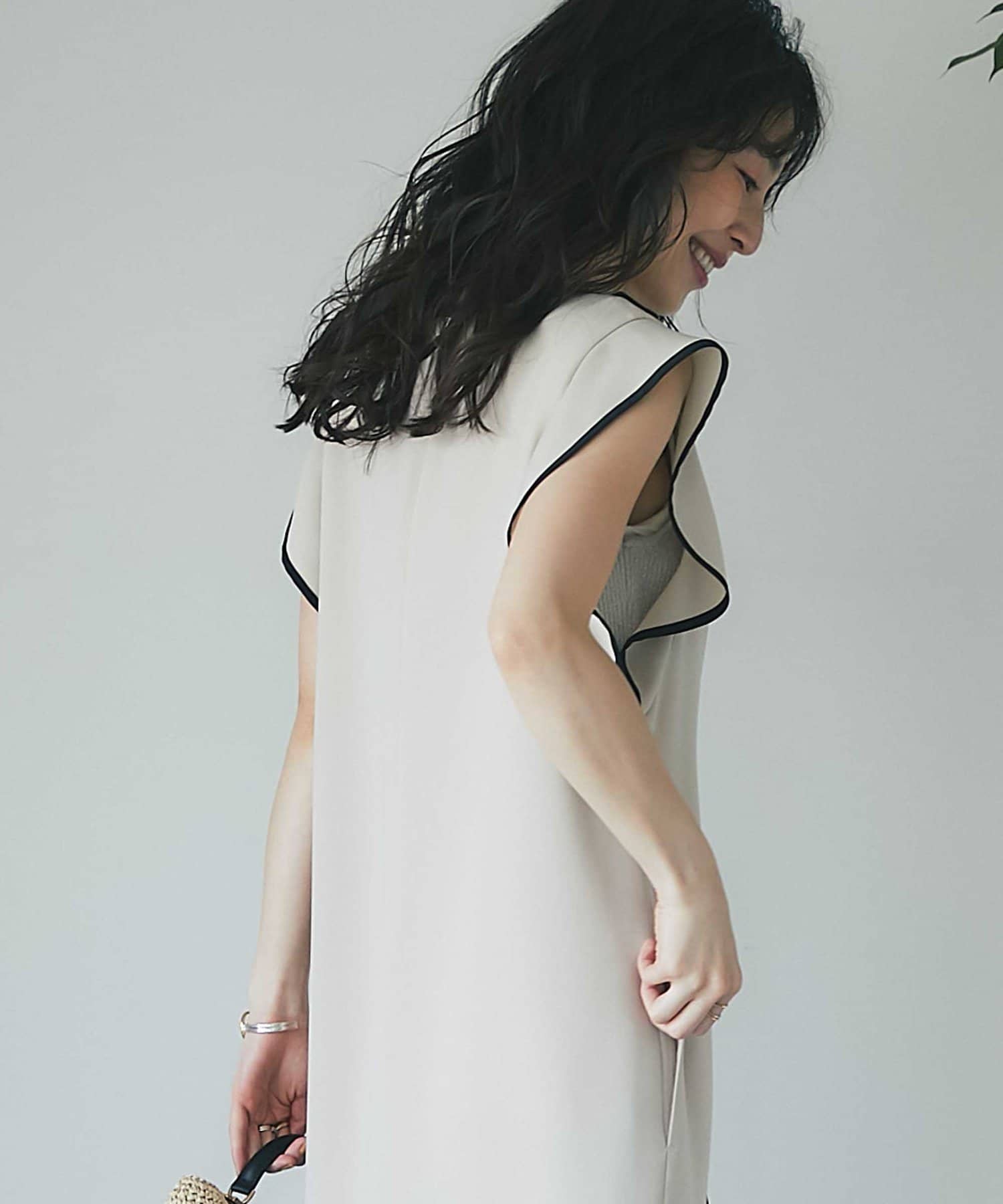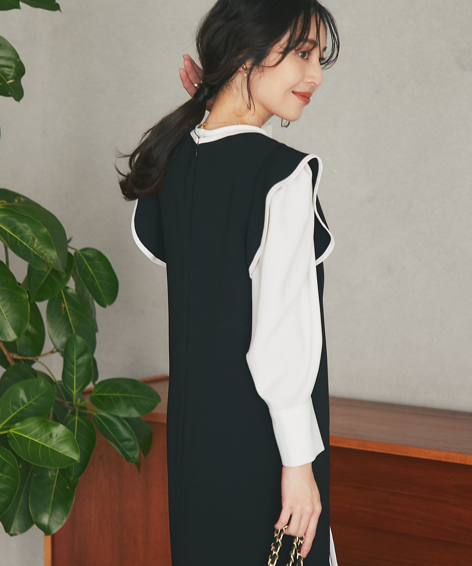着るだけでキレイ!トレンドのバイカラー×ラッフルスリーブワンピース