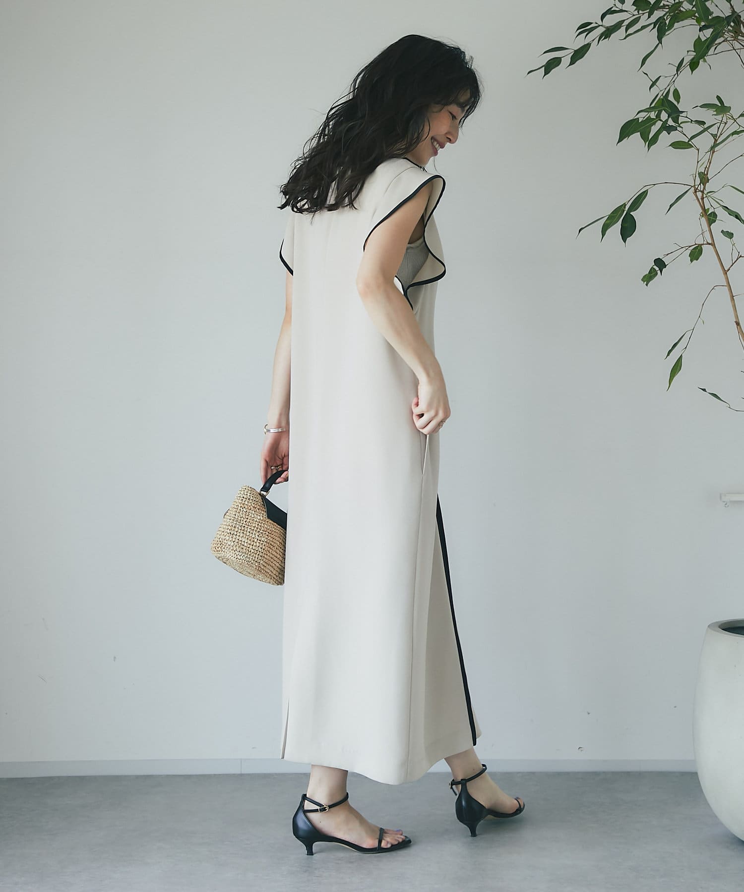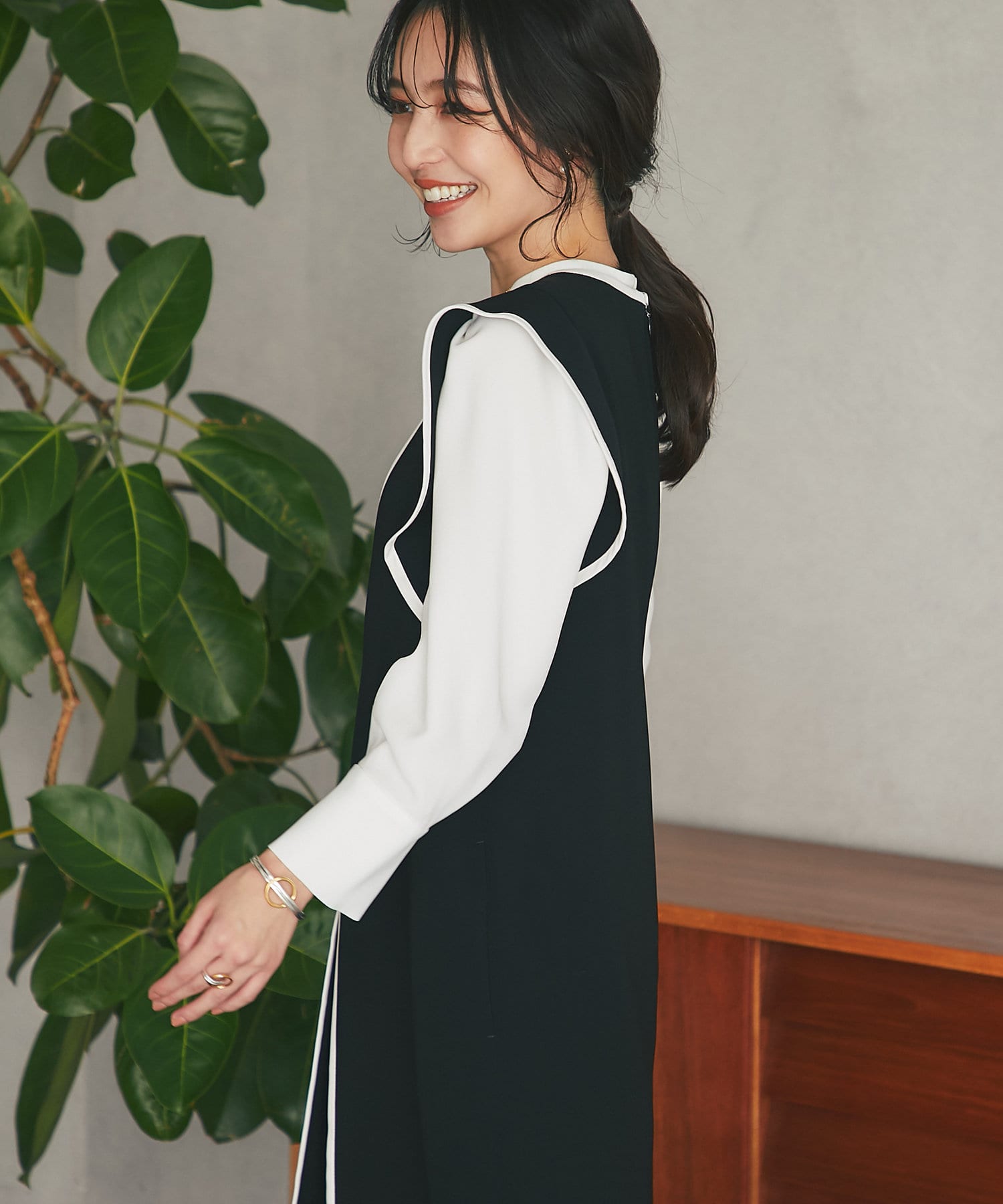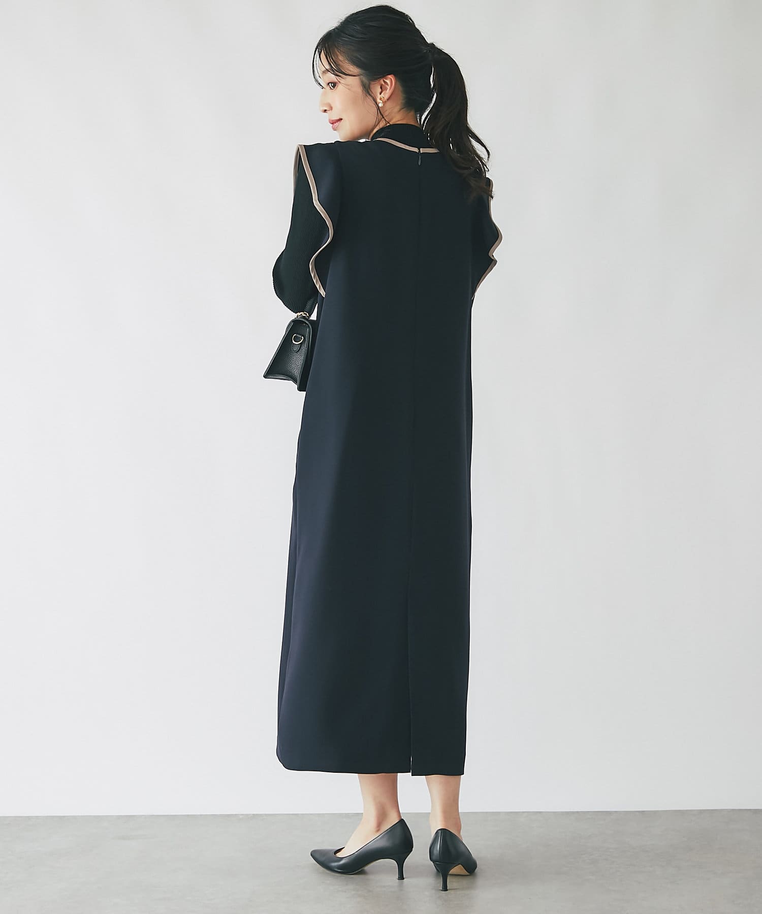 着るだけでキレイ!トレンドのバイカラー×ラッフルスリーブワンピース