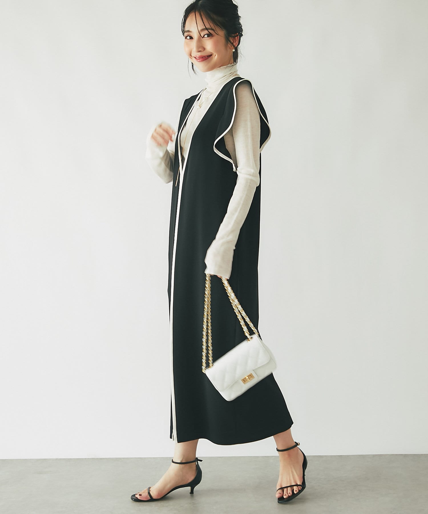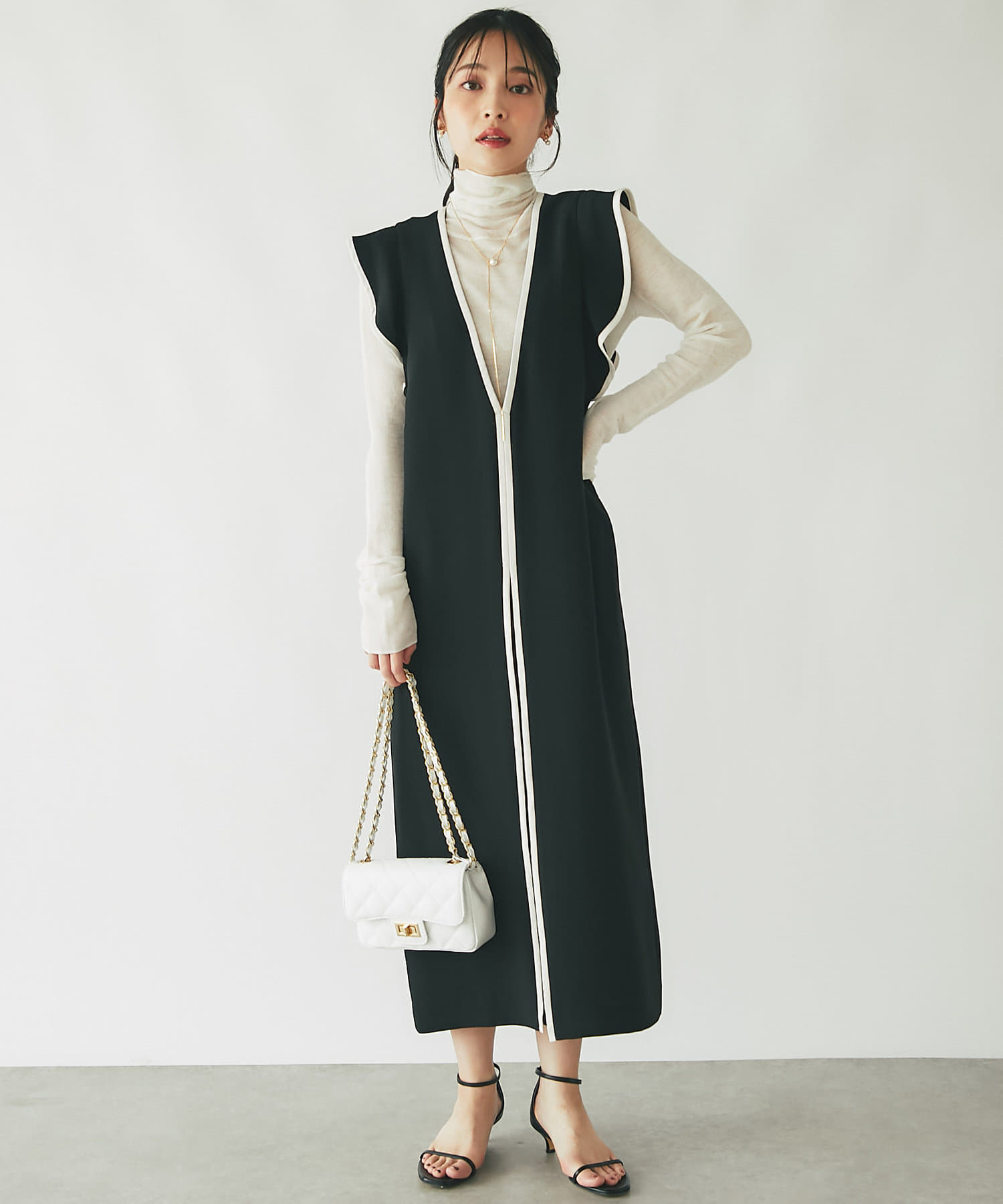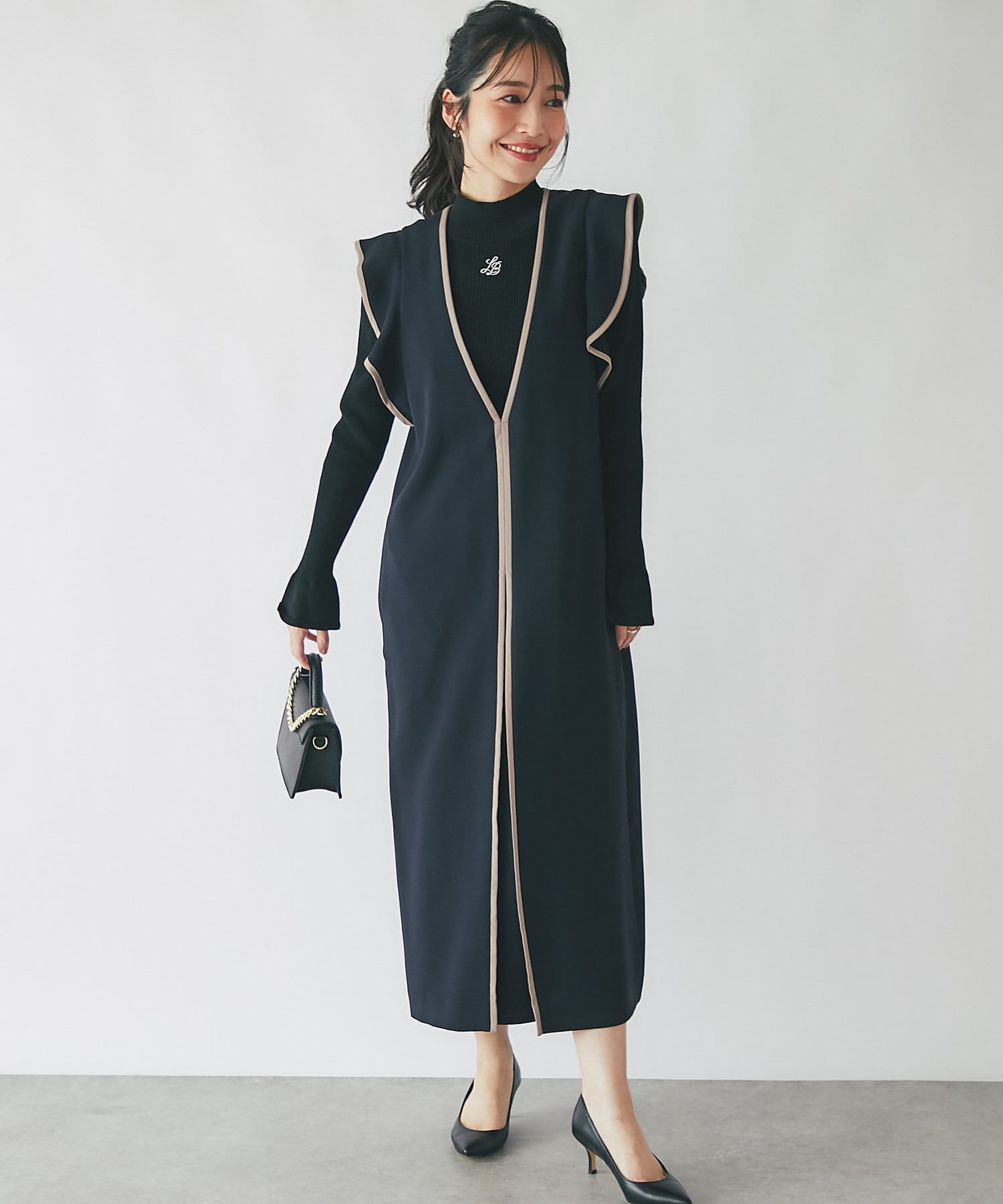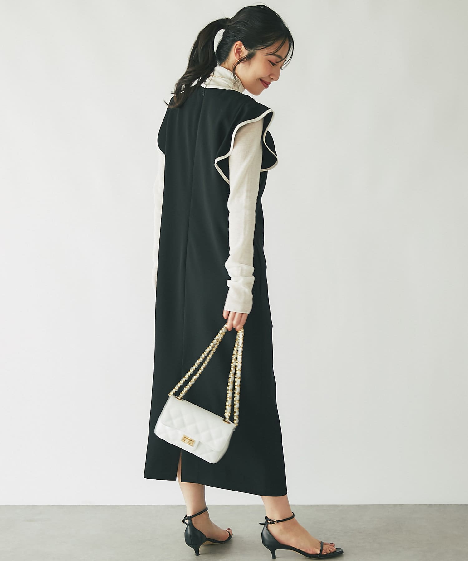 着るだけでキレイ!トレンドのバイカラー×ラッフルスリーブワンピース