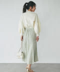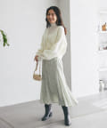 シンプルなトップスを合わせるだけでフェミニンスタイルが完成します。