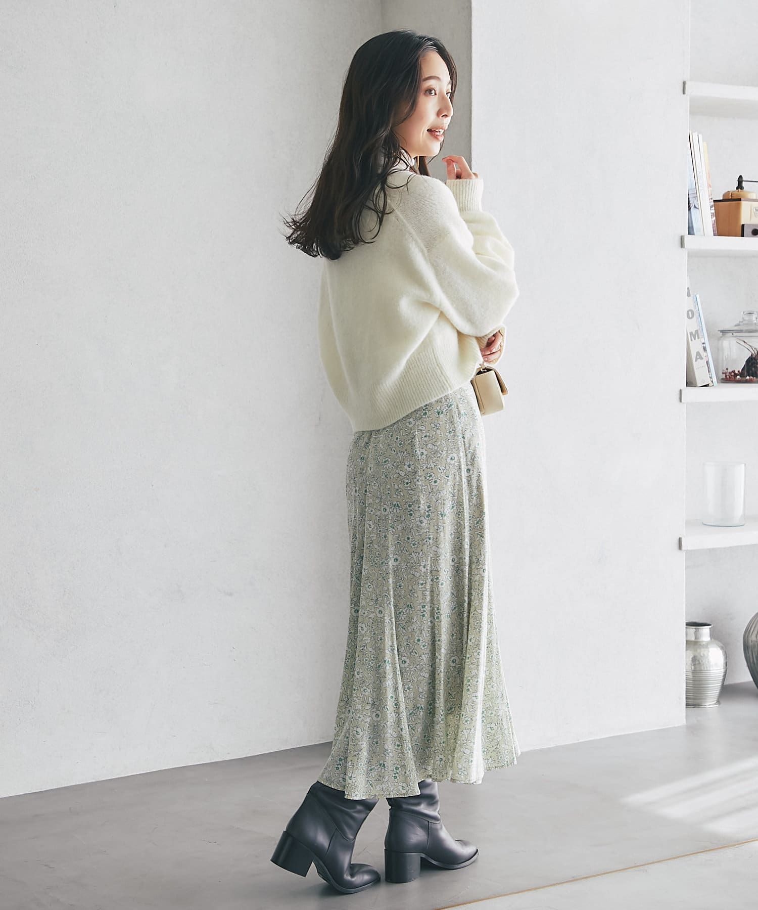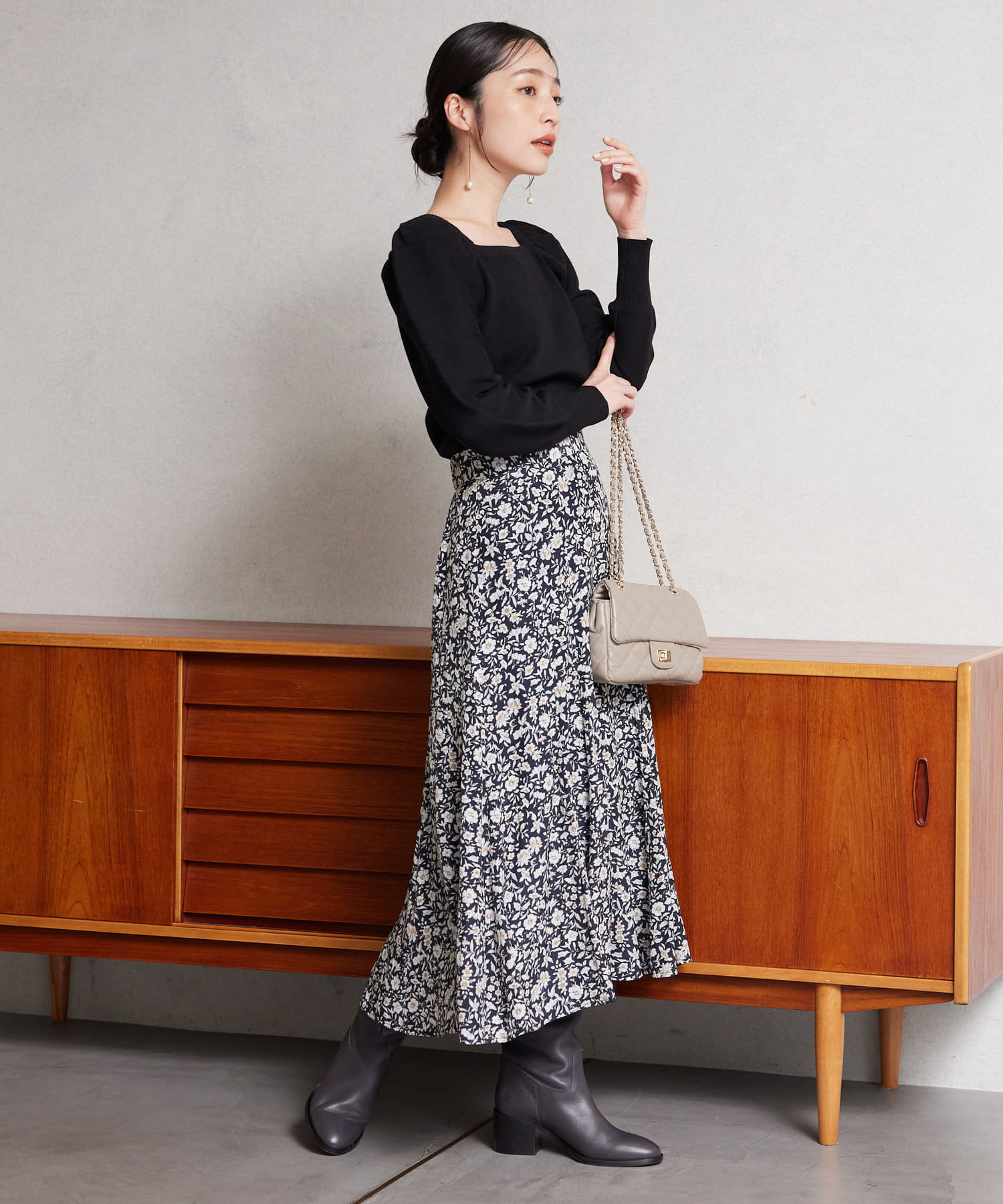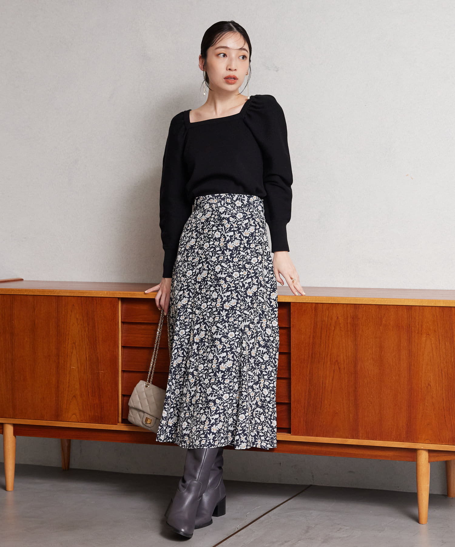 【セットアップ着用可能】小花プリントマーメイドスカート