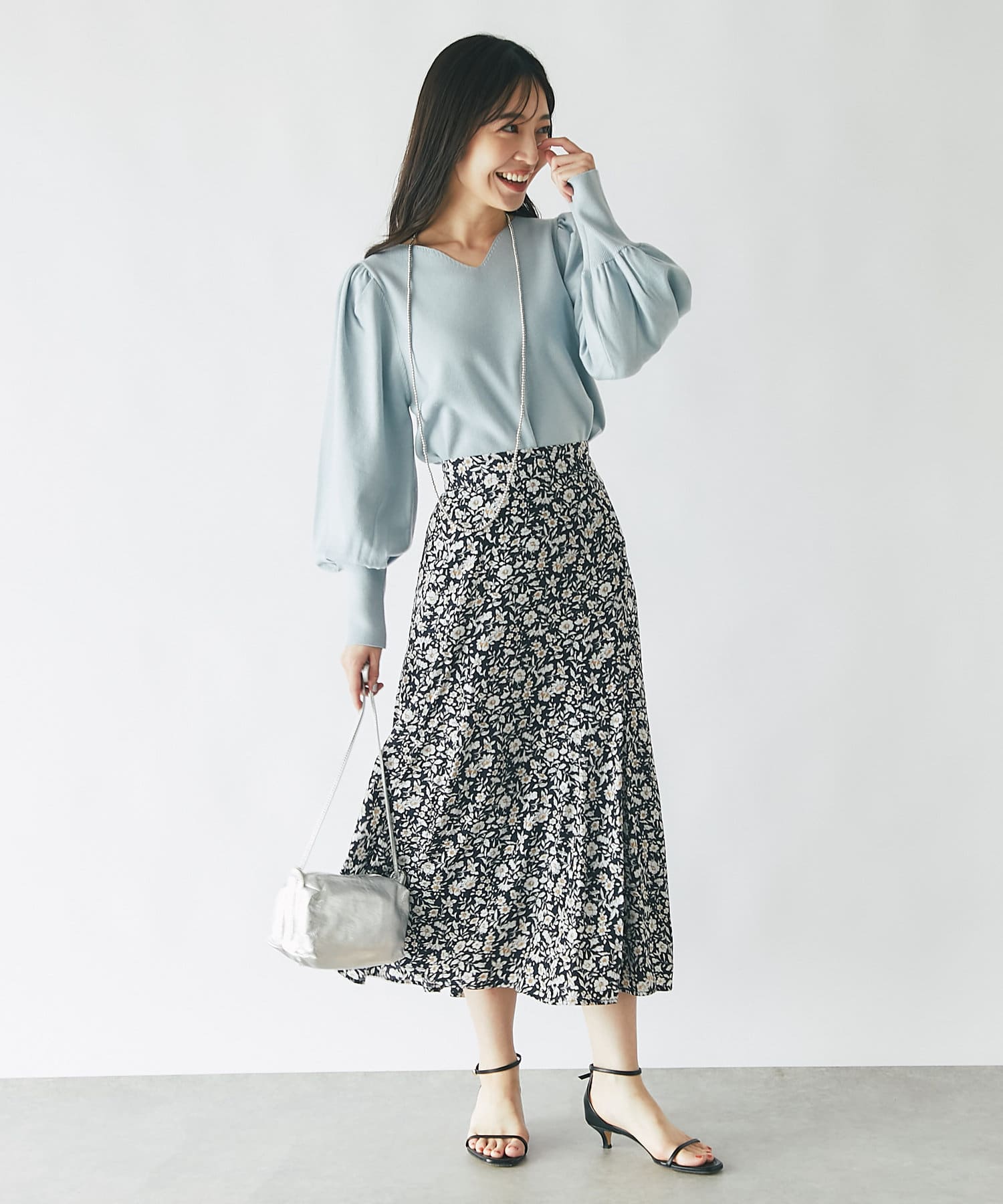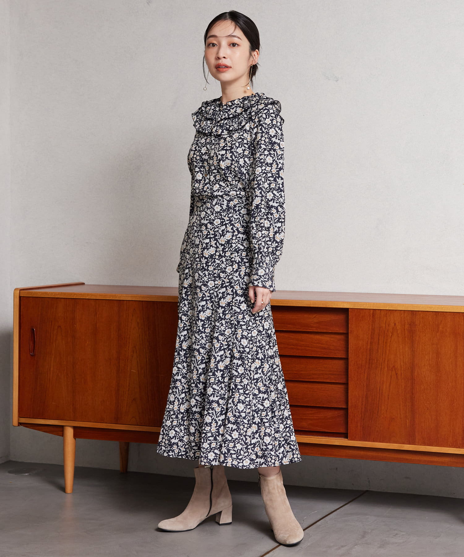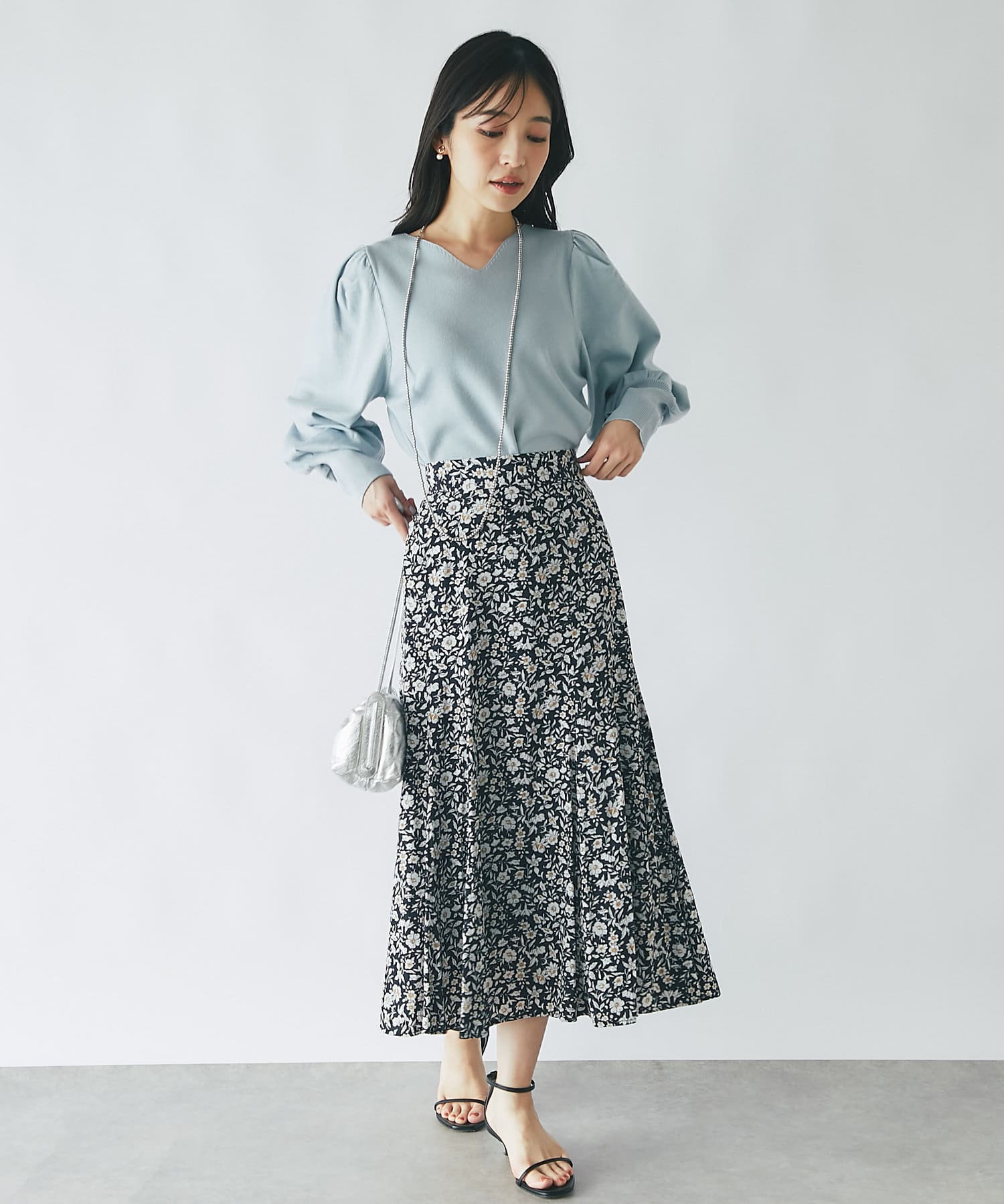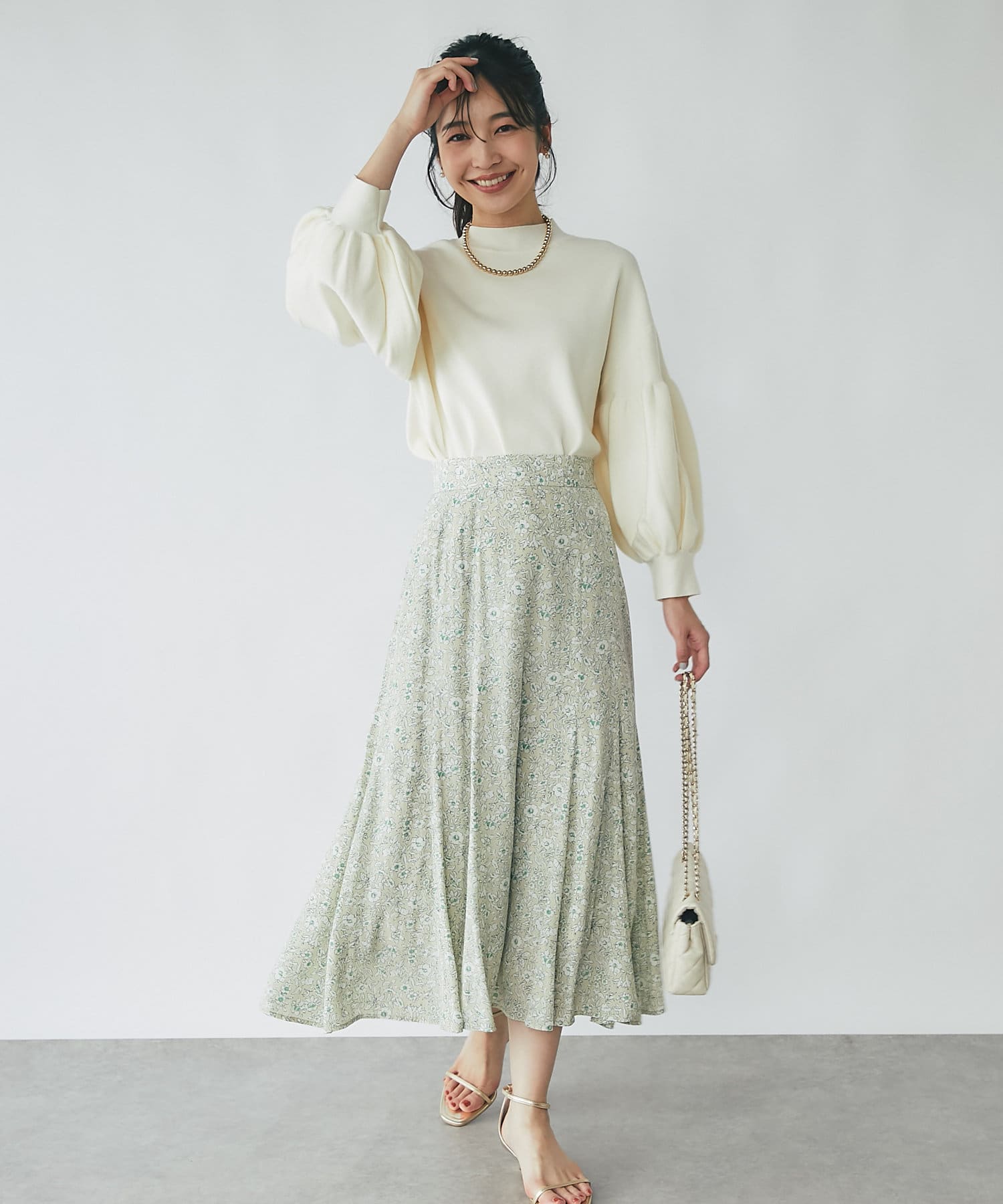 【セットアップ着用可能】小花プリントマーメイドスカート