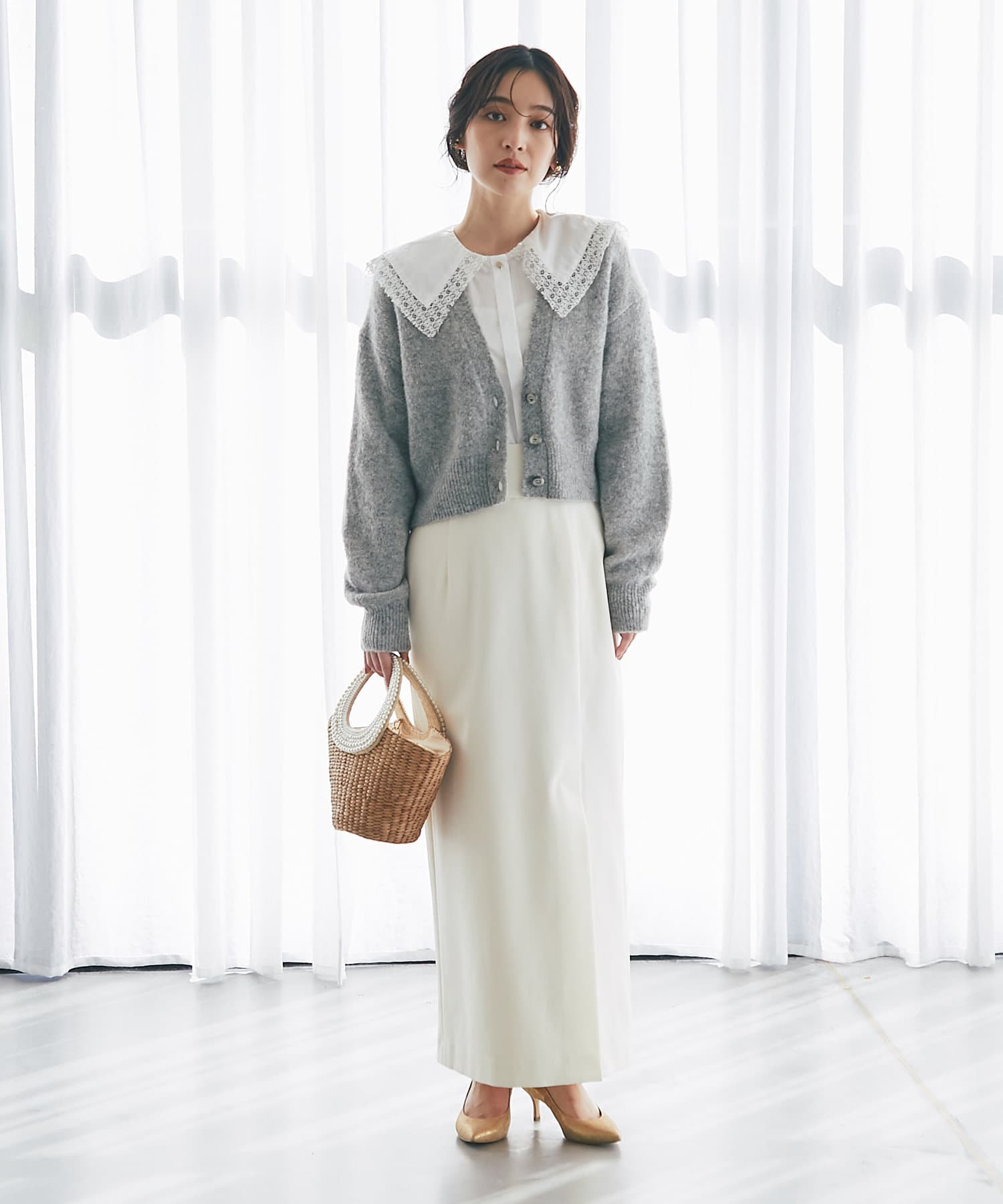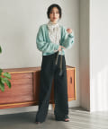 着丈が短めなのでワンピースやハイウエストのボトムと好相性。