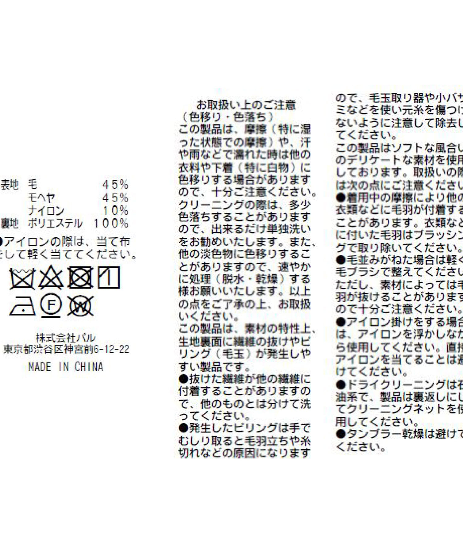 品番 LBZ1032407A0002 素材 表地:毛45% モヘヤ45% ナイロン10%