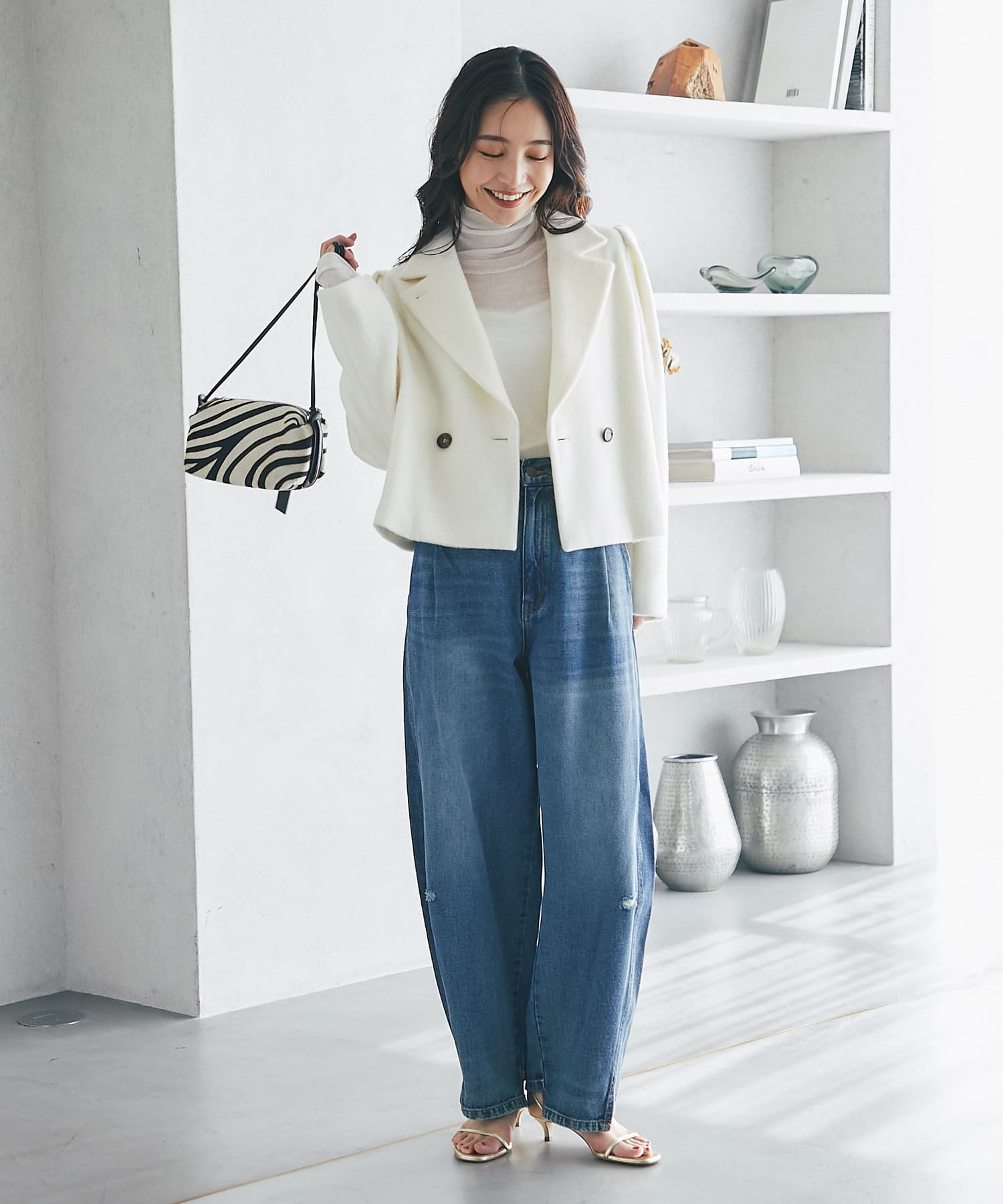 ワイドパンツとの相性も良くモードな雰囲気で着られます。