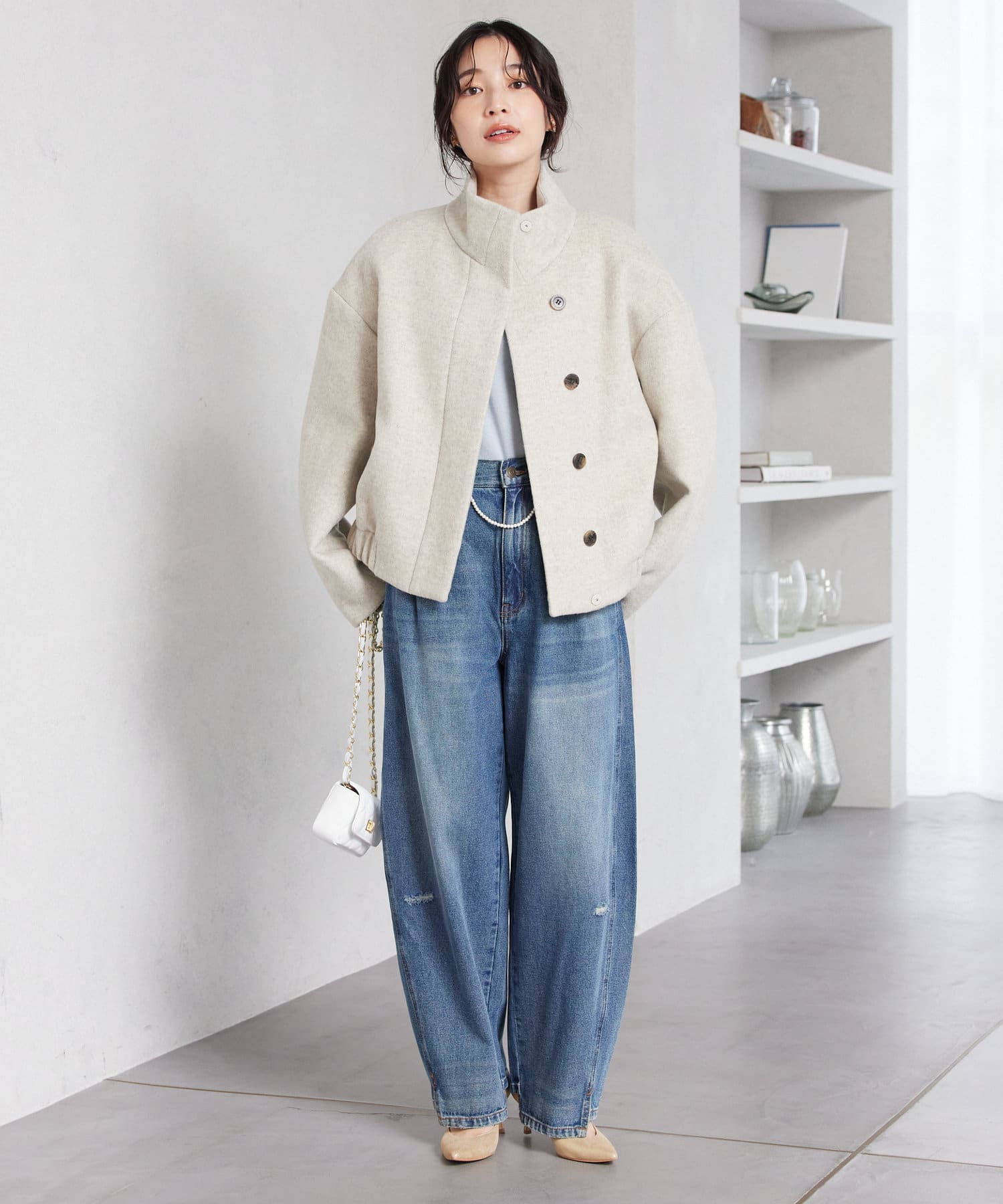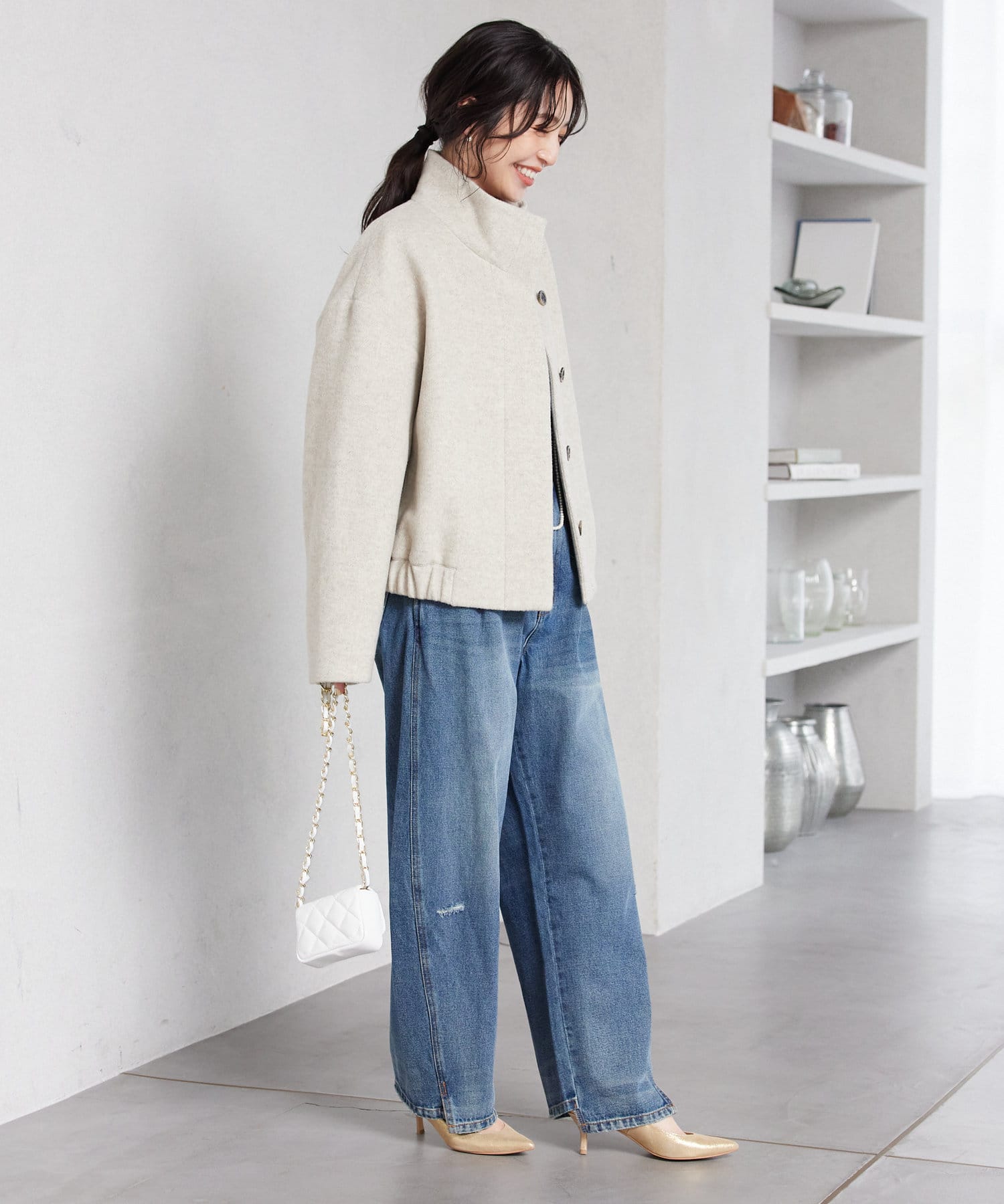 きれいめにもカジュアルにも着回せるシンプルなデザイン。