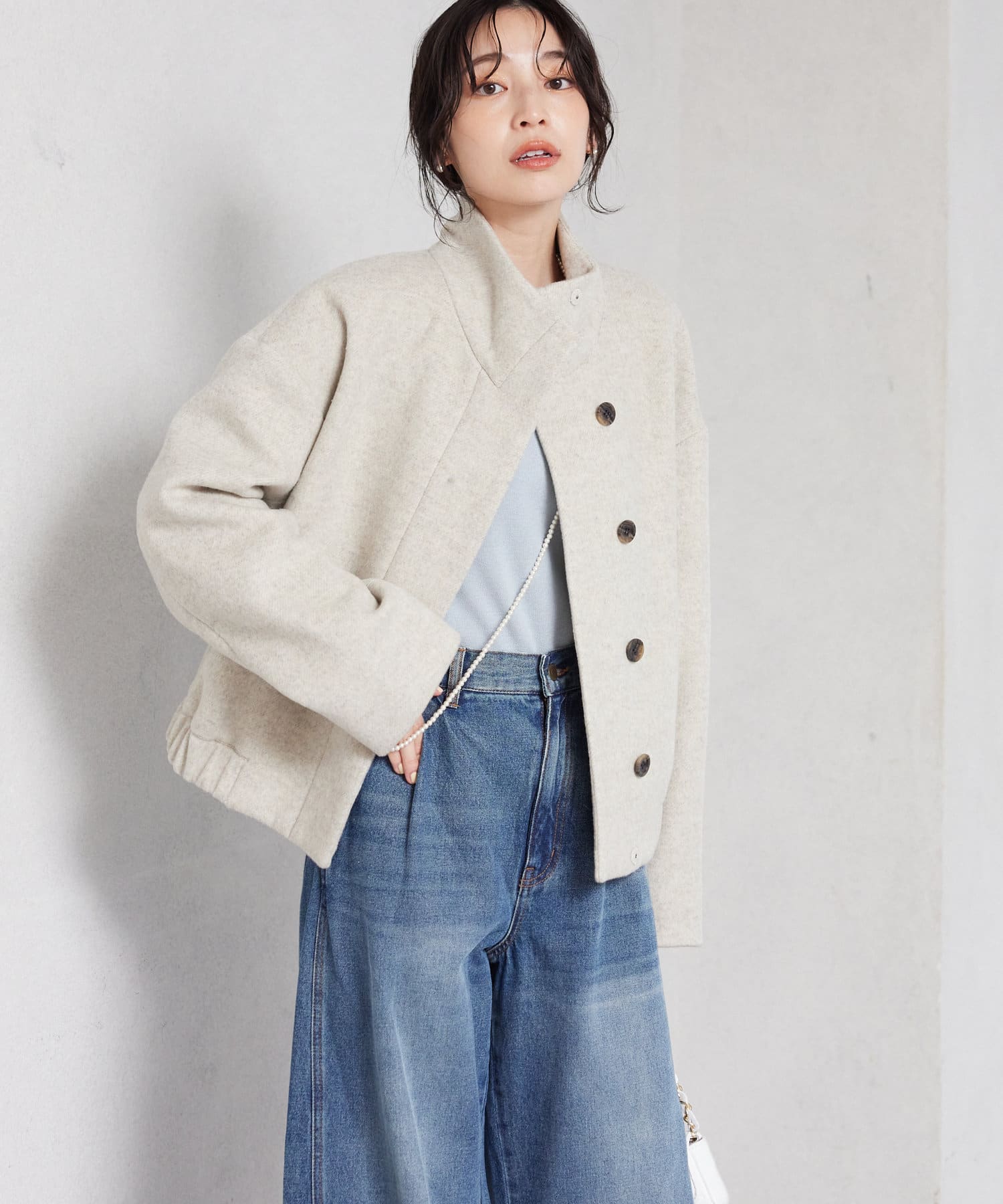 フライフロント仕立てで、ボタンを閉じるとすっきりと着用できます。