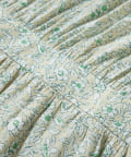 グリーンの小花柄で可愛いです。腰回りにゴムが入ってるので、少し伸縮性があります。首周りがややタイトになっています。