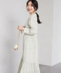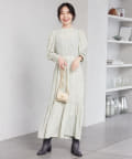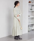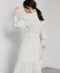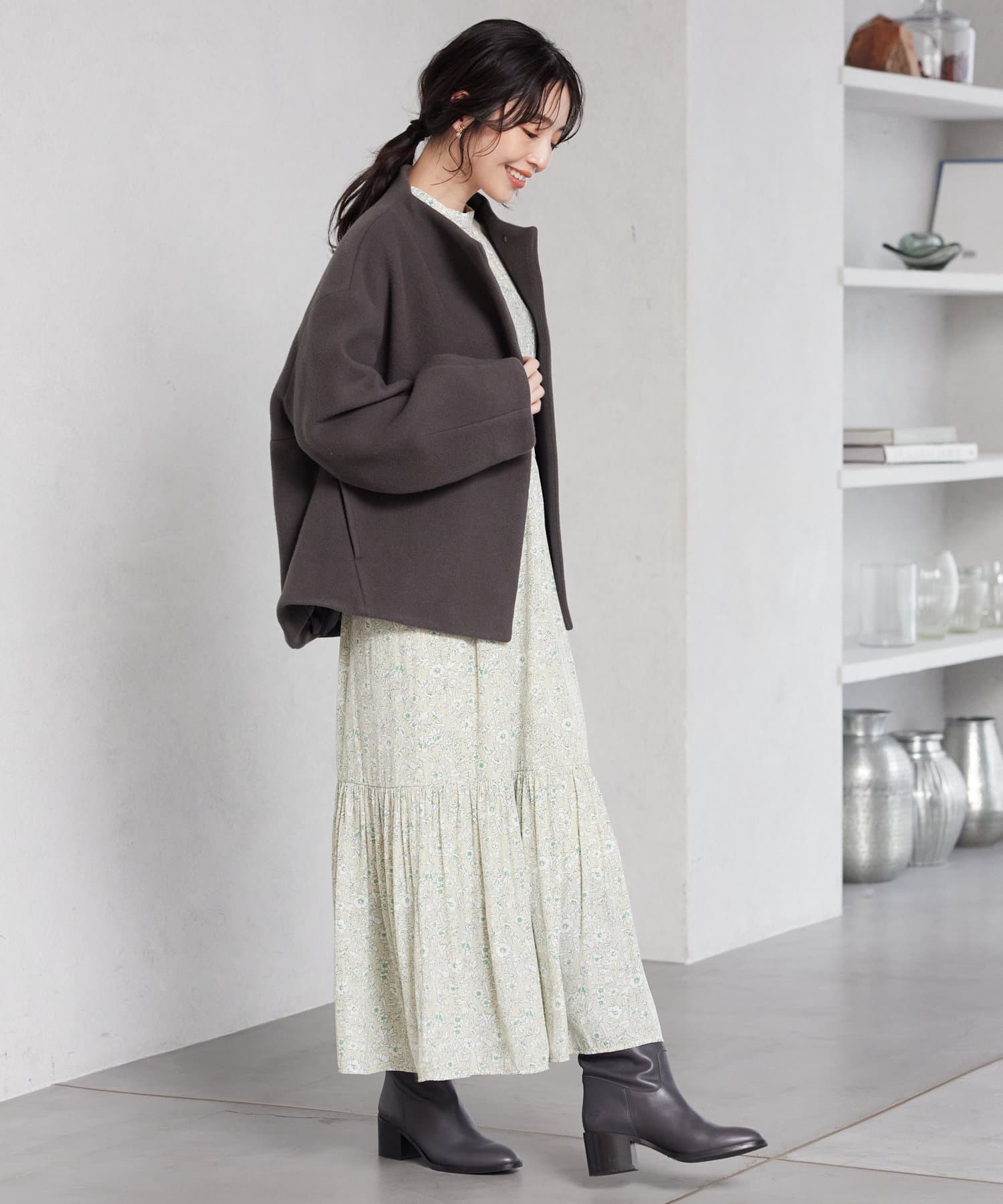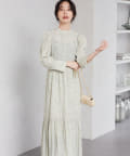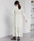 程よいスタンドネックデザインにウエストがシェイプされた上品見えティアードワンピース。