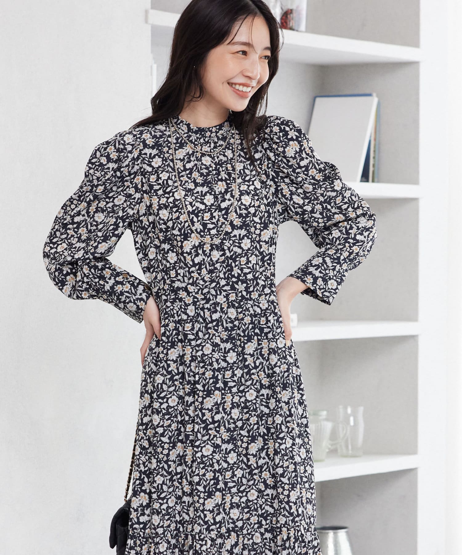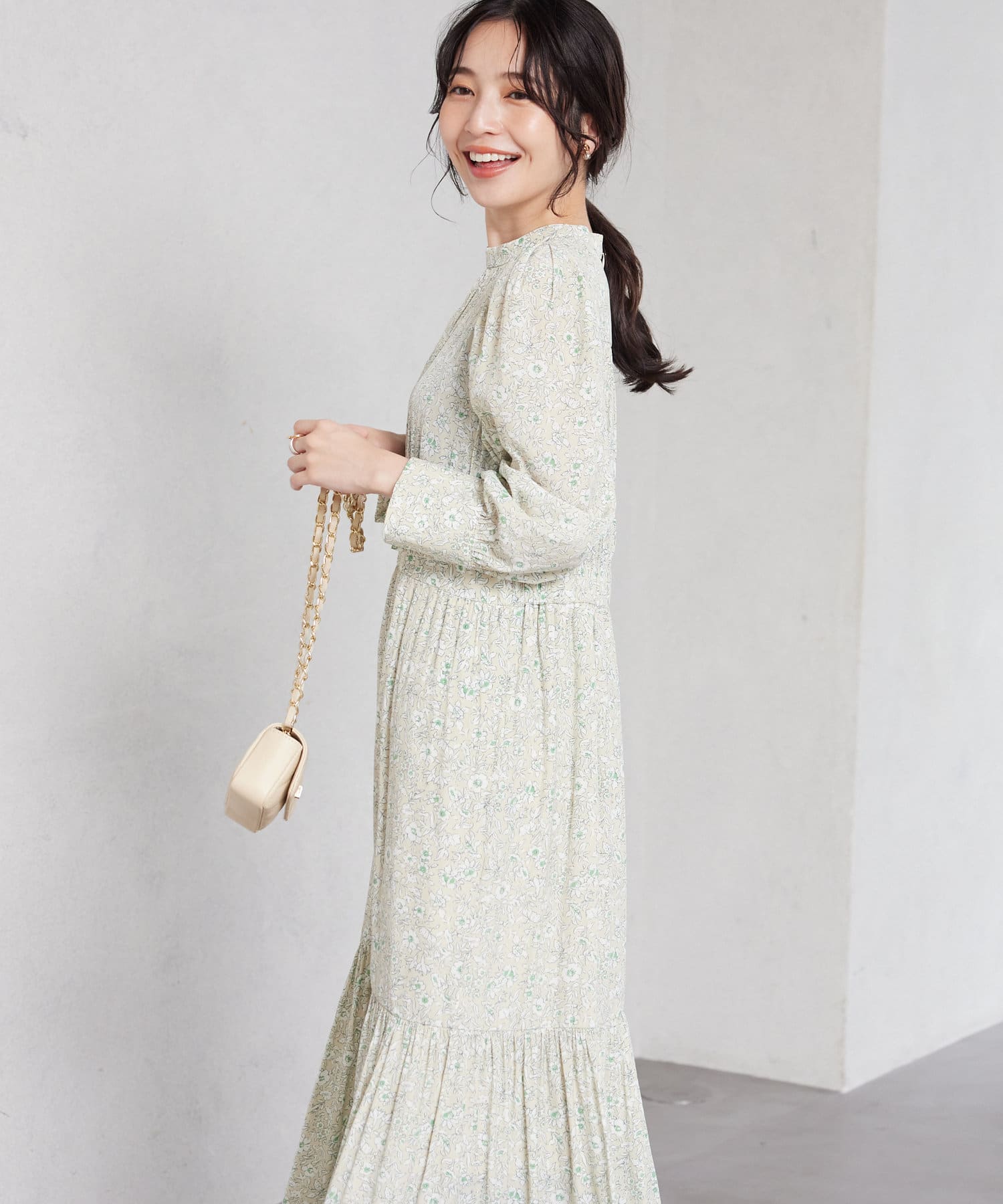 TOP > La boutique BonBon > レディース > ワンピース > ワンピース > 【シルエットが美しい】小花プリントティアードワンピース
