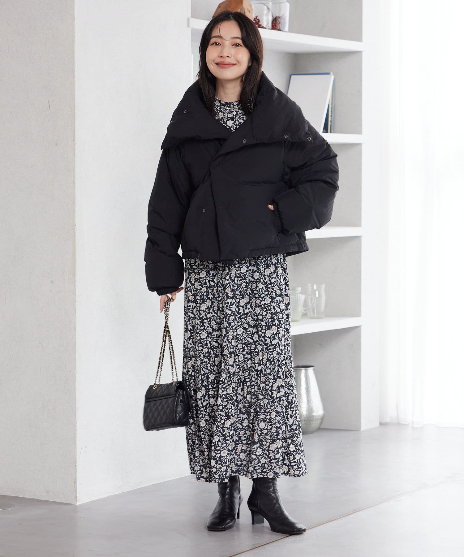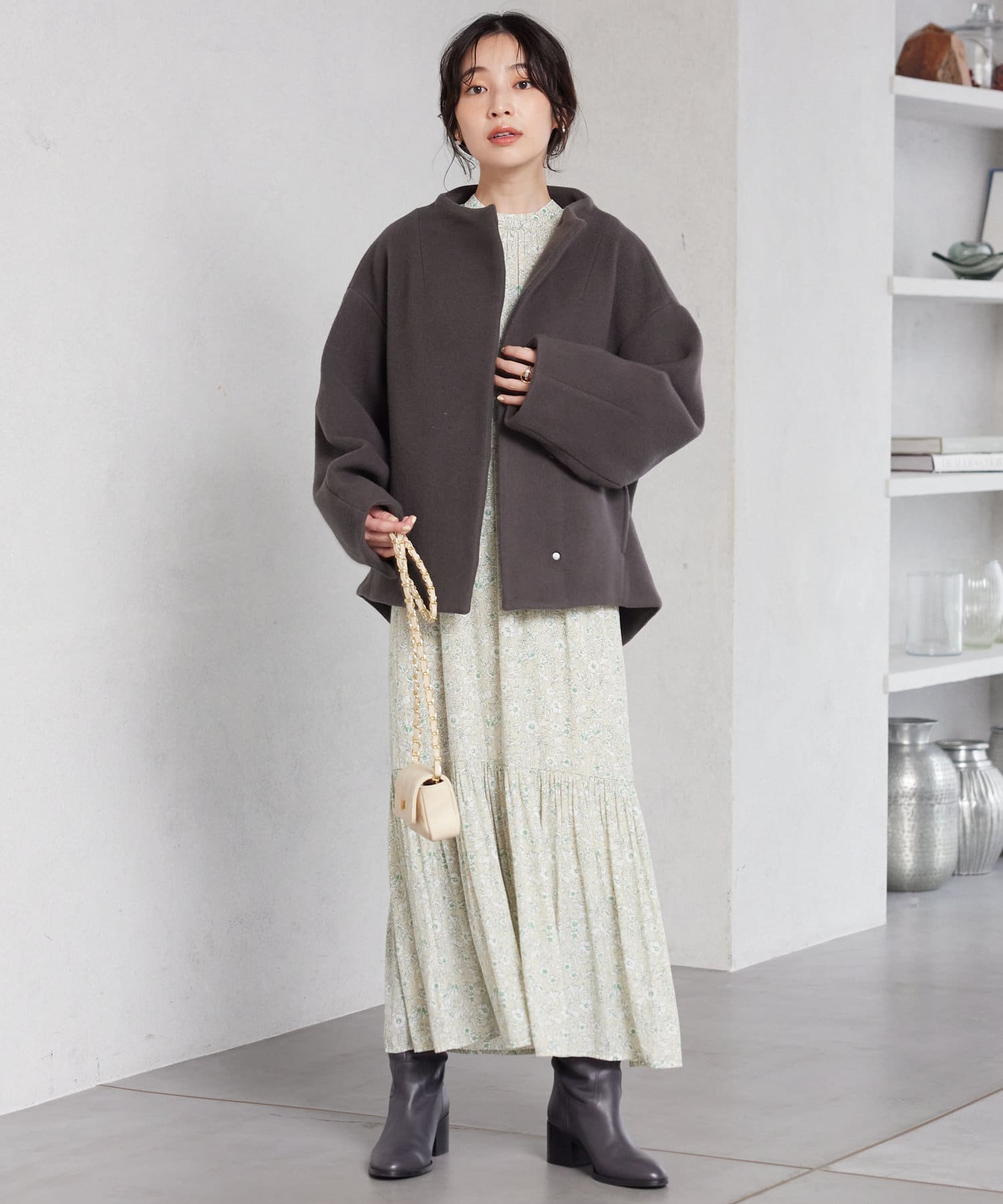 冬はふわふわのニットカーディガン合わせなど、レイヤードスタイルがおすすめです。