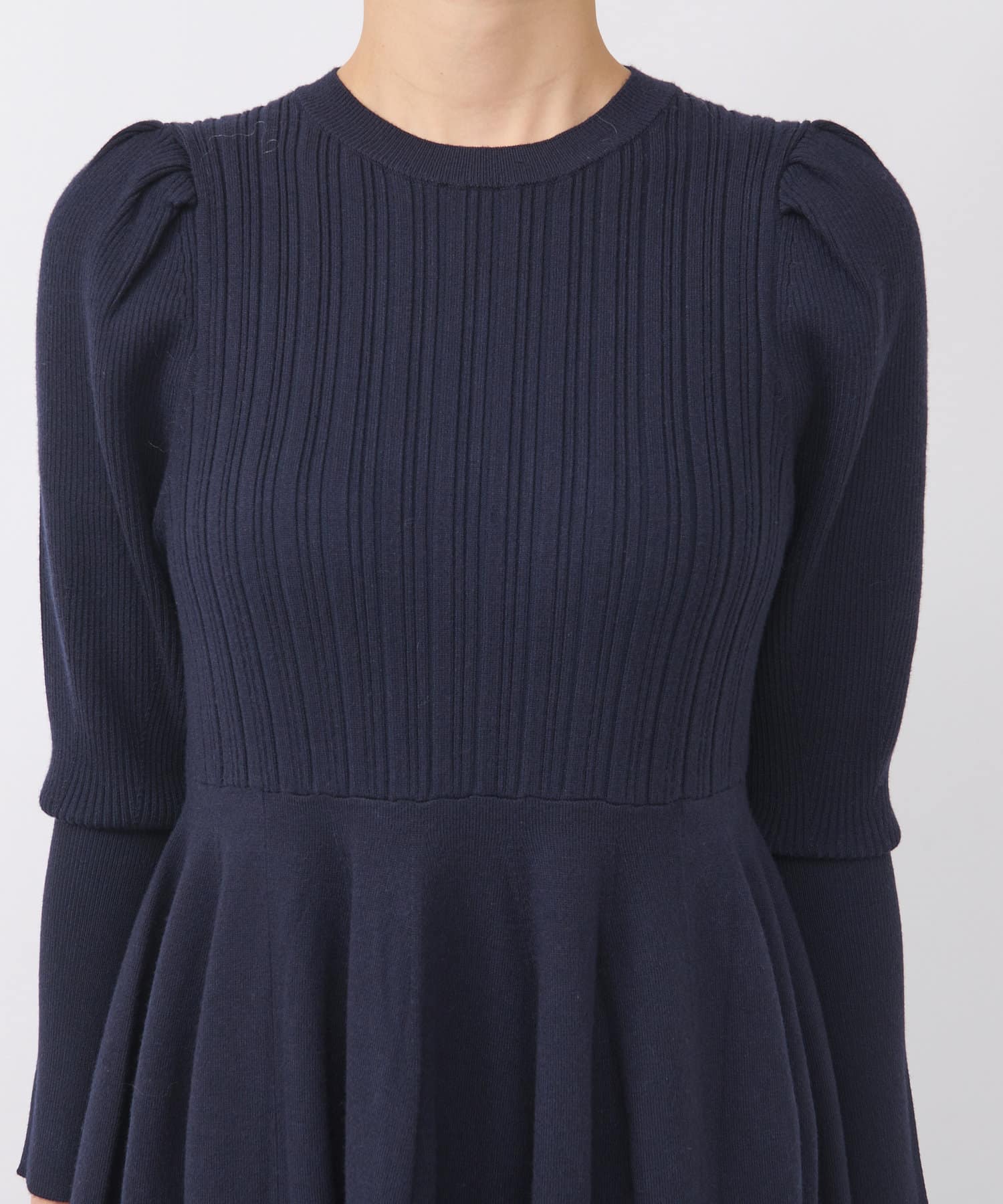 上身頃とスカート部分で編地を変えることで、表情のある一枚に仕上げました。