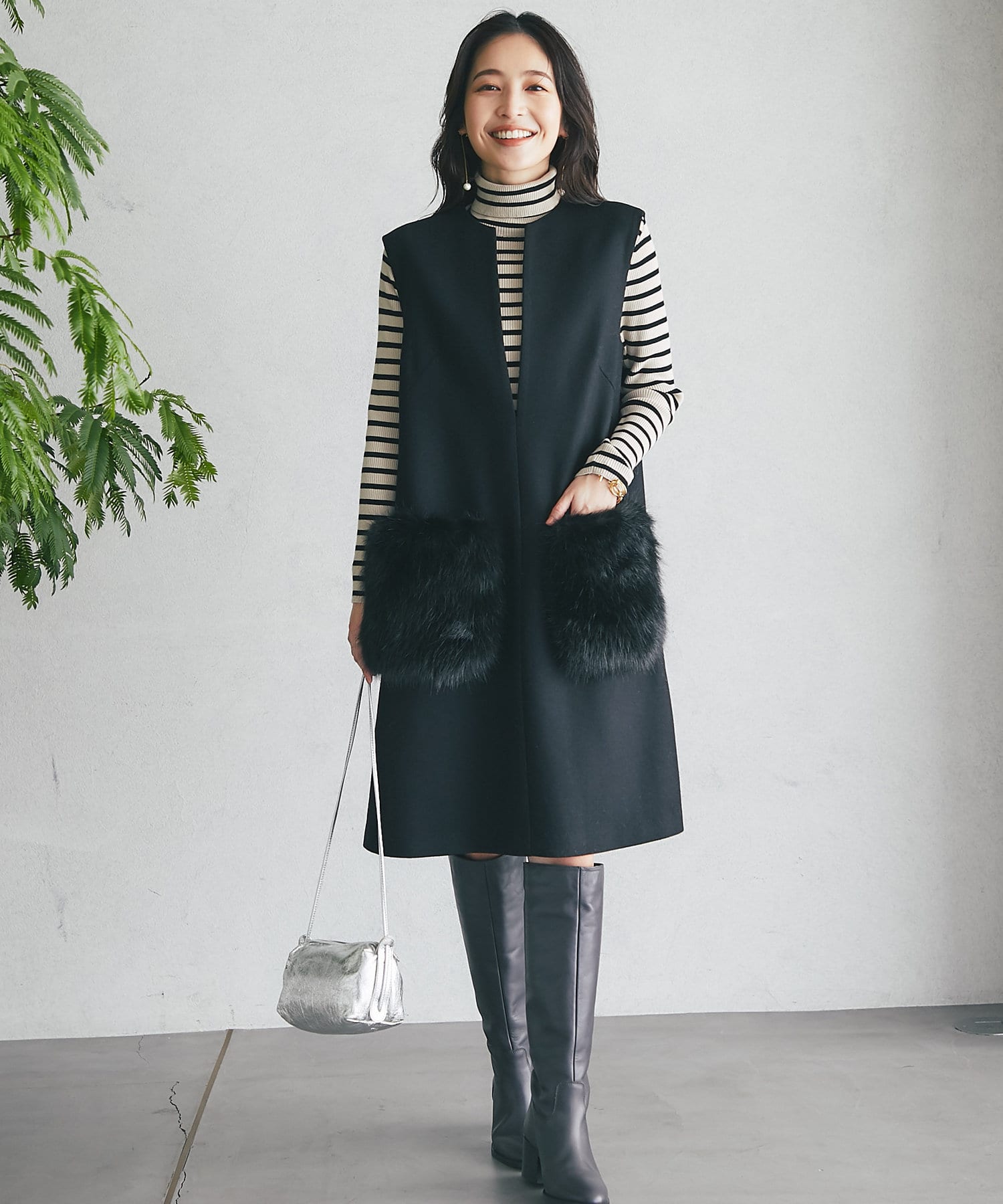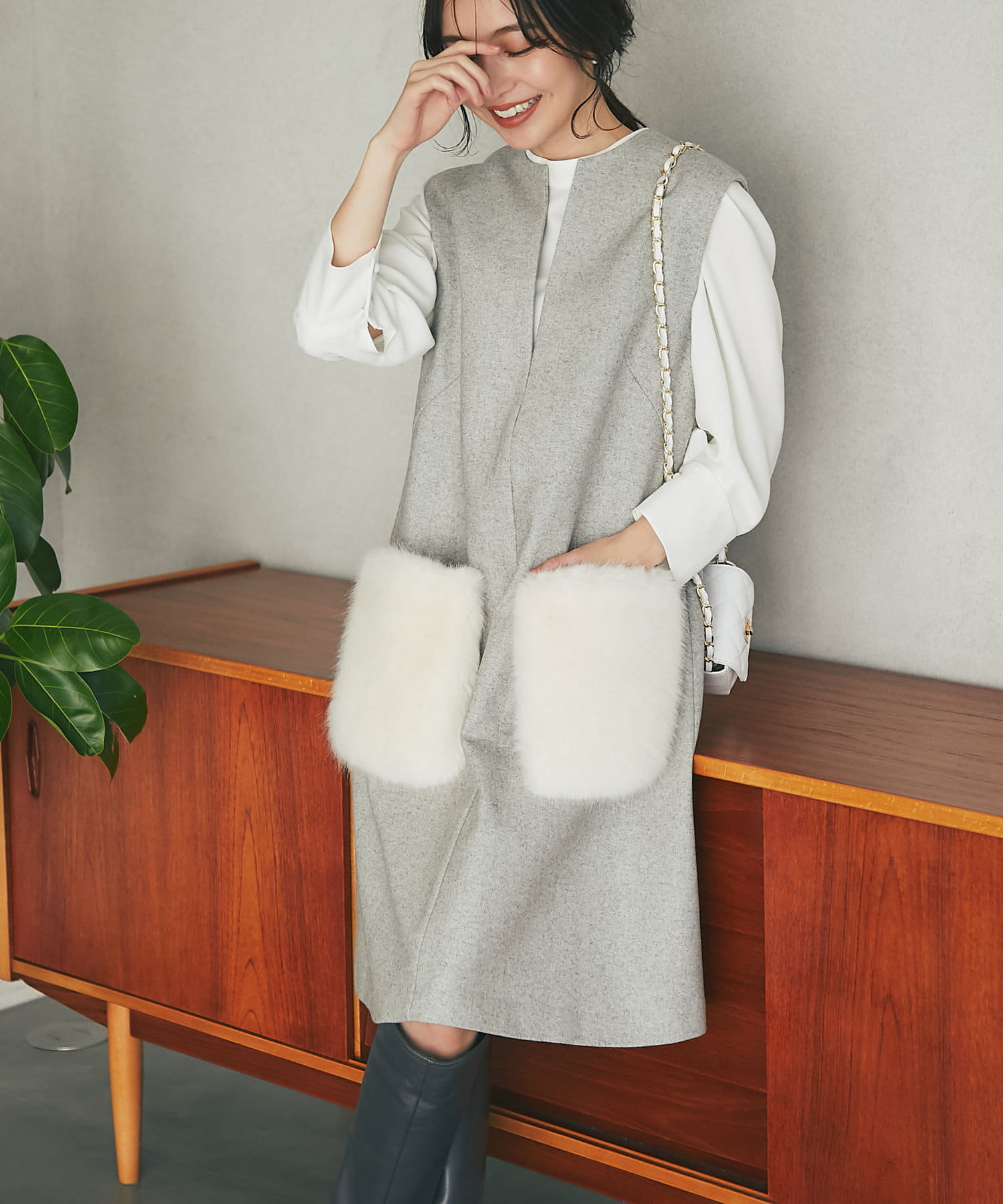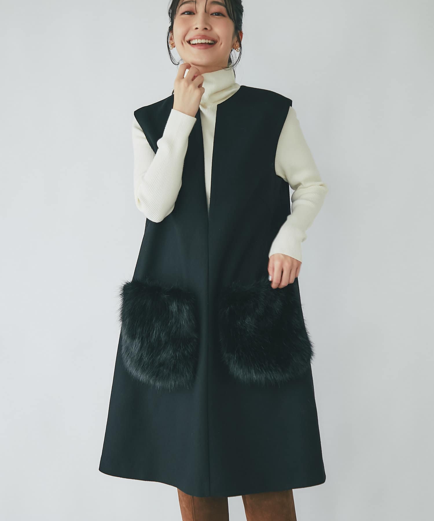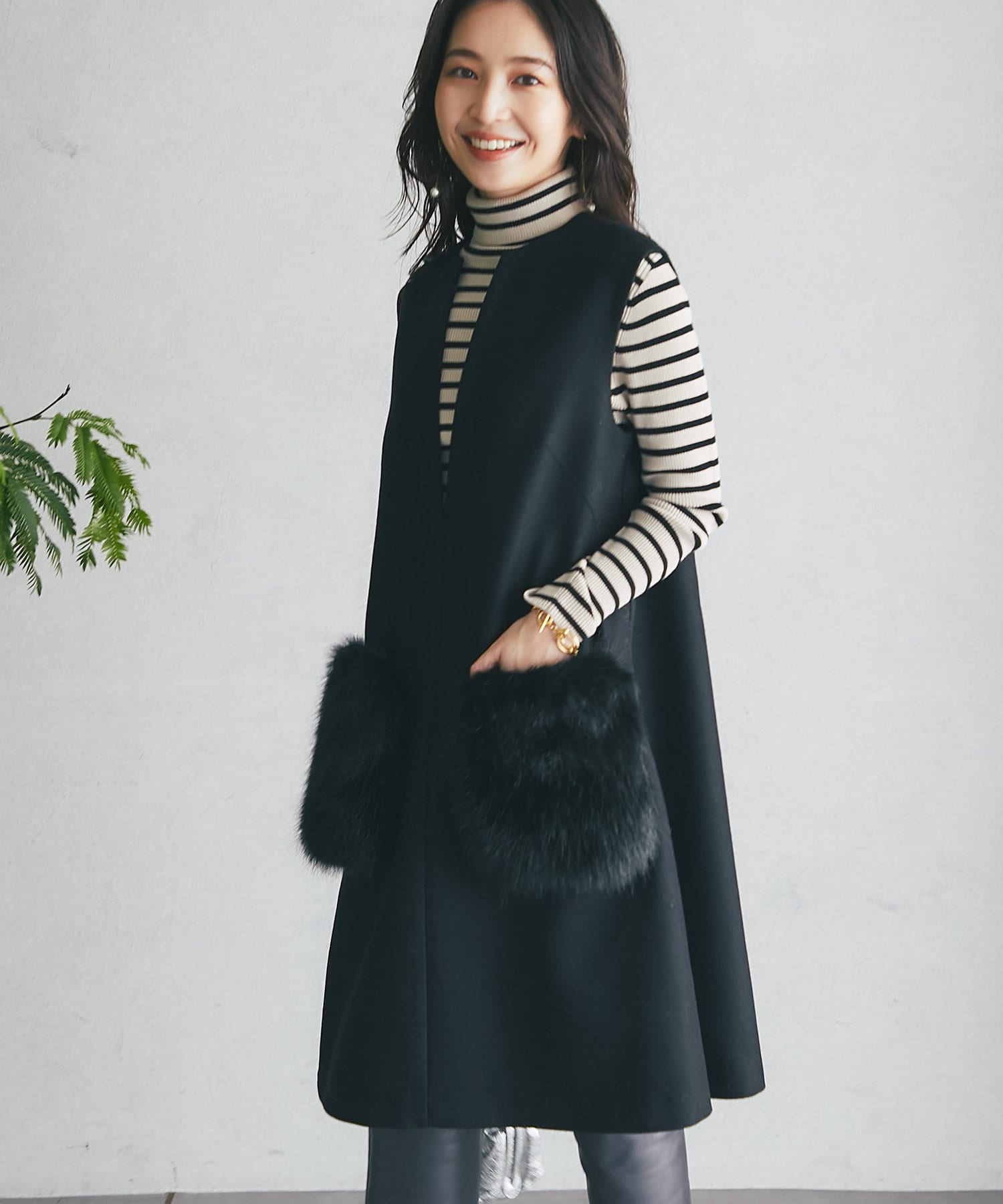フェイクファーポケットが華やかな冬の愛されジャンドレ