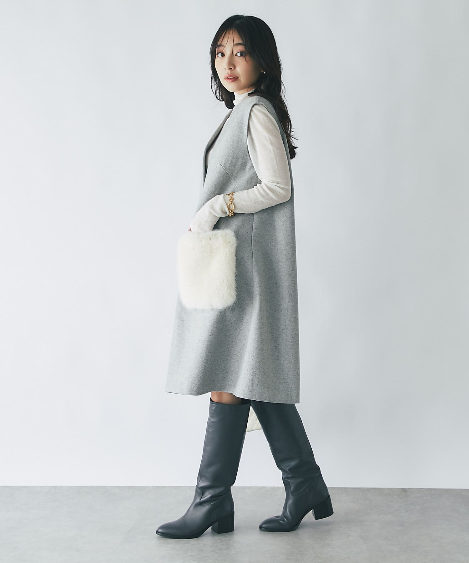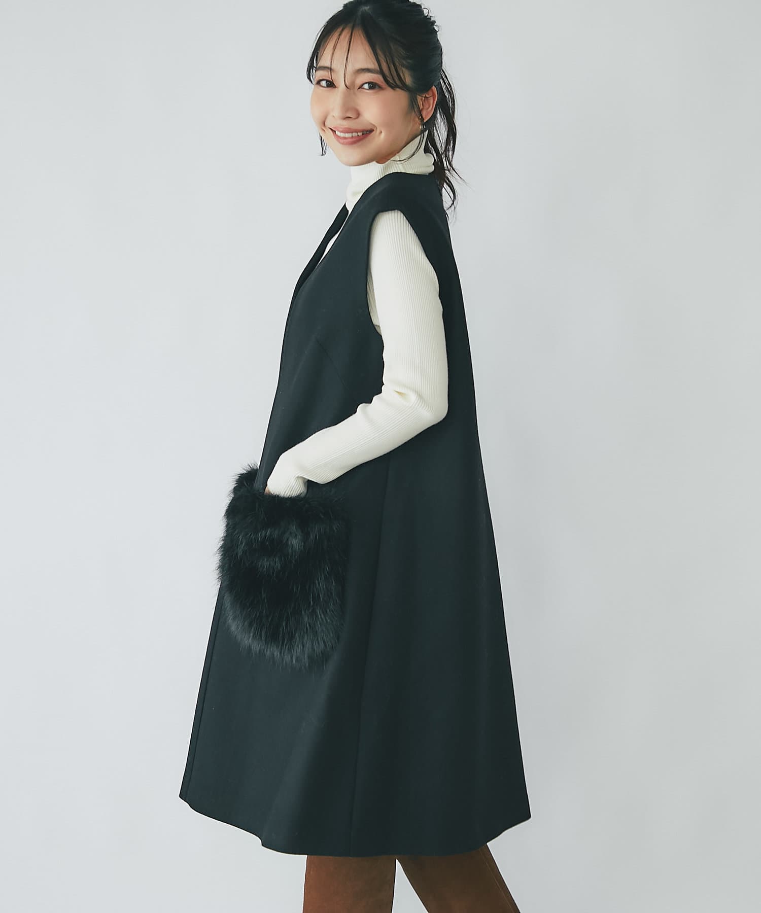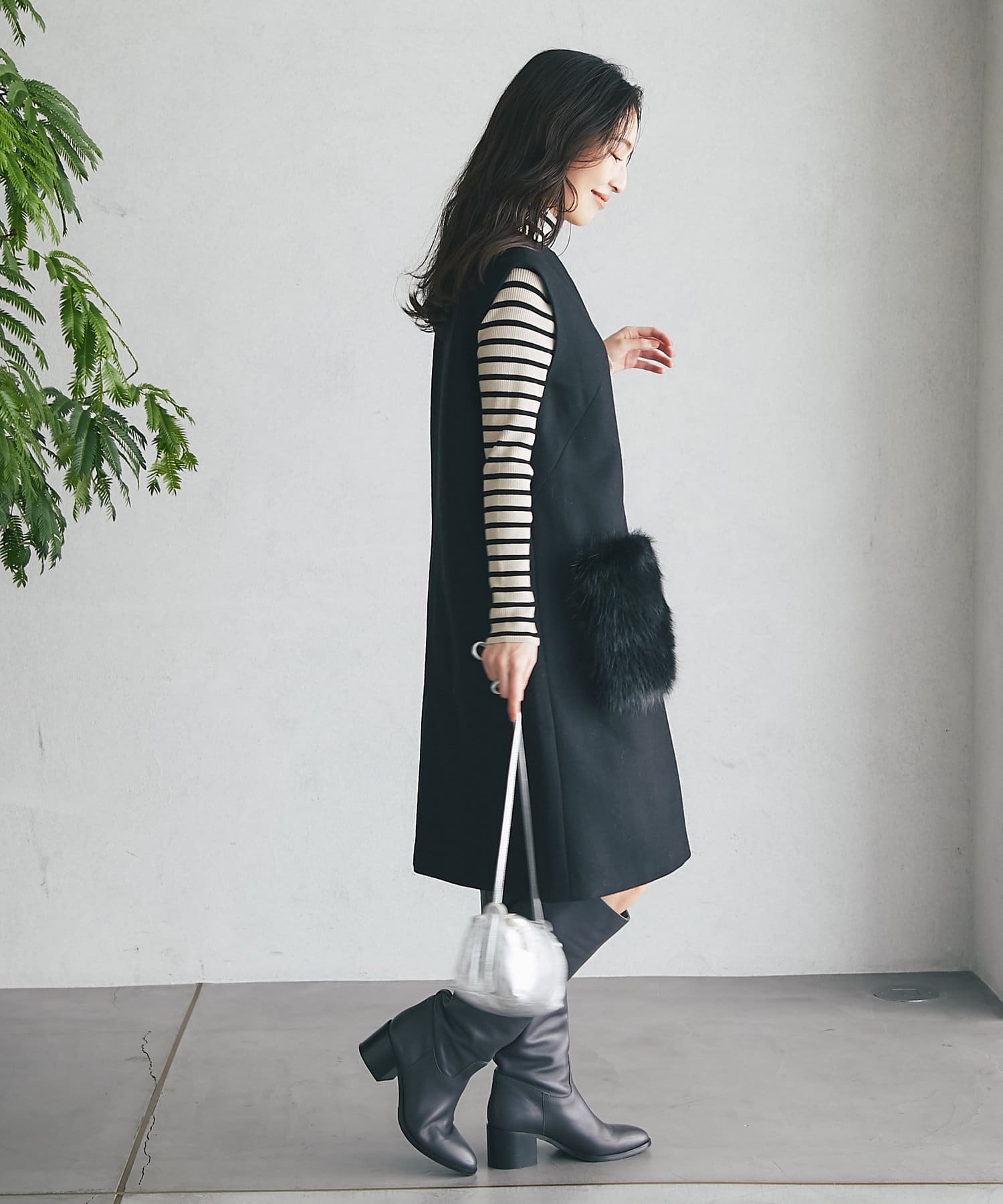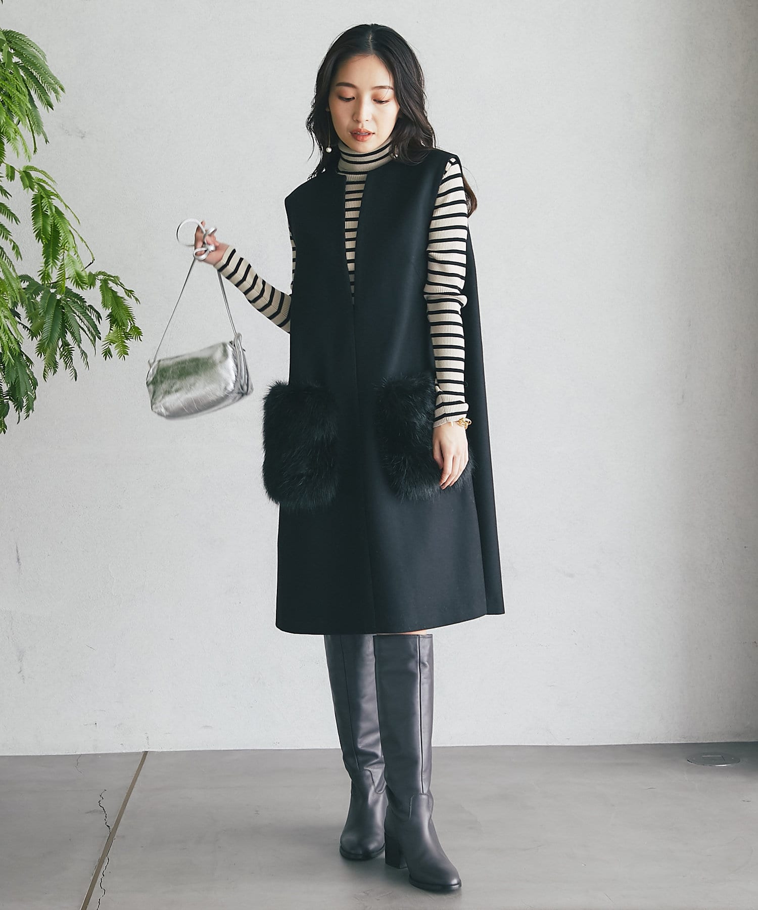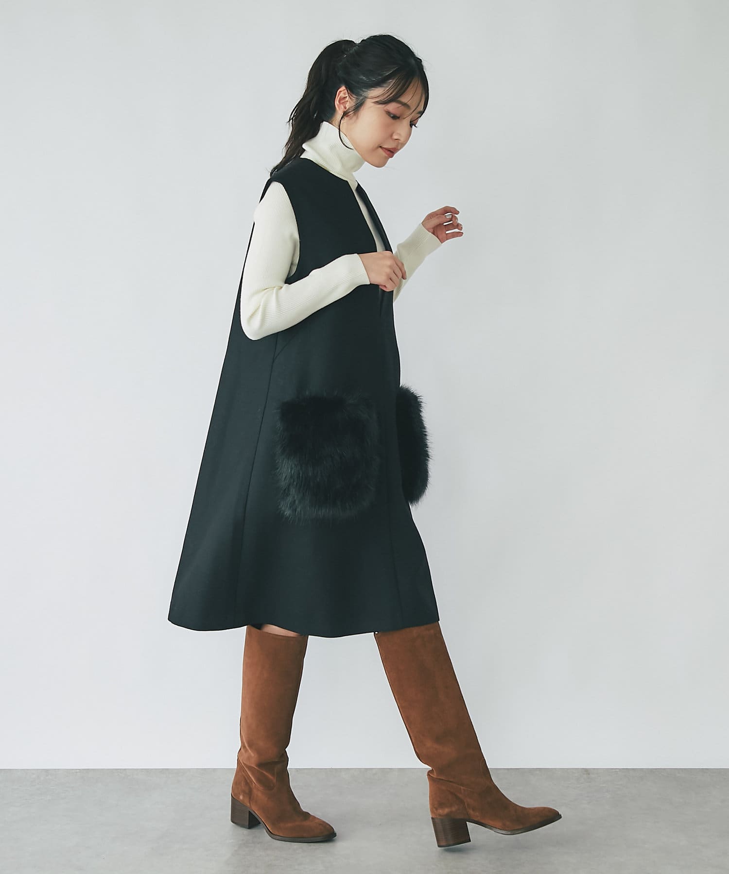 フェイクファーポケットが華やかな冬の愛されジャンドレ