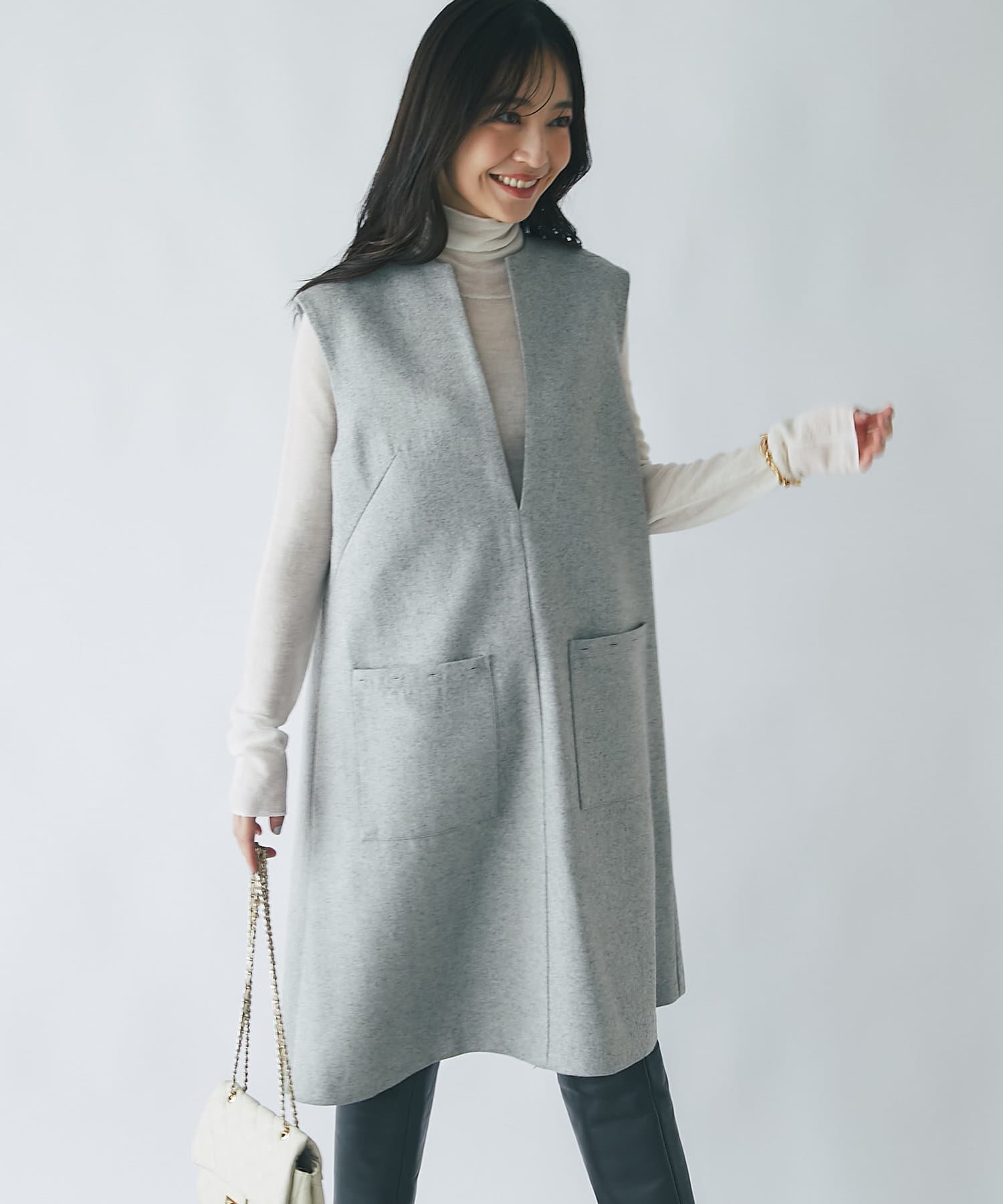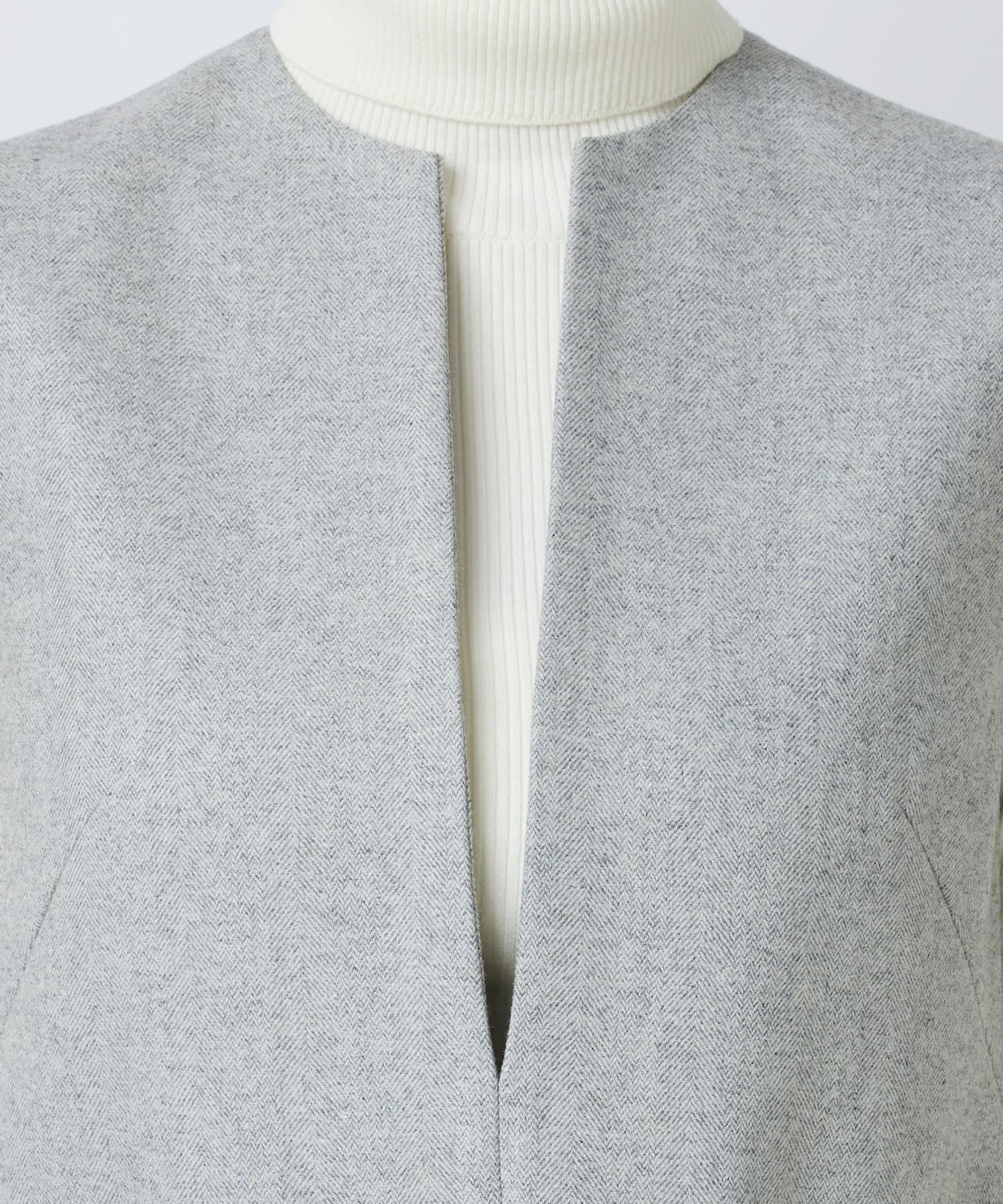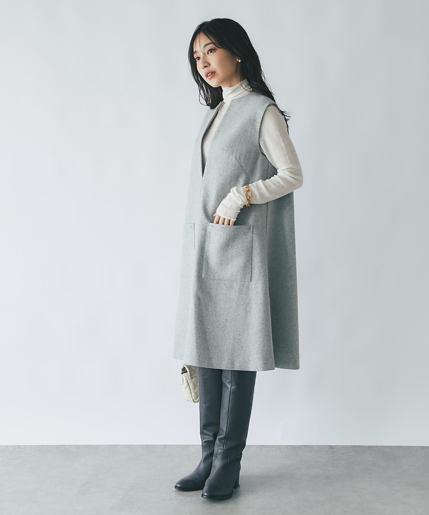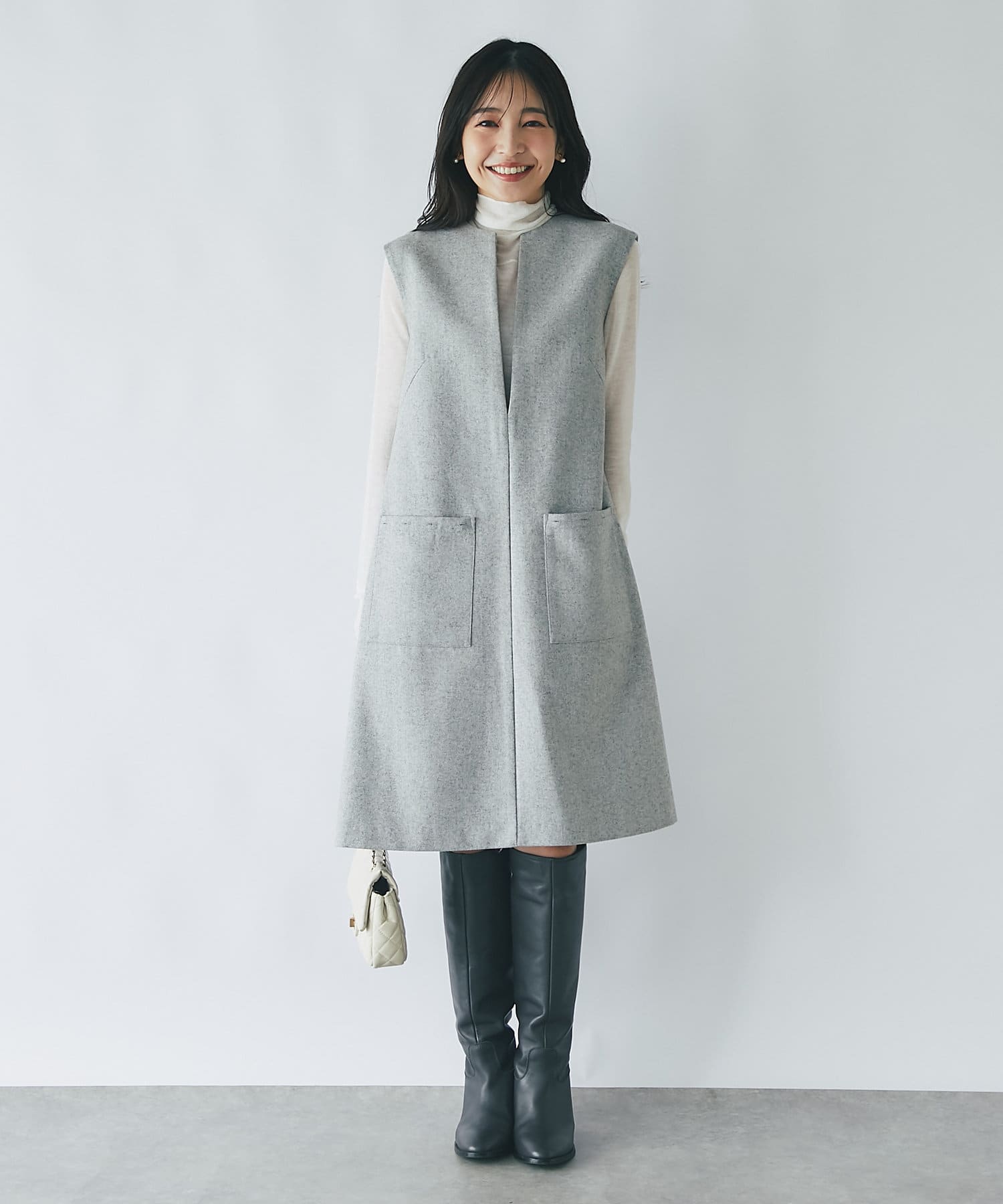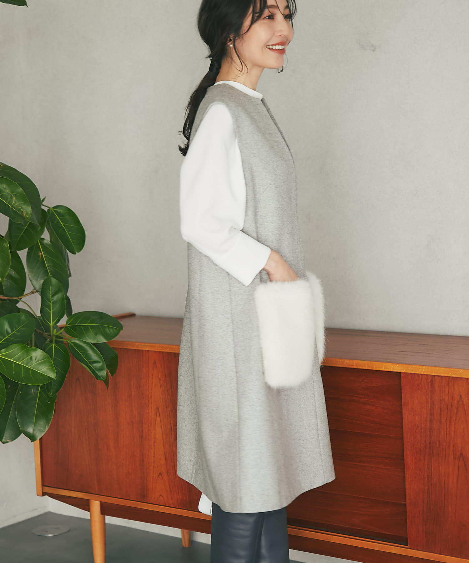 ウール混ツイード素材に高級感あるファーポケットが冬のスタイルを華やかにしてくれます。