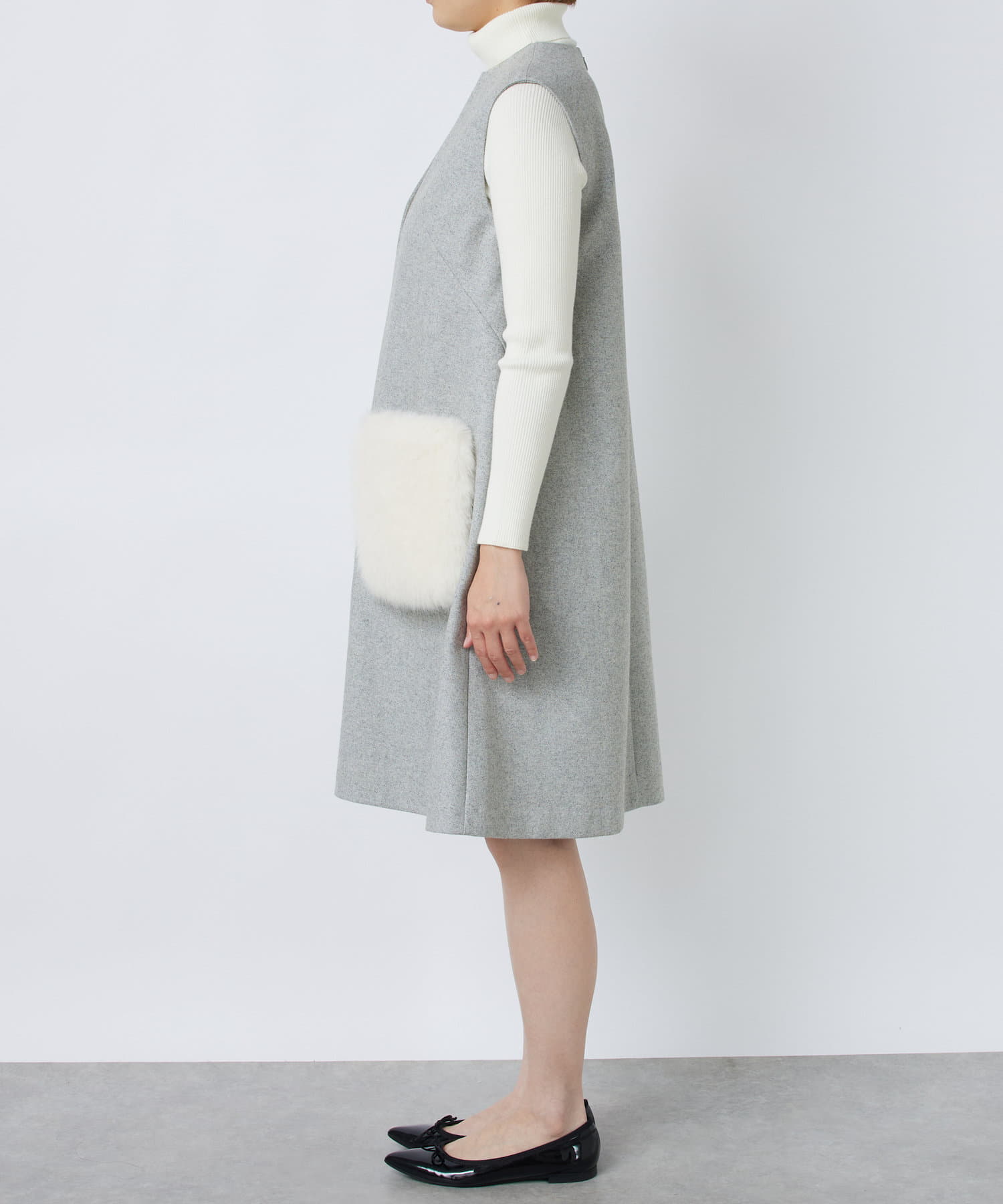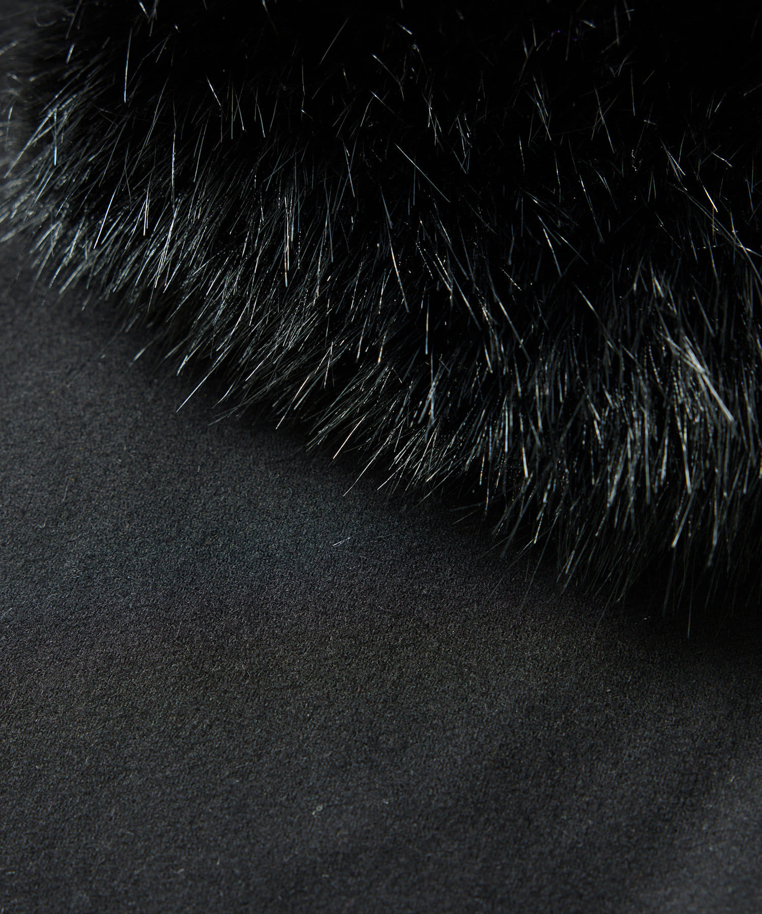 毛足の長いフェイクファーポケットがデザインポイントのジャンドレ。