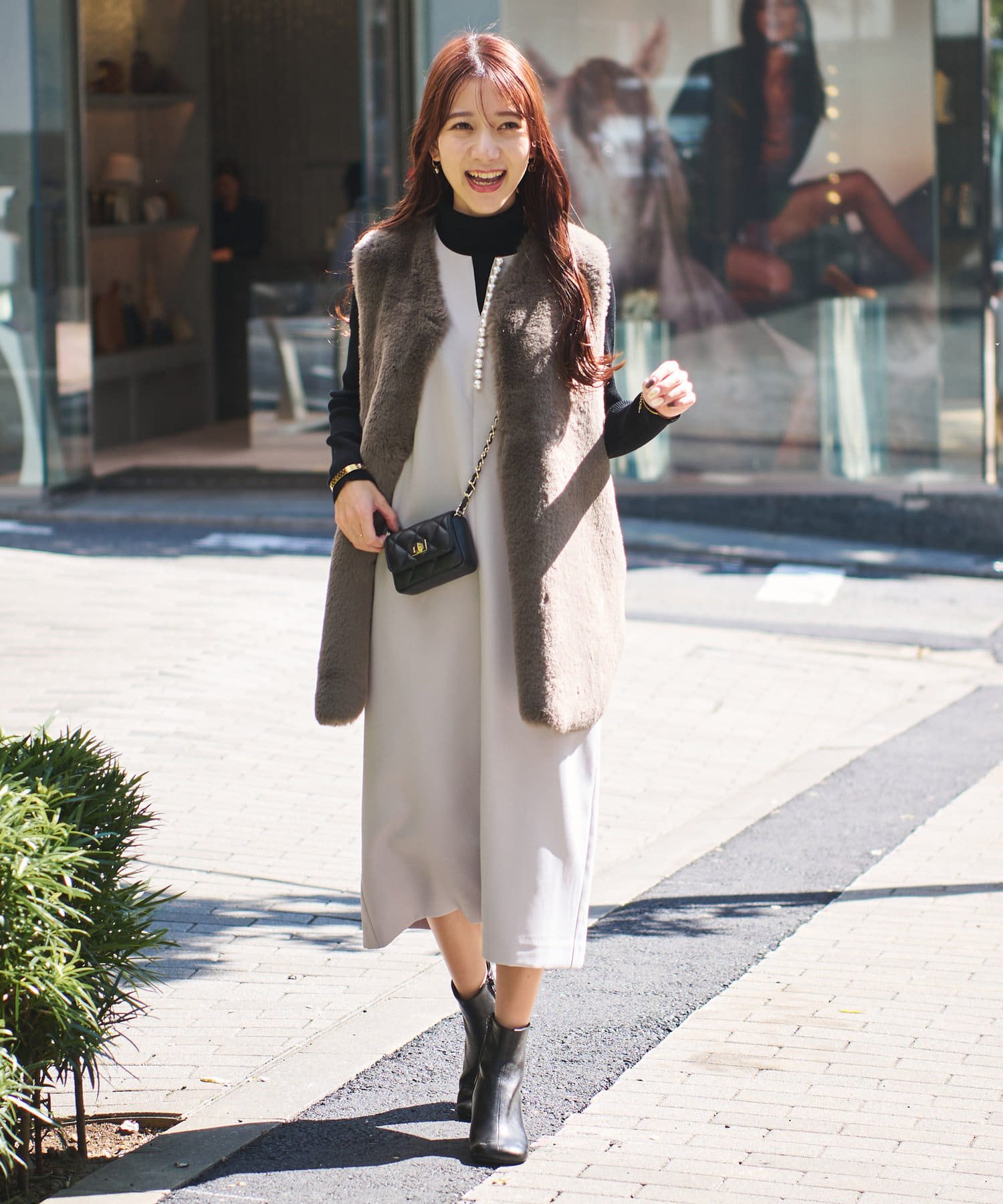 Iラインシルエットとライトグレーのお色味で洗練された大人の雰囲気があります。
