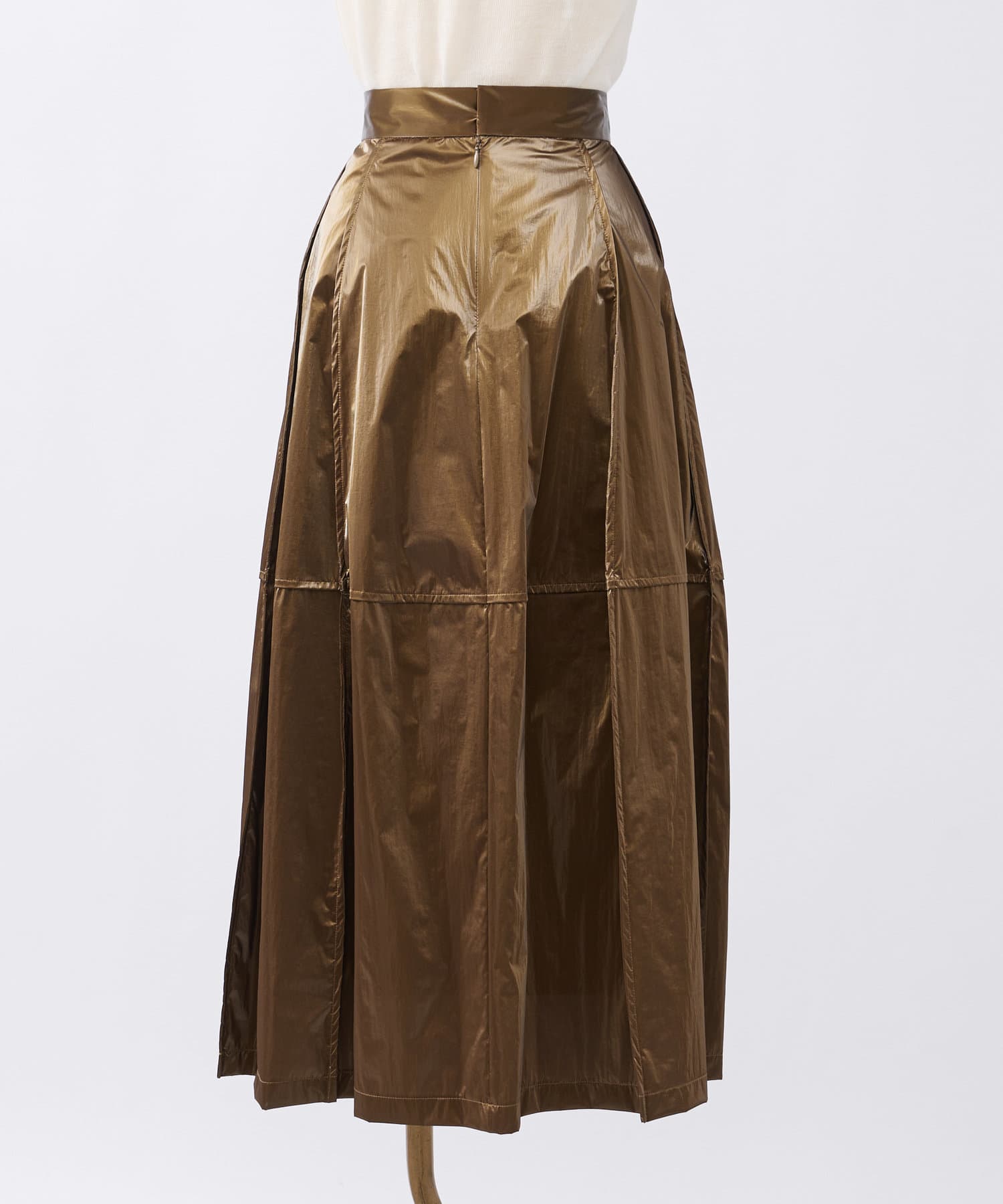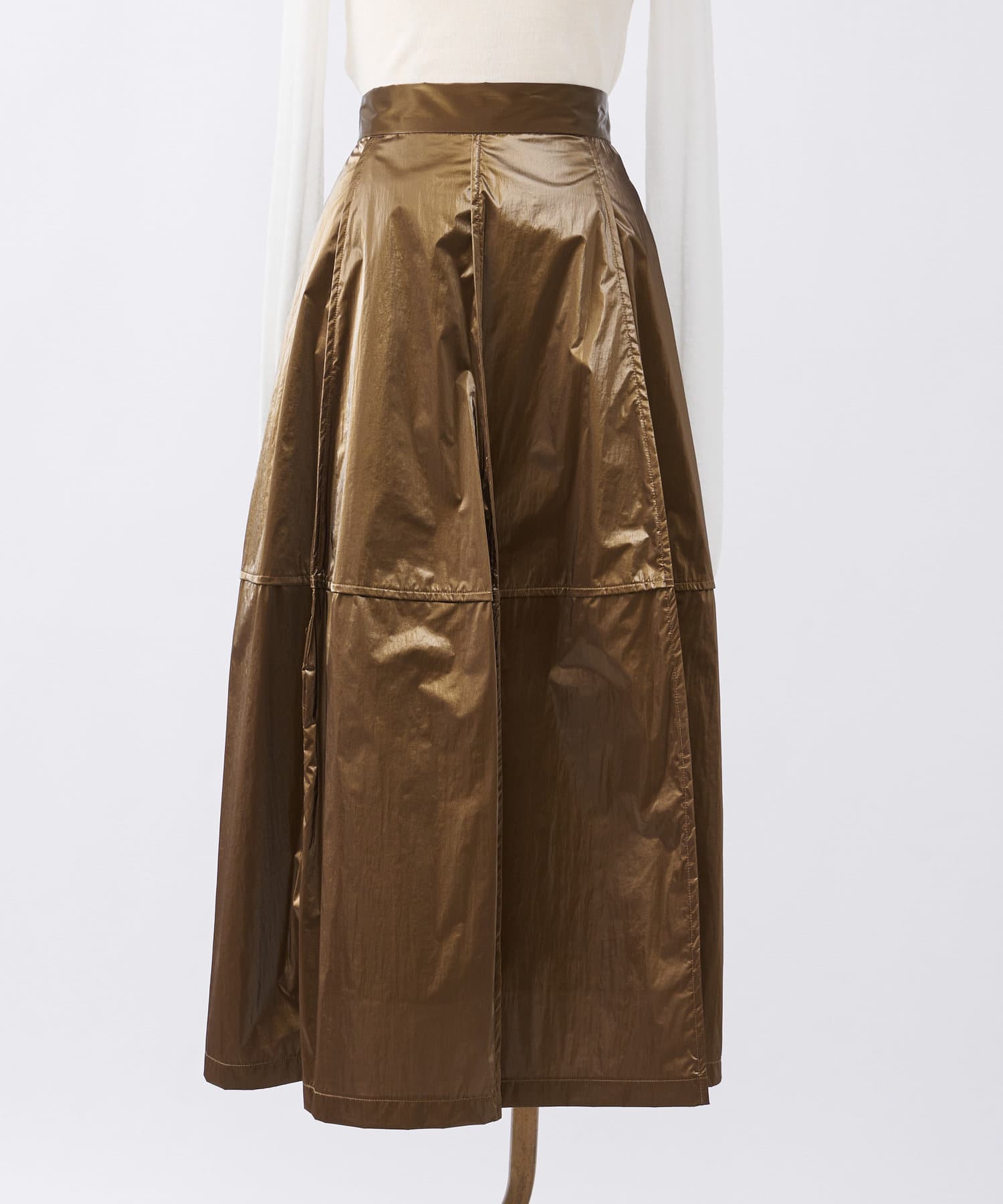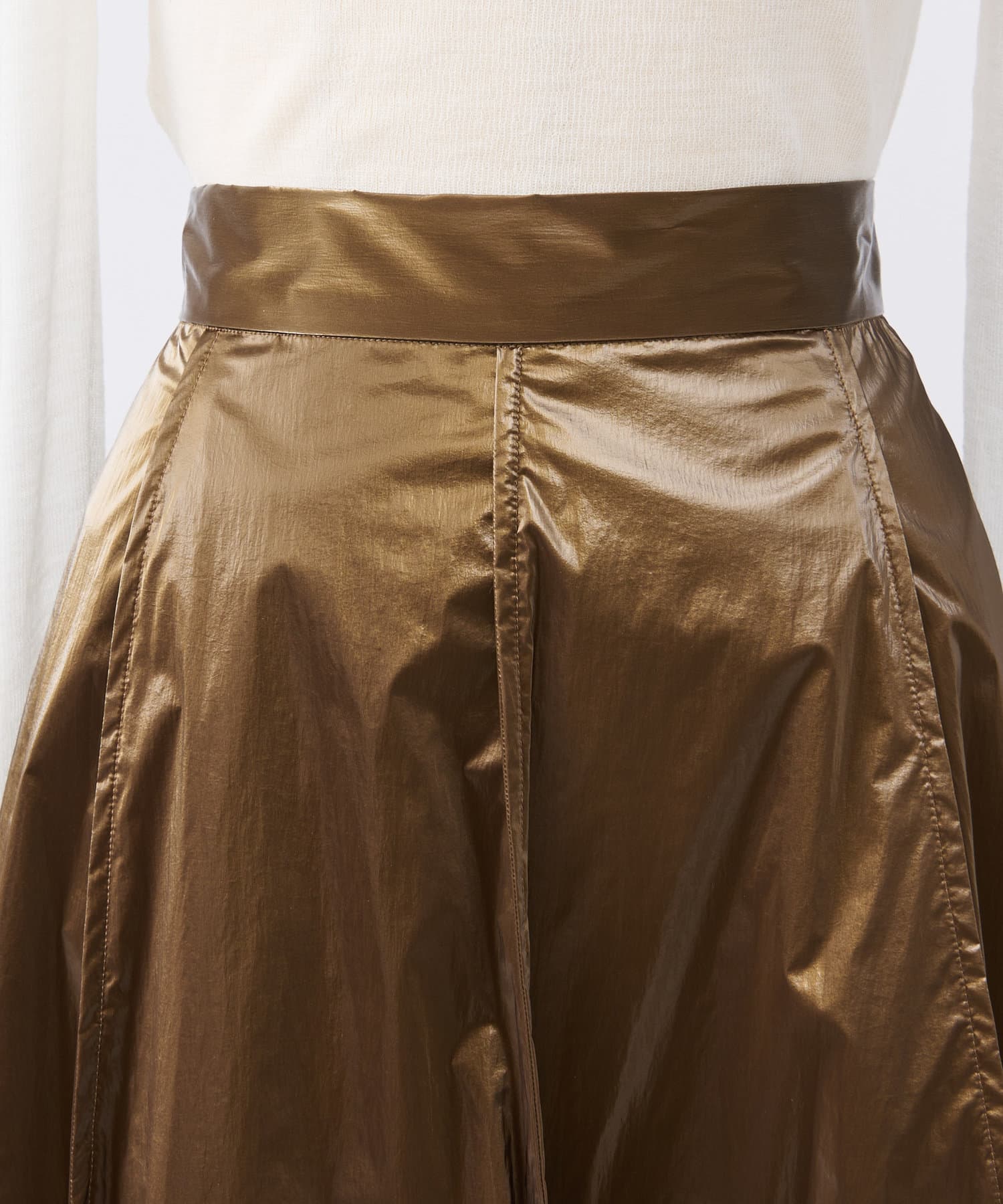 フィルム加工を施した華やかな光沢のあるスカート