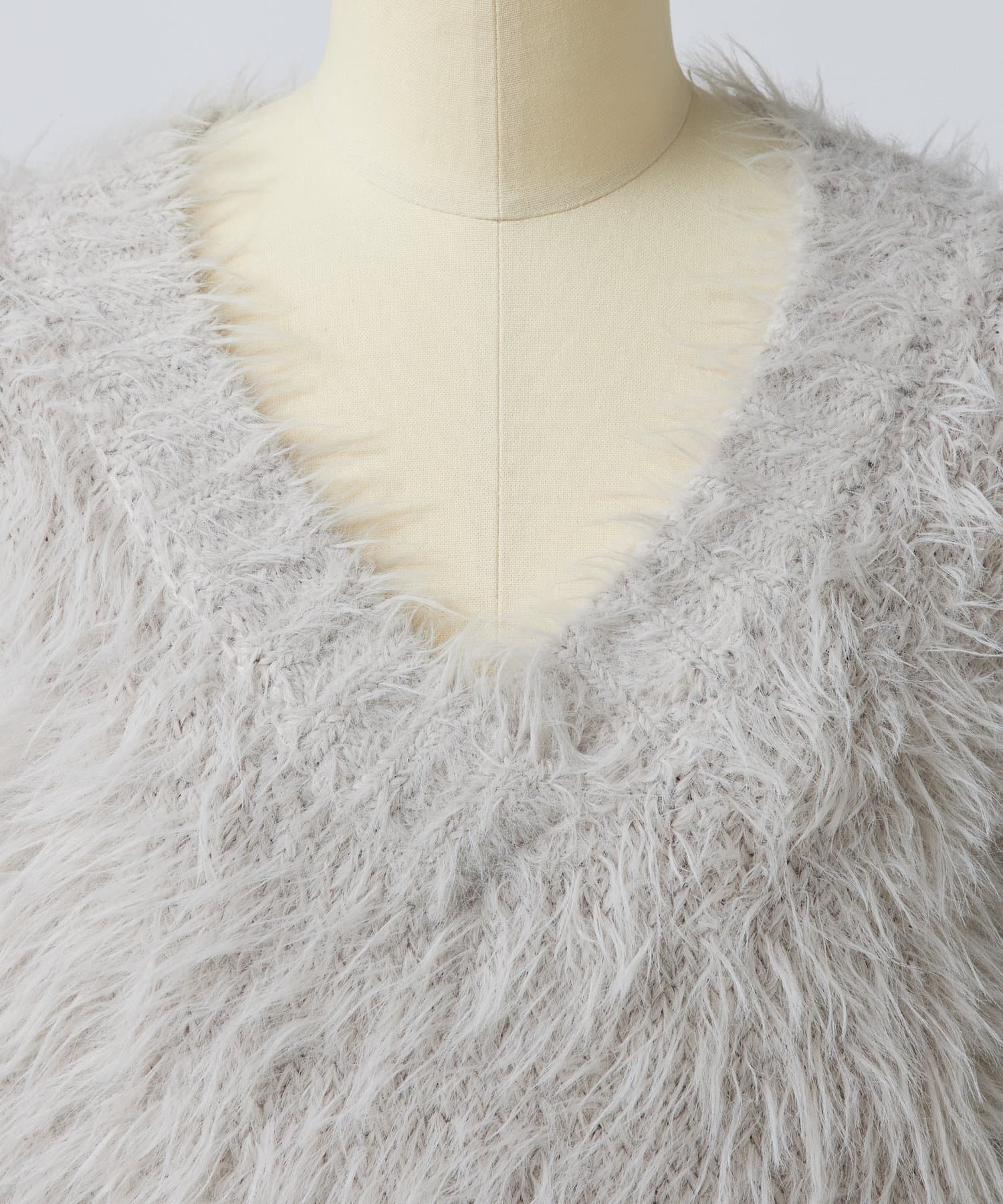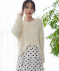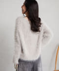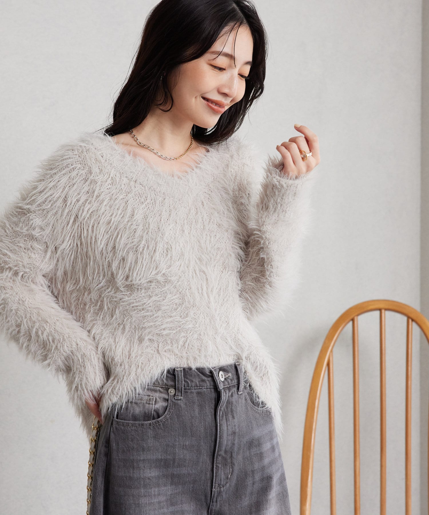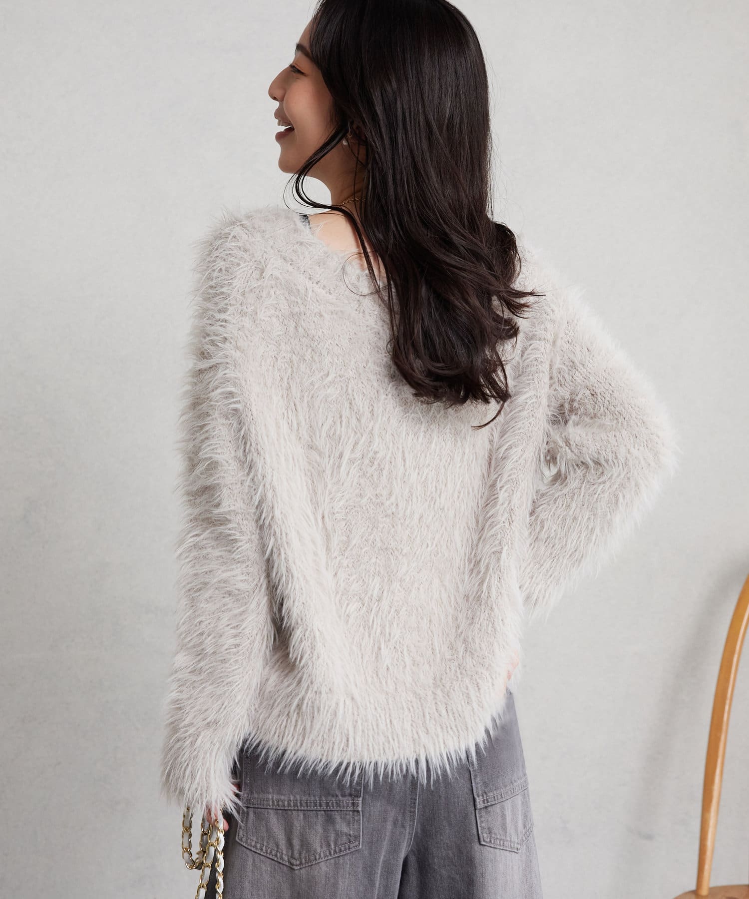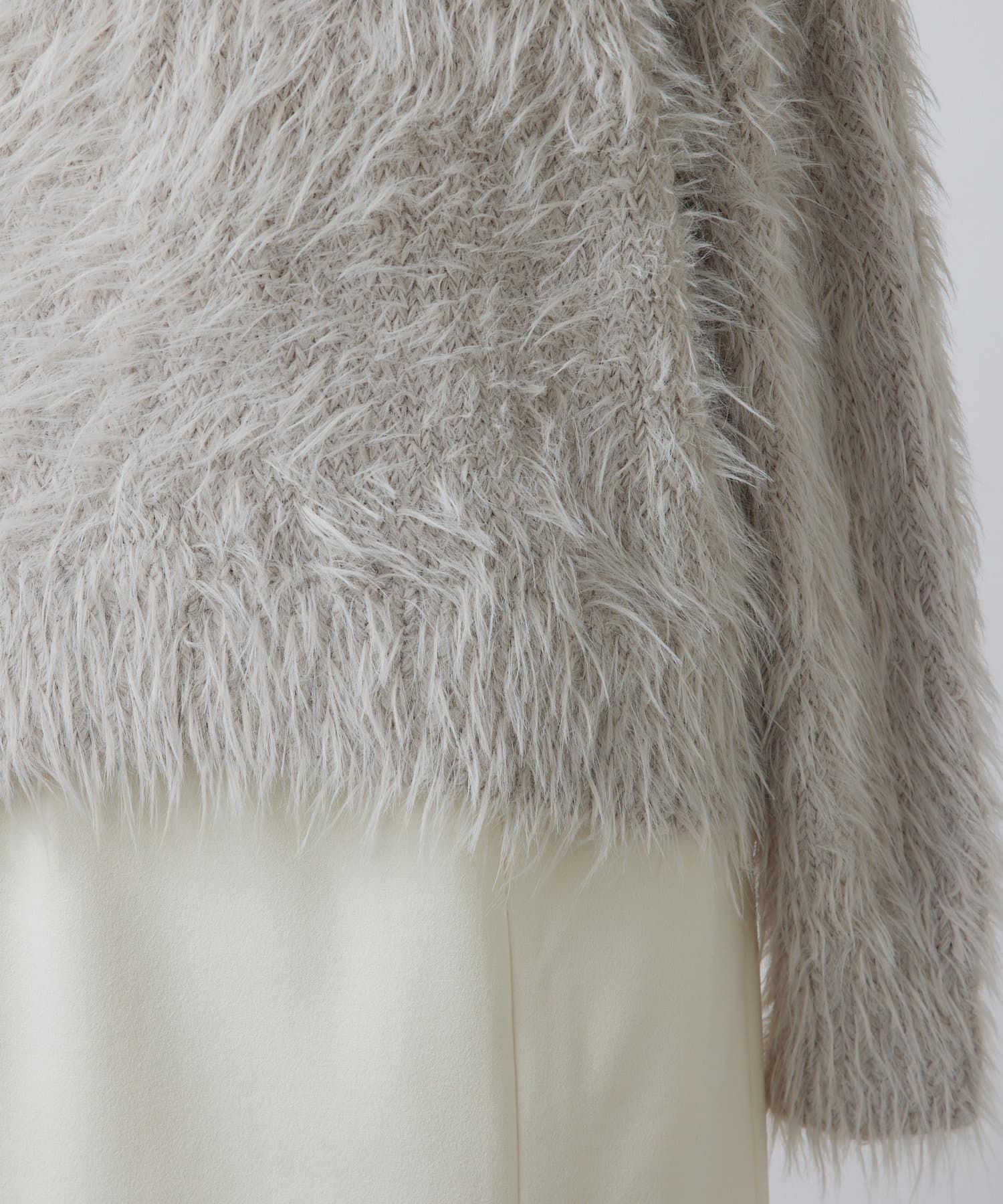 毛足の長いふわふわシャギーが存在感のある華やかニット。