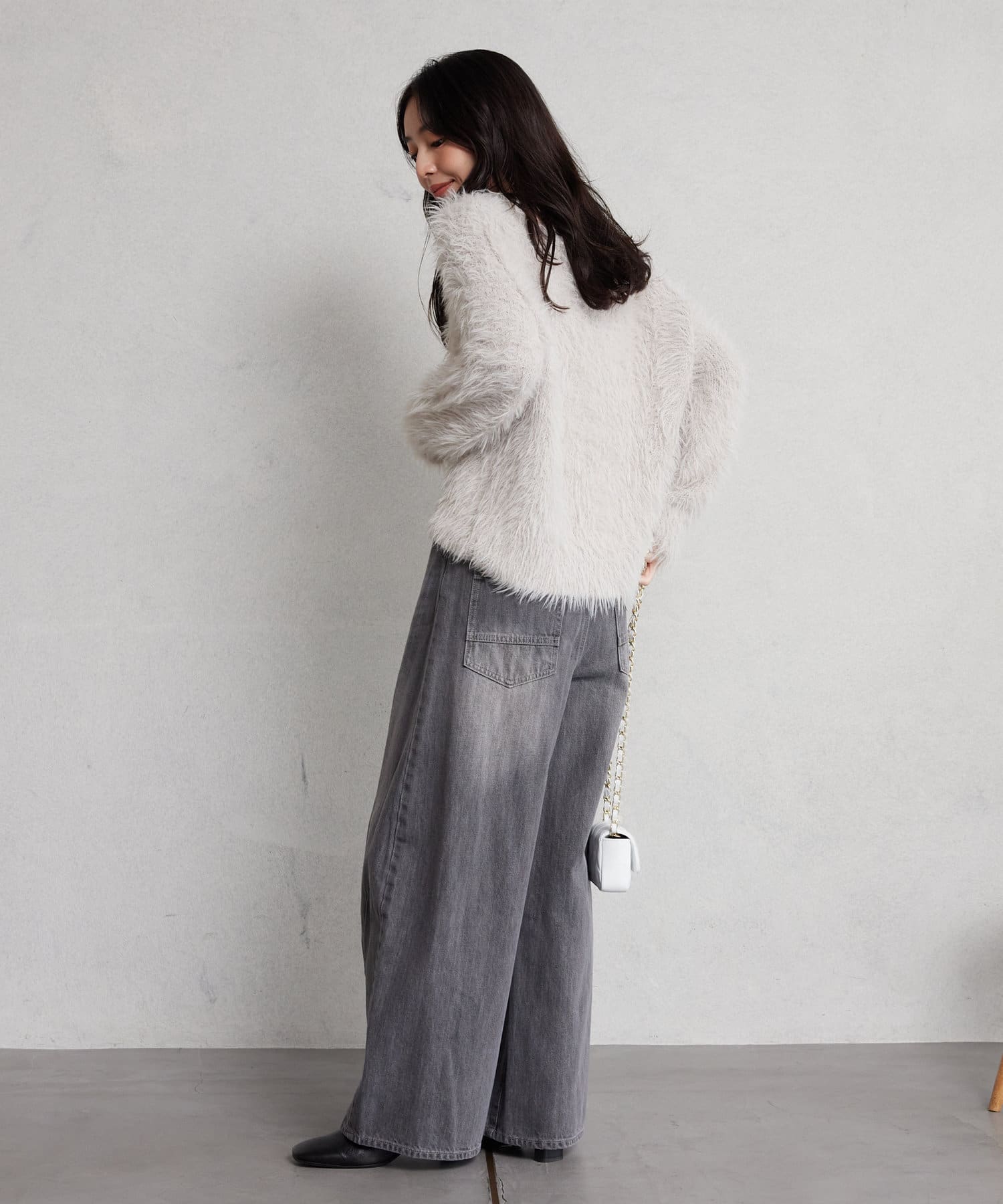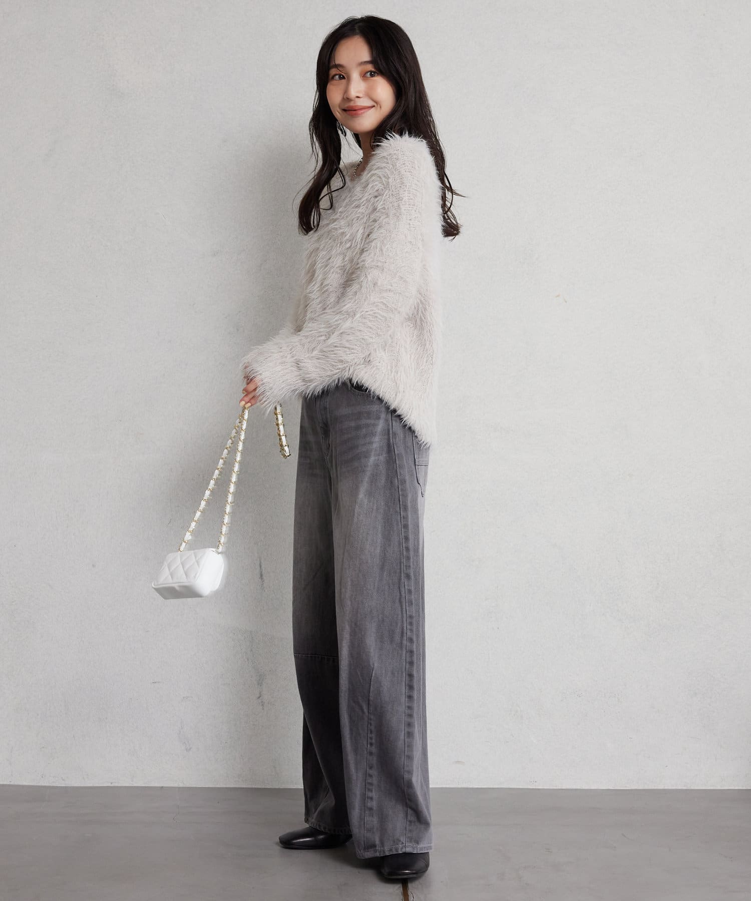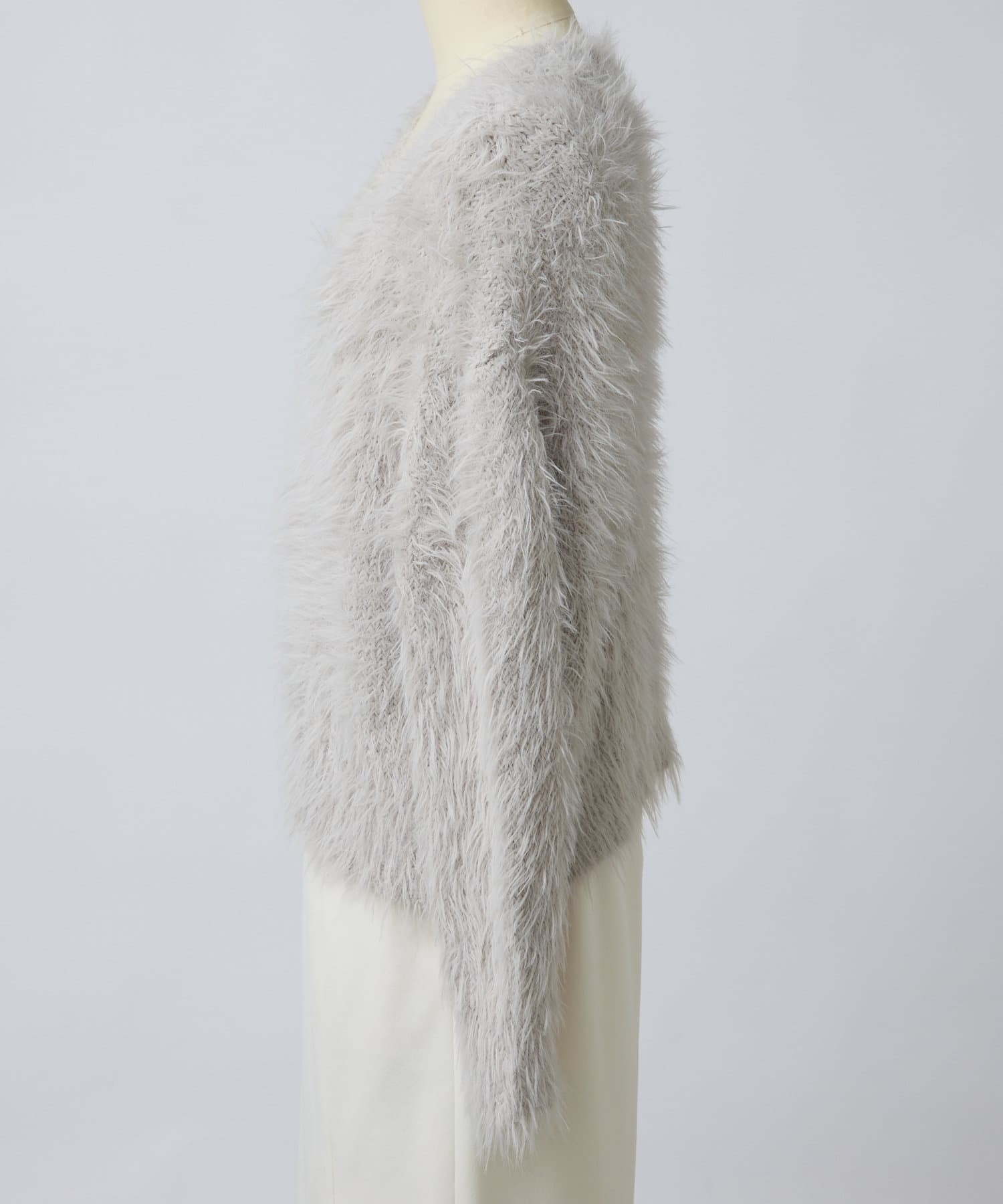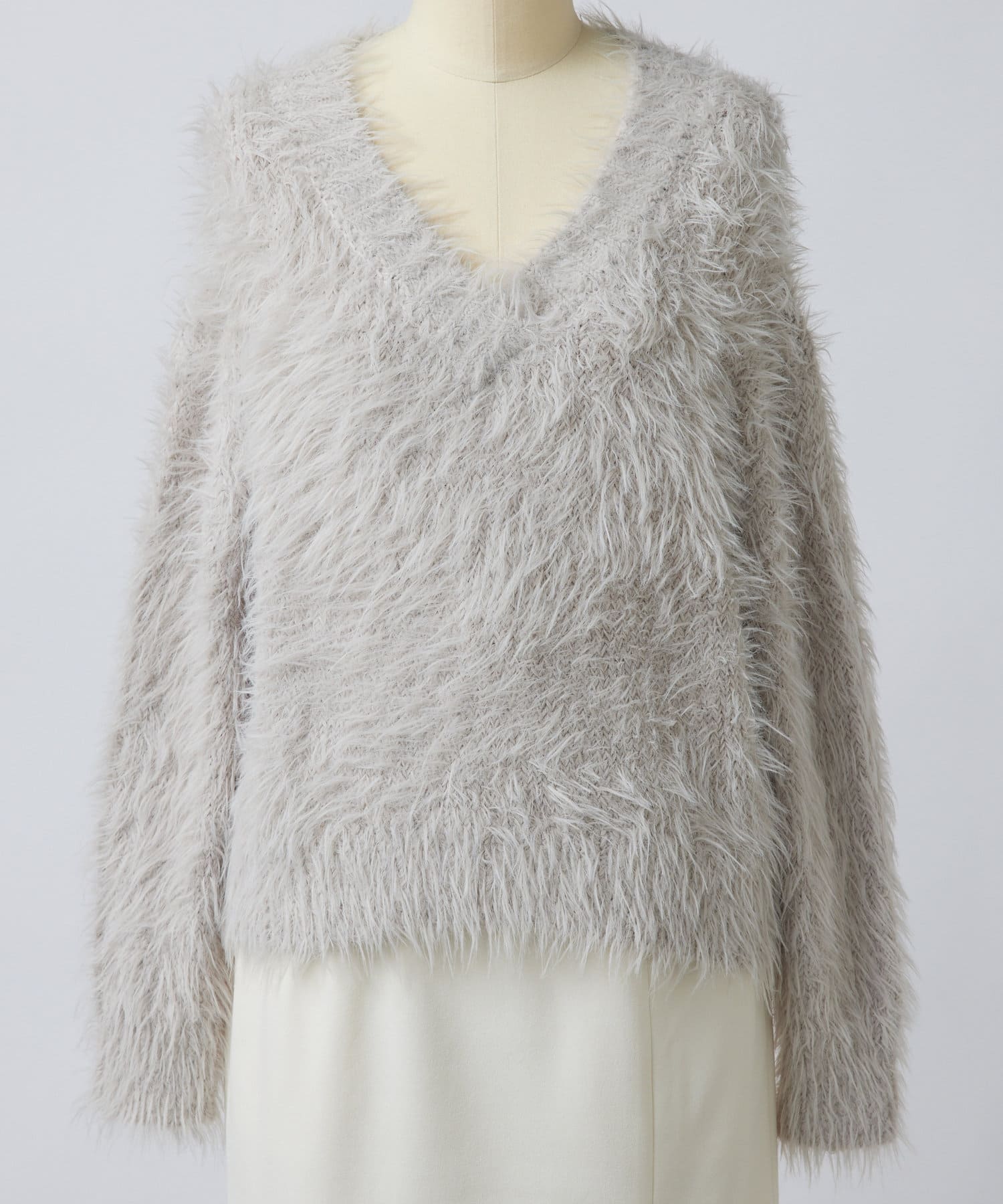 毛足の長いふわふわシャギーが存在感のある華やかニット。