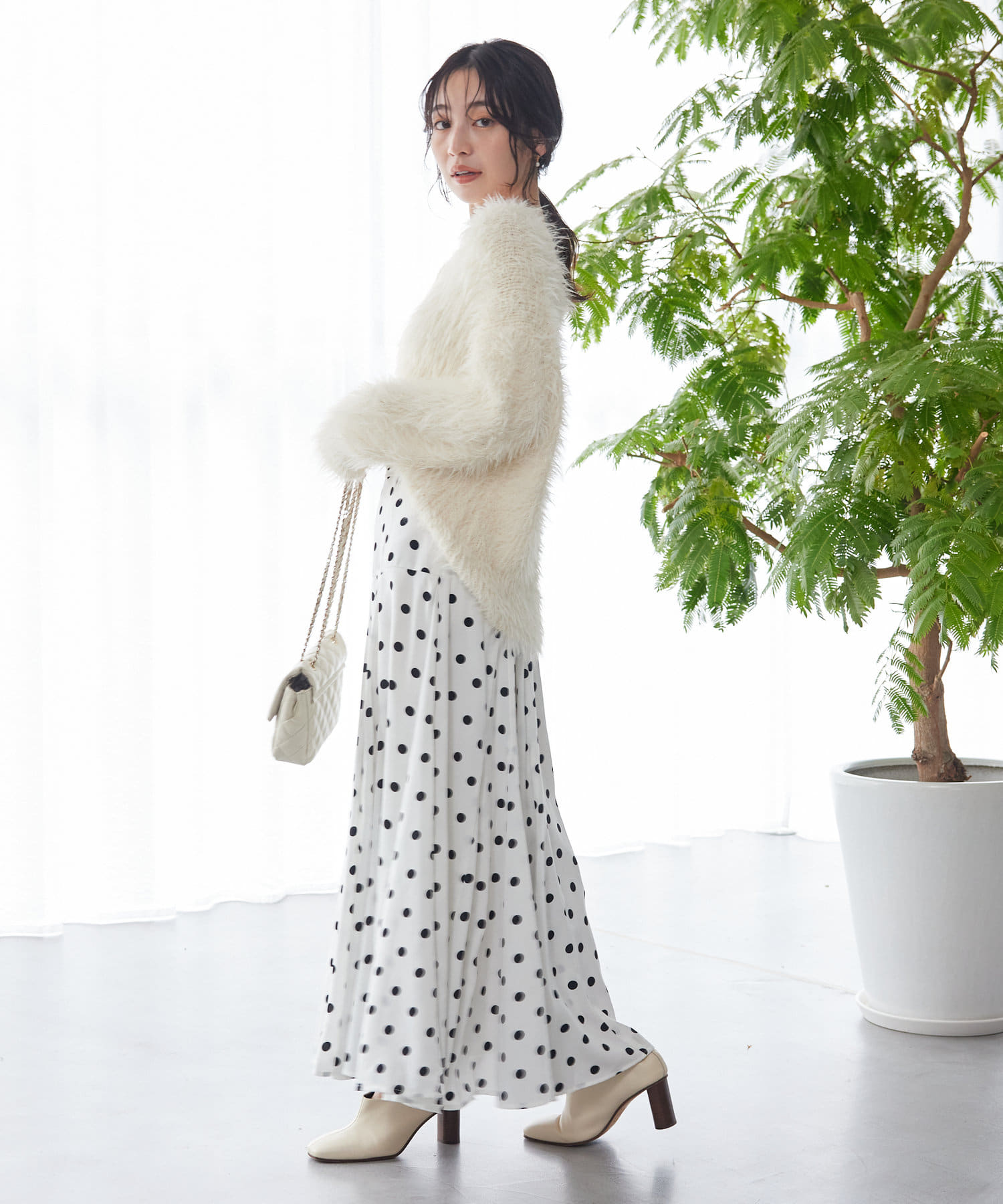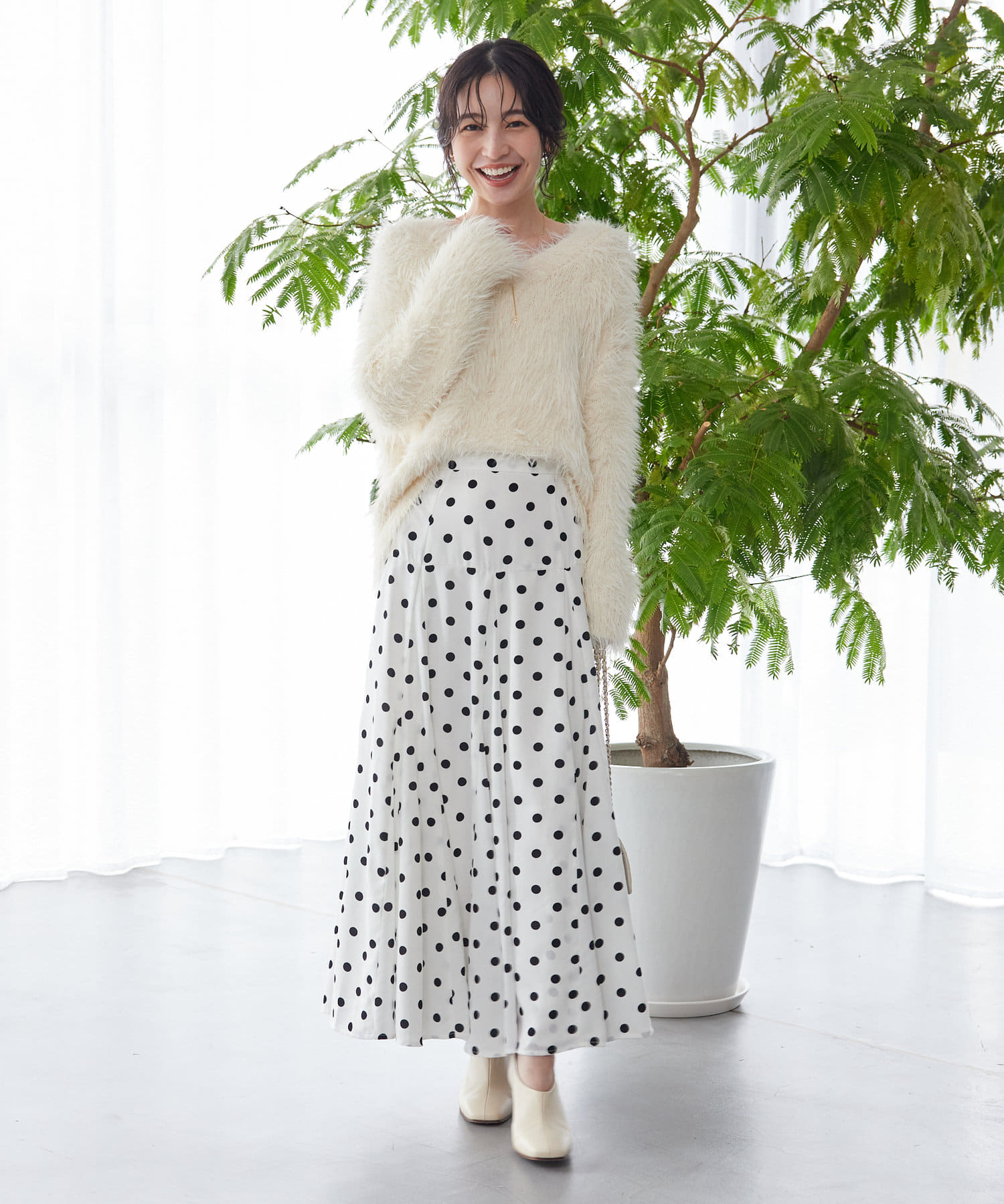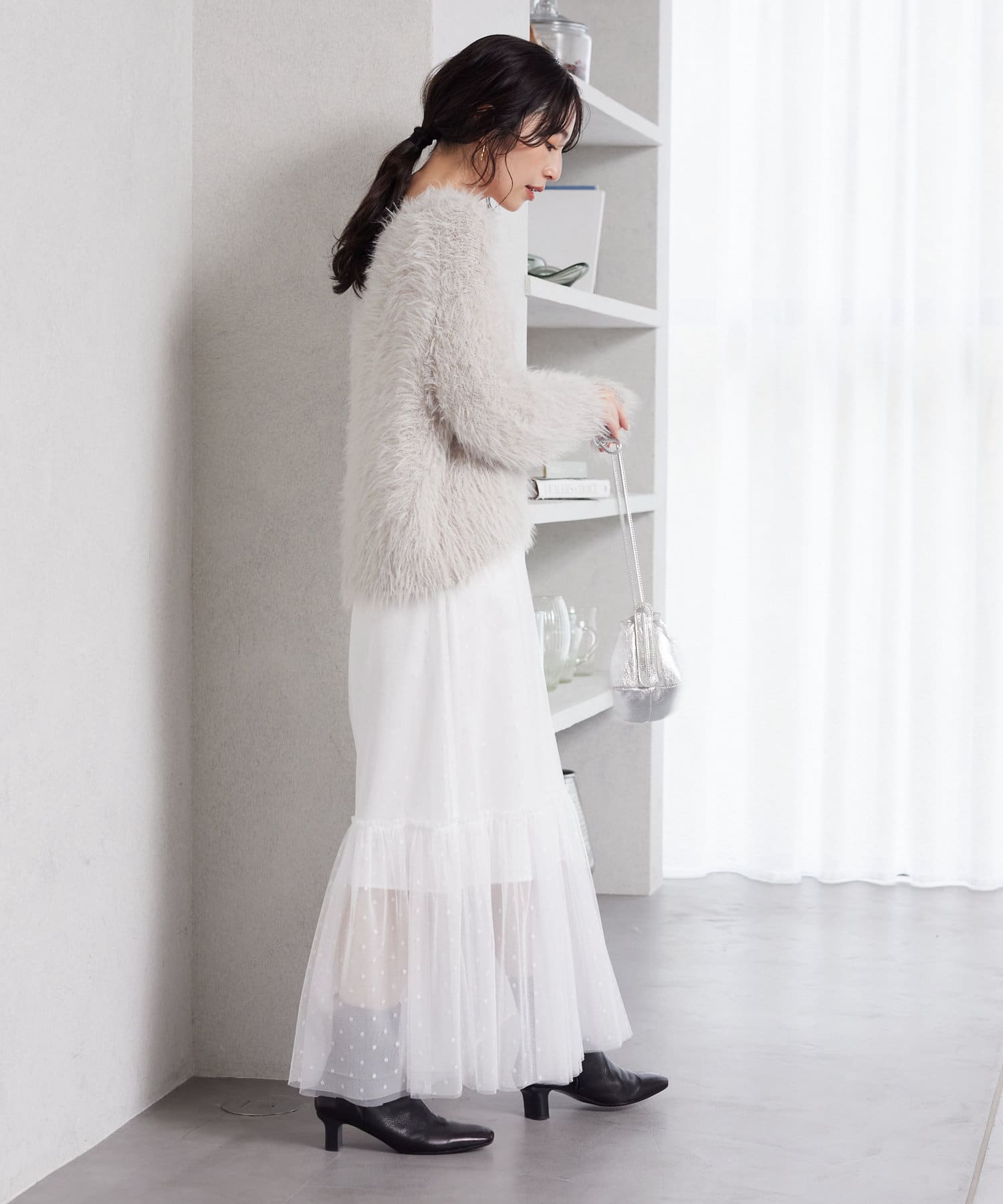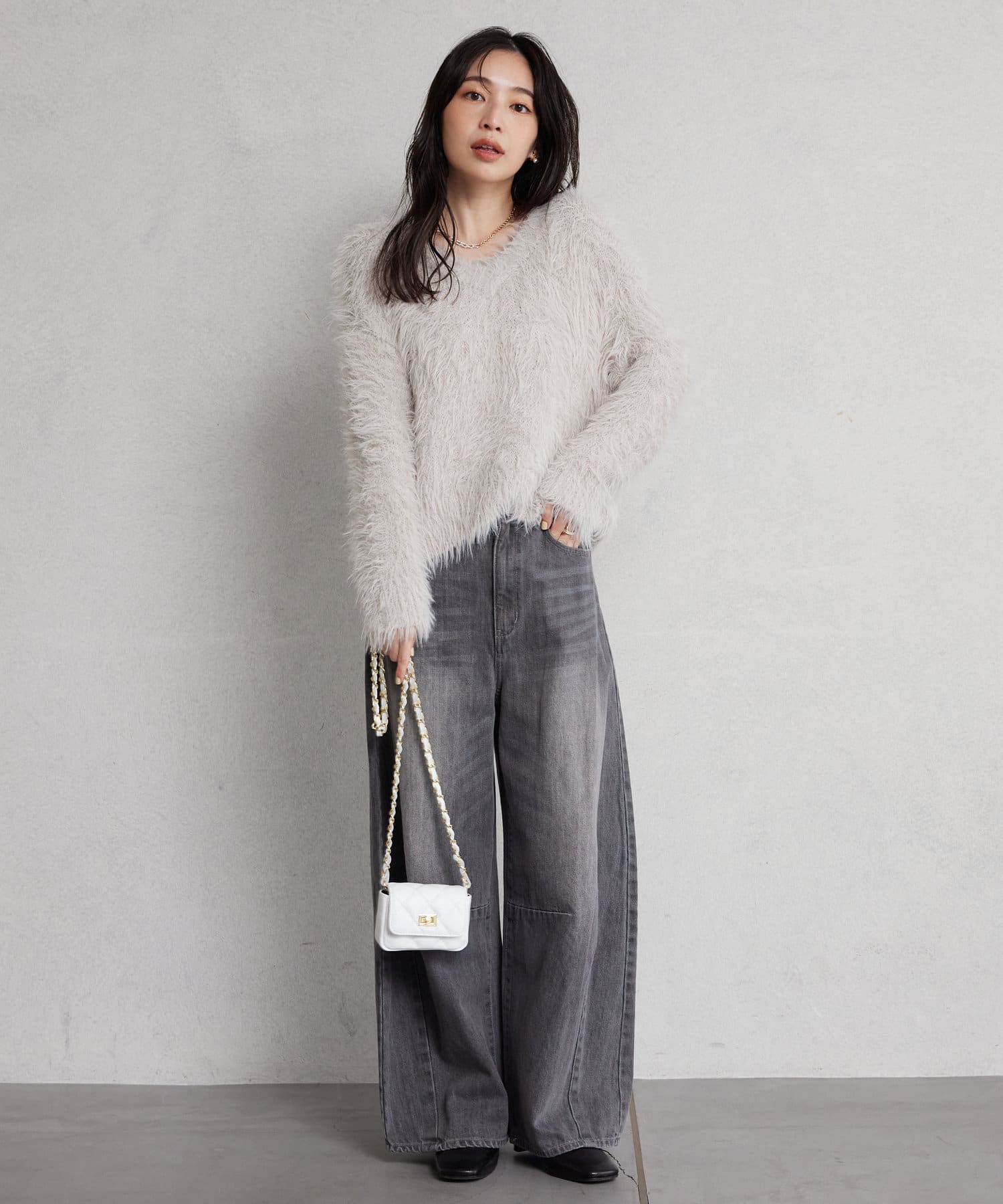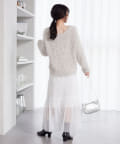 毛足の長いふわふわシャギーが存在感のある華やかニット。