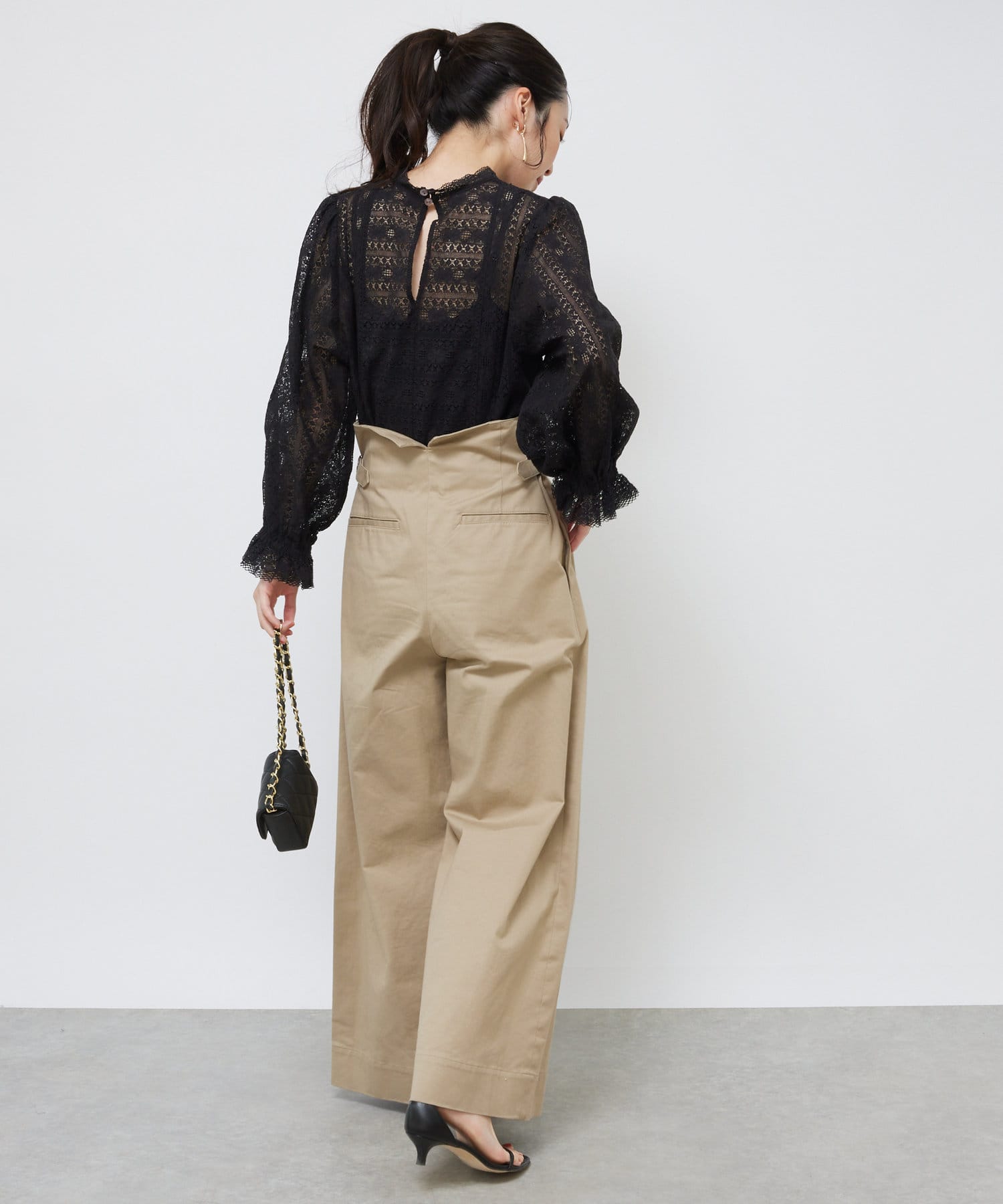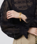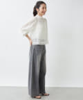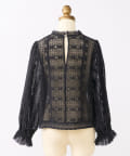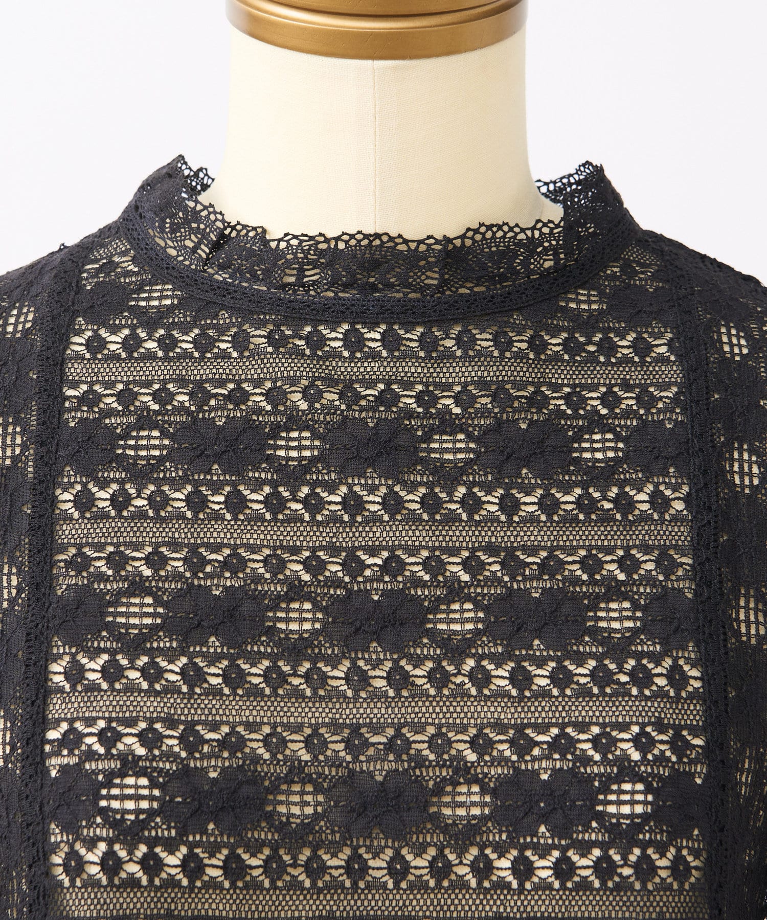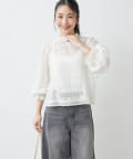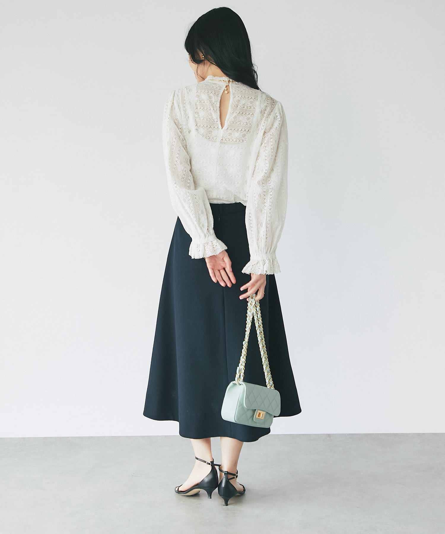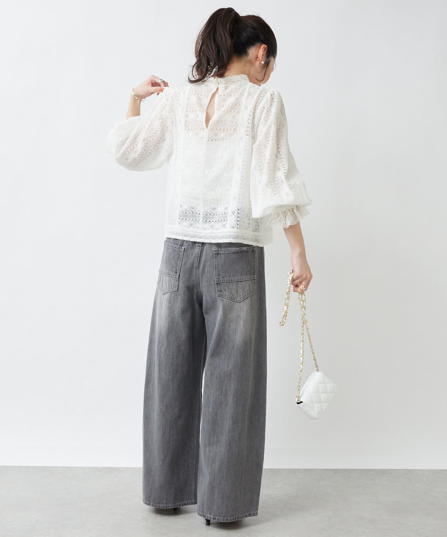 顔周りをすっきり見せるナロースタンドネックラインにボリューム感のある袖がクラシカルな印象に。