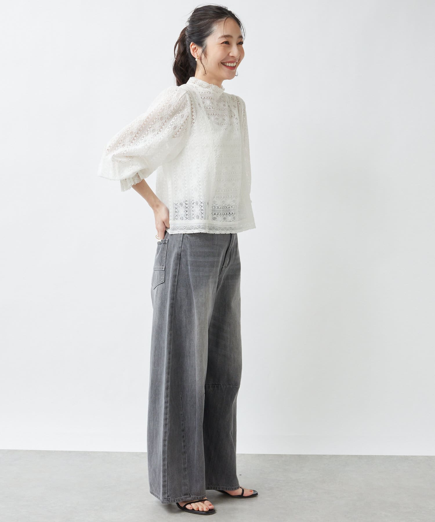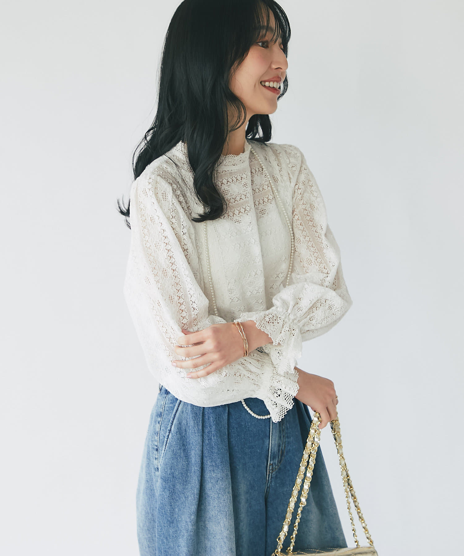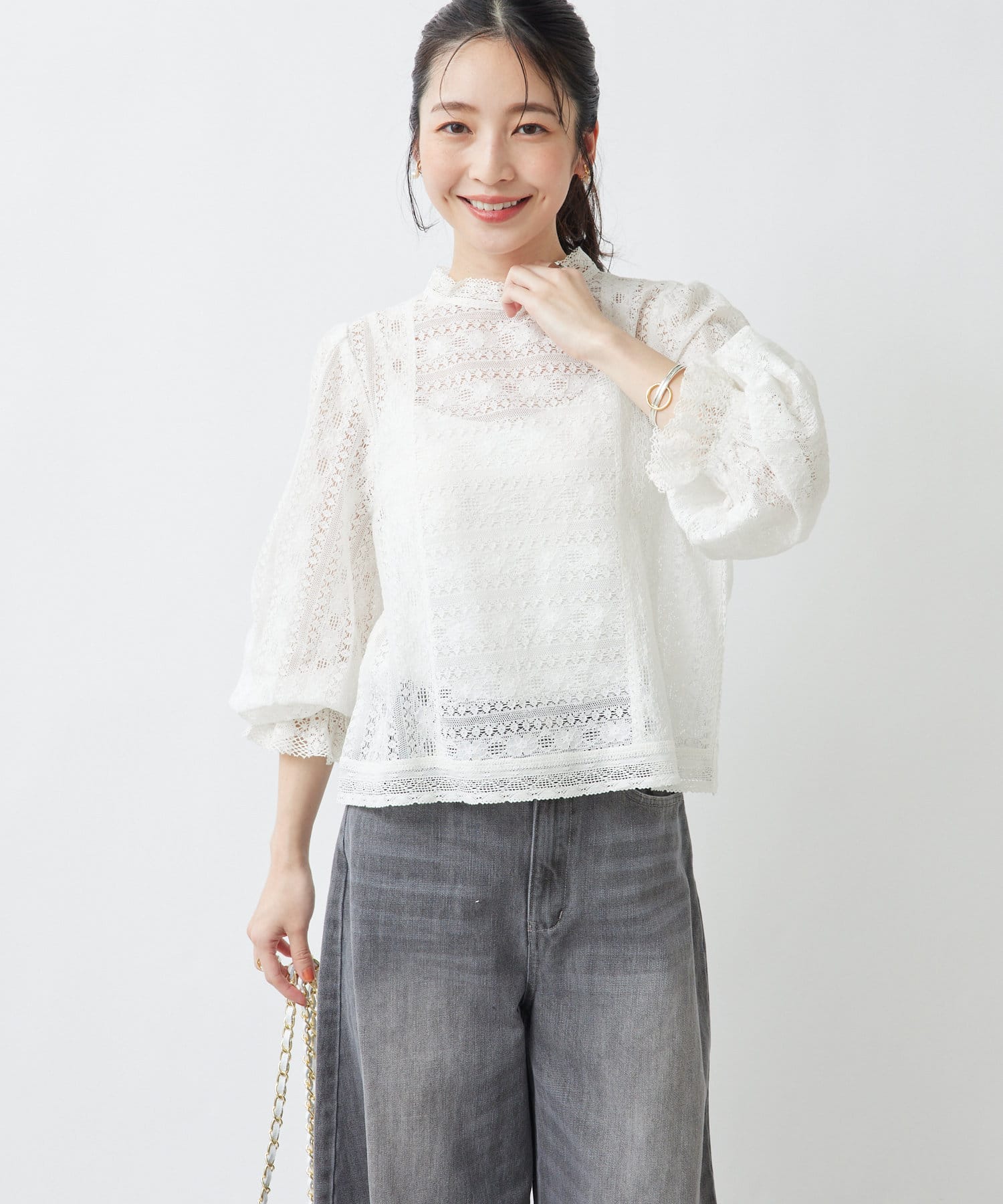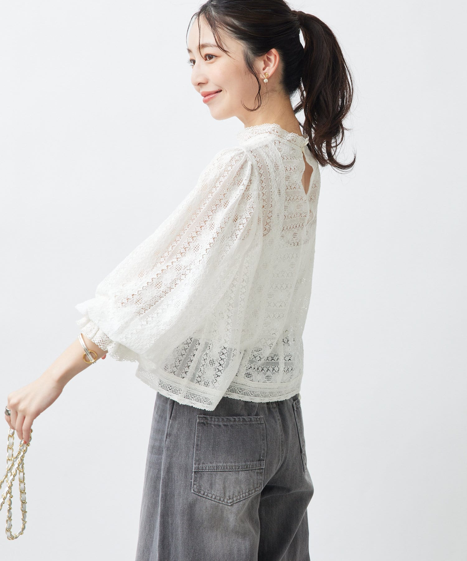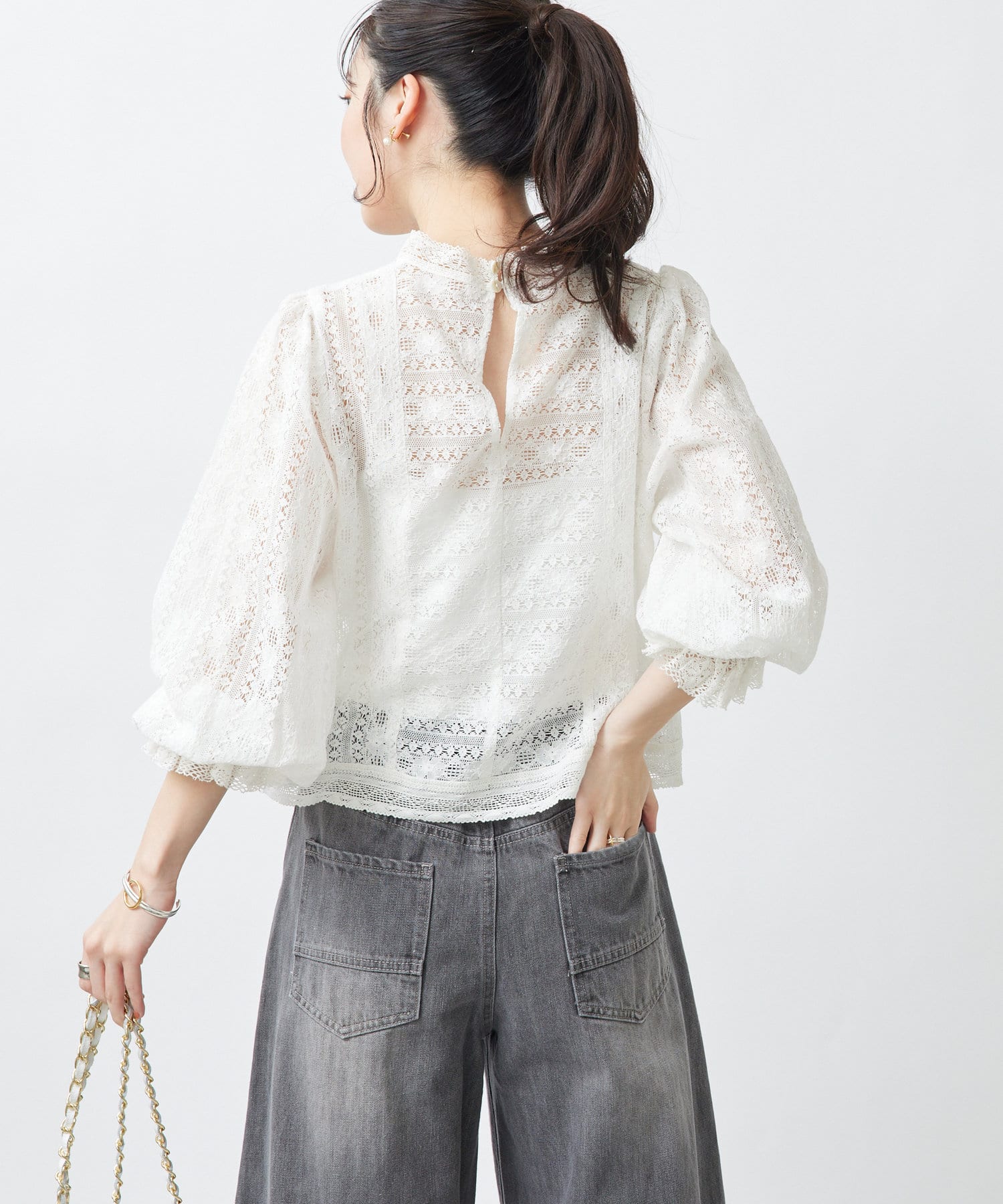 ヴィンテージのようなインドのコットンレース生地で仕上げたブラウス。