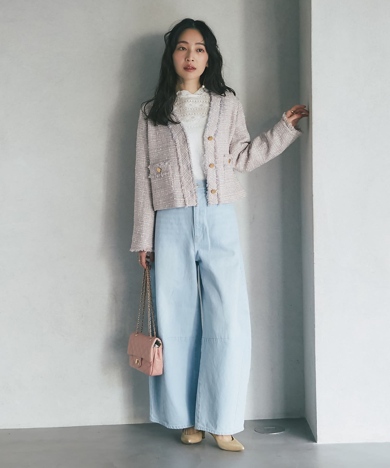 スカートを合わせてフェミニンに、デニムに合わせてカジュアルにも、