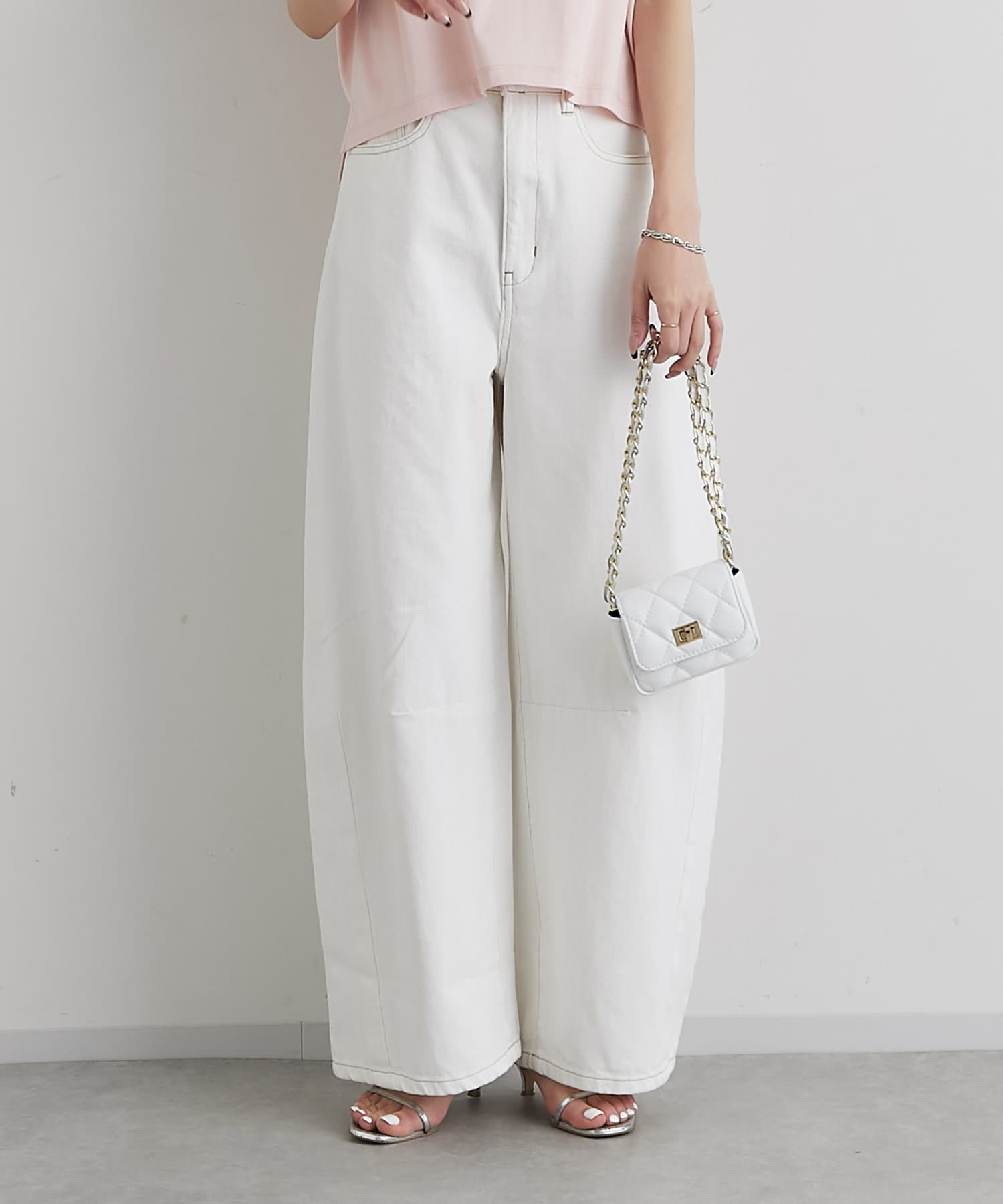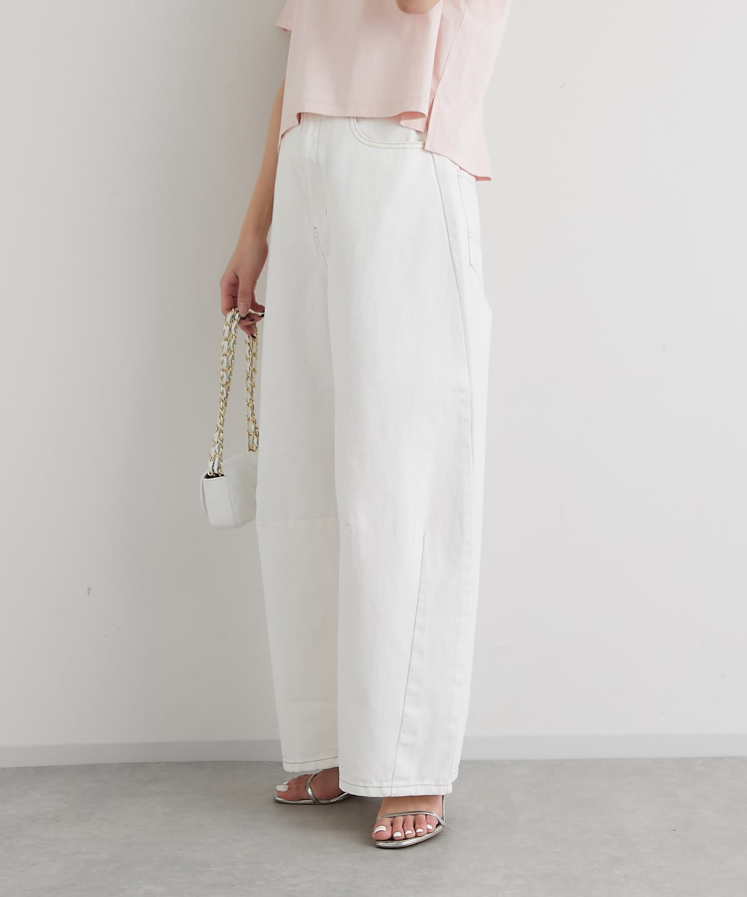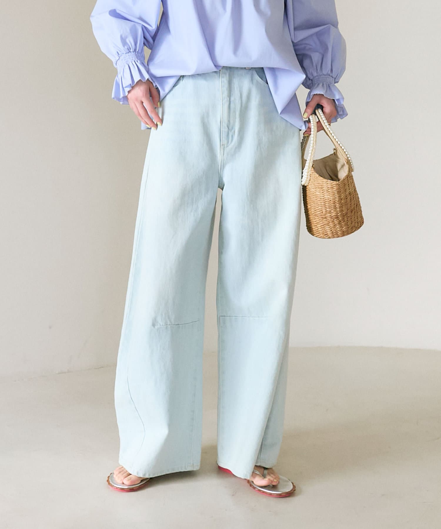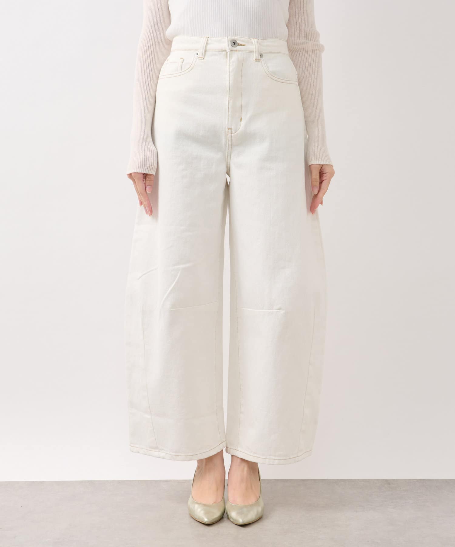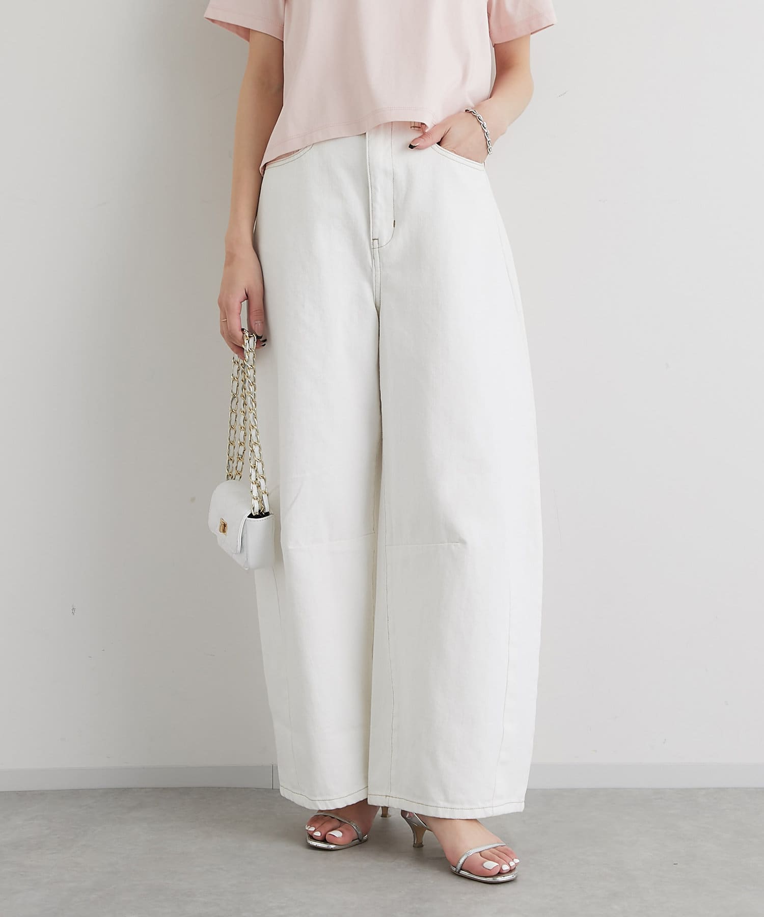 カーブラインが目を惹く、ボリュームデニムパンツ。