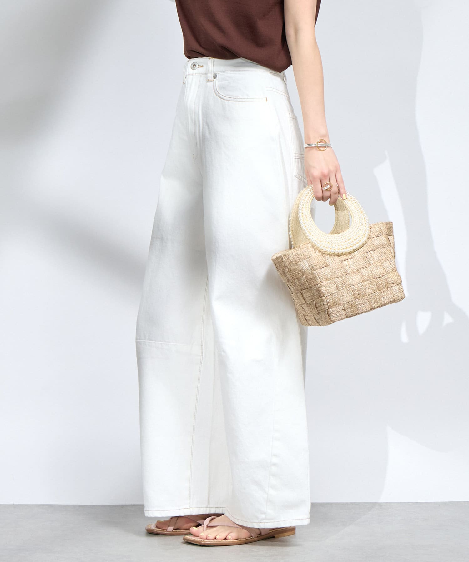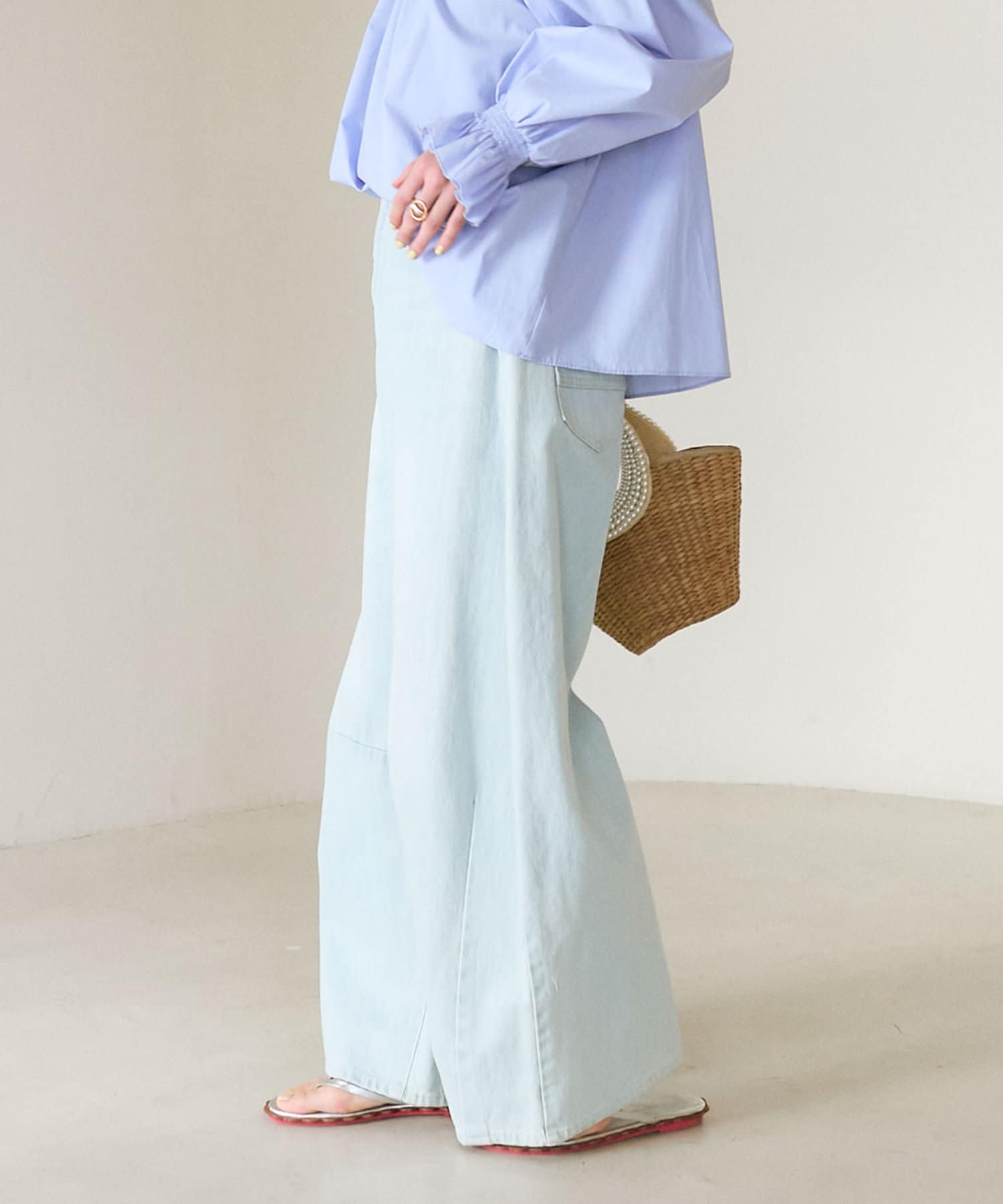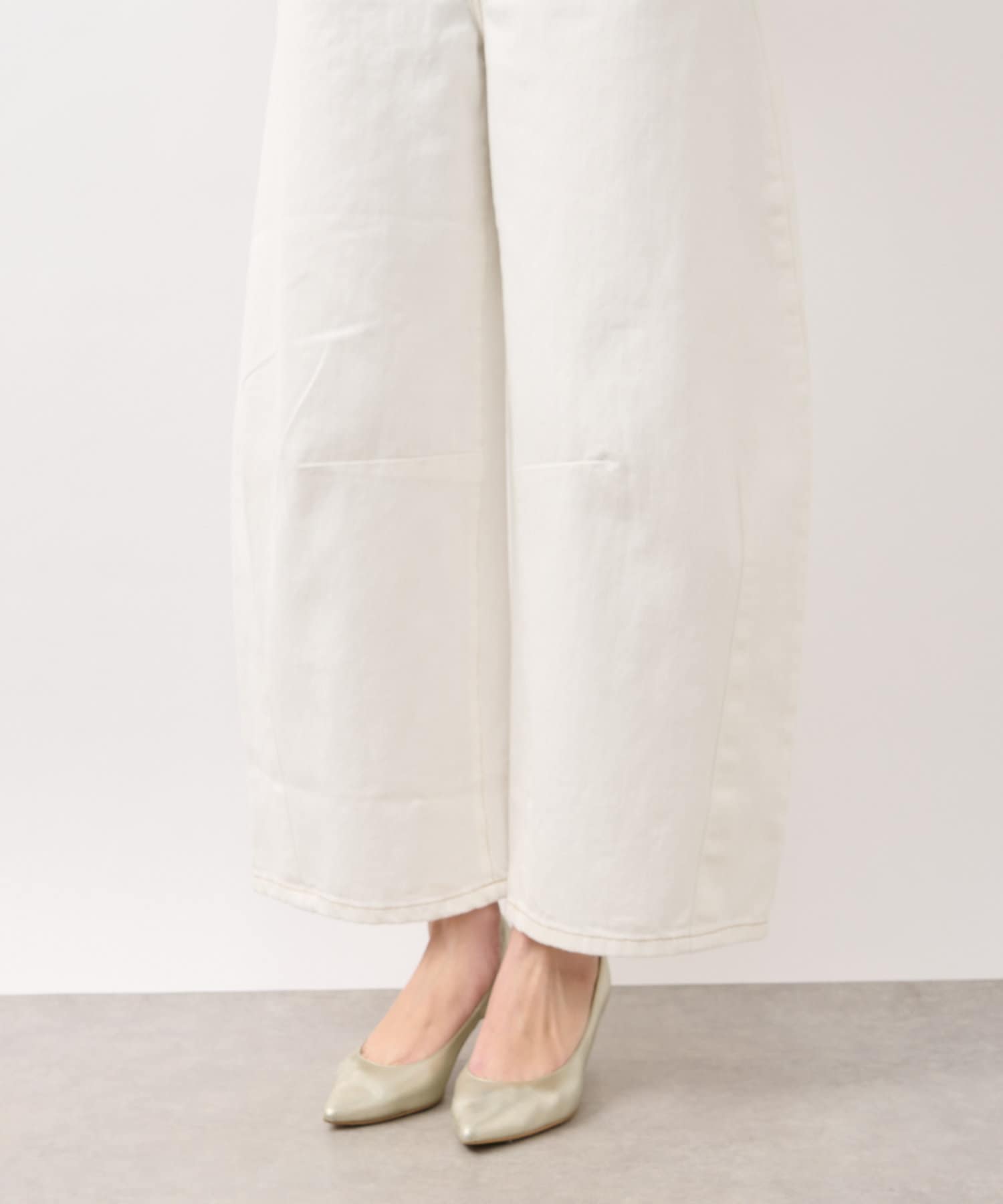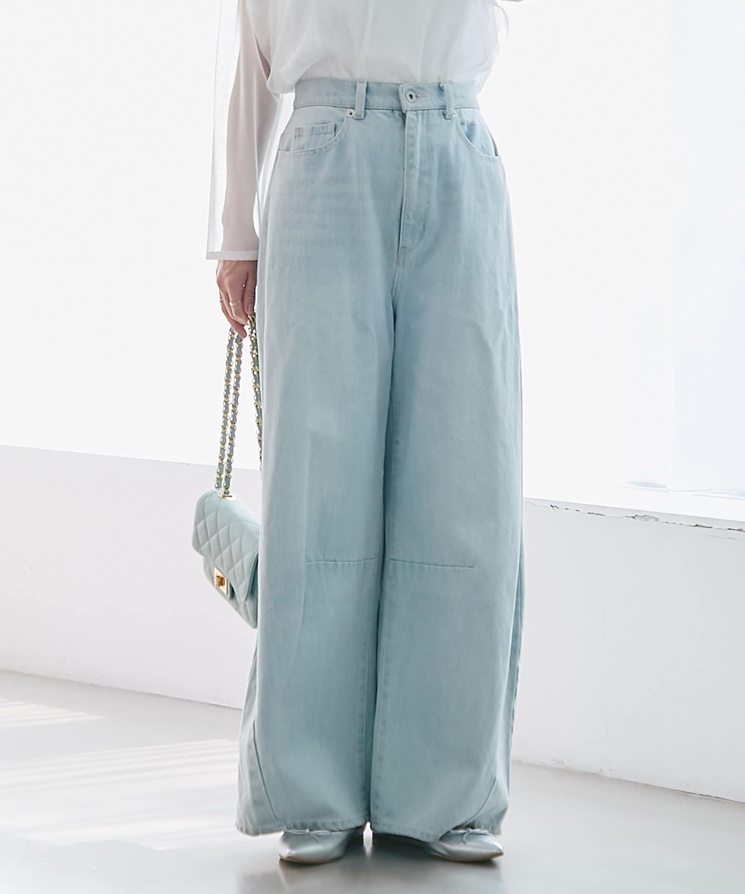 カーブラインが目を惹く、ボリュームデニムパンツ。