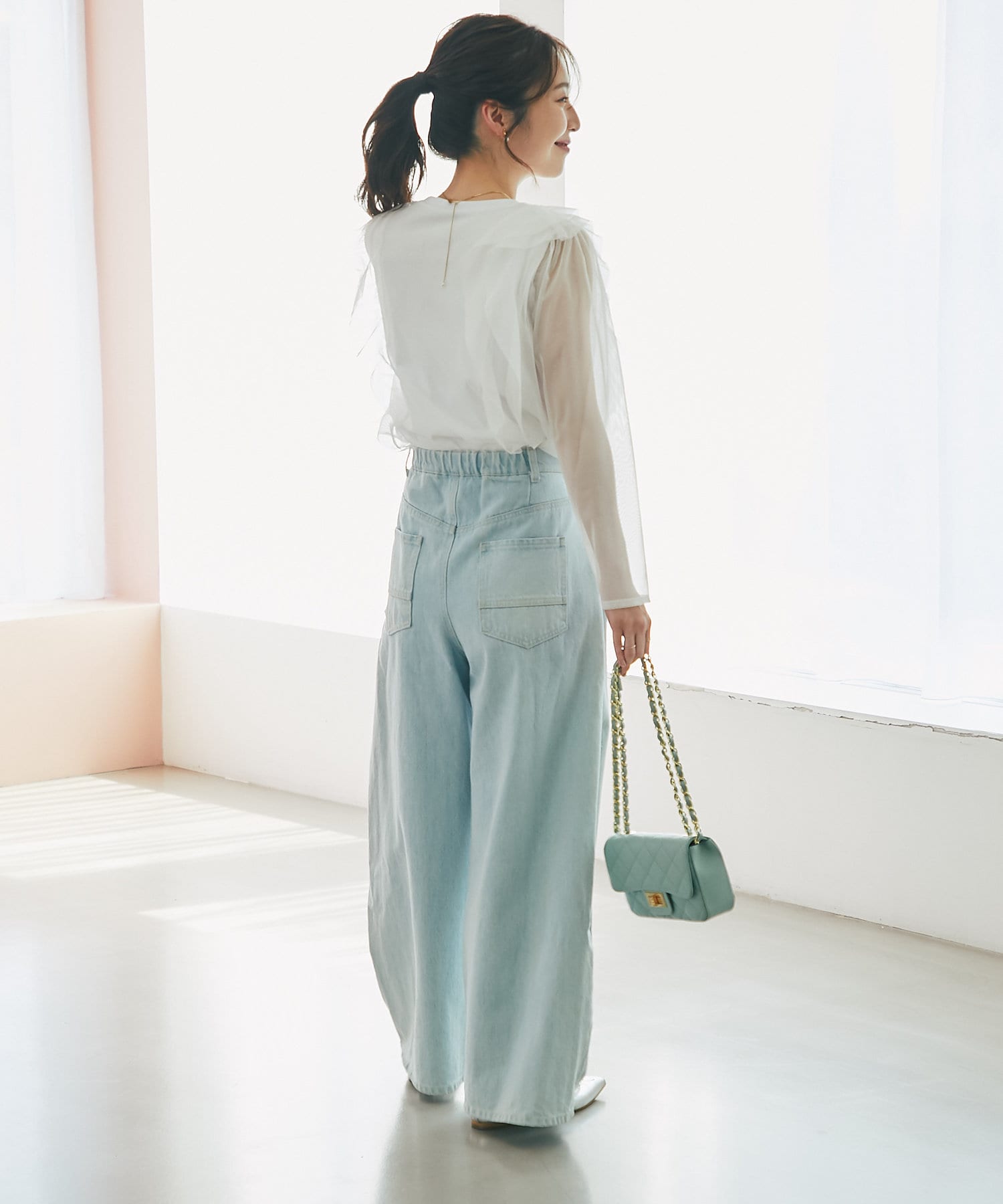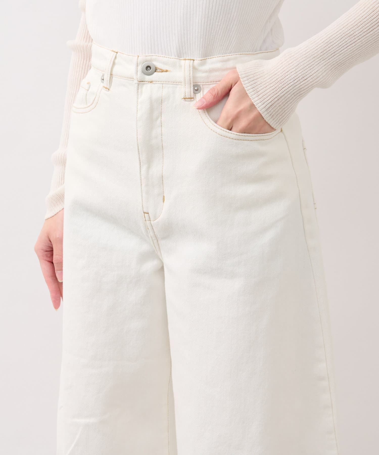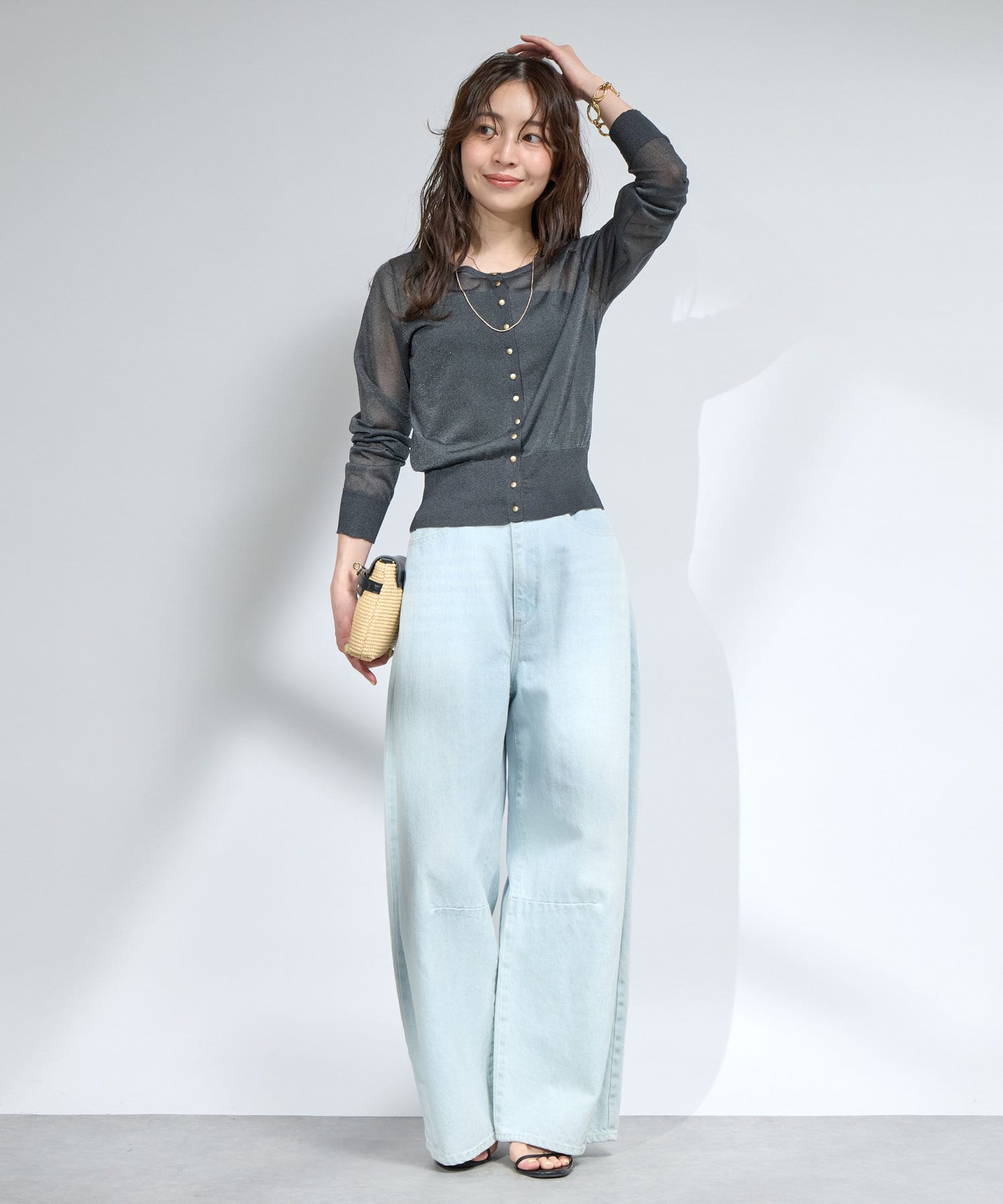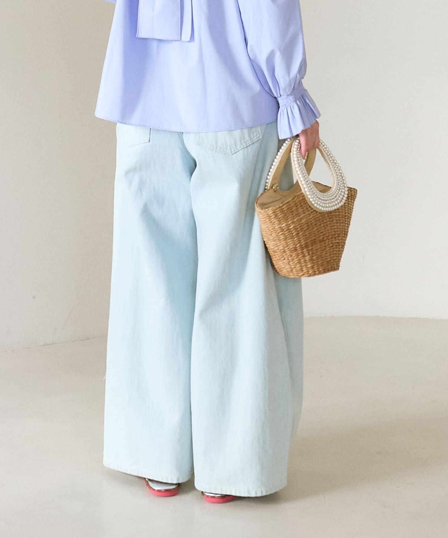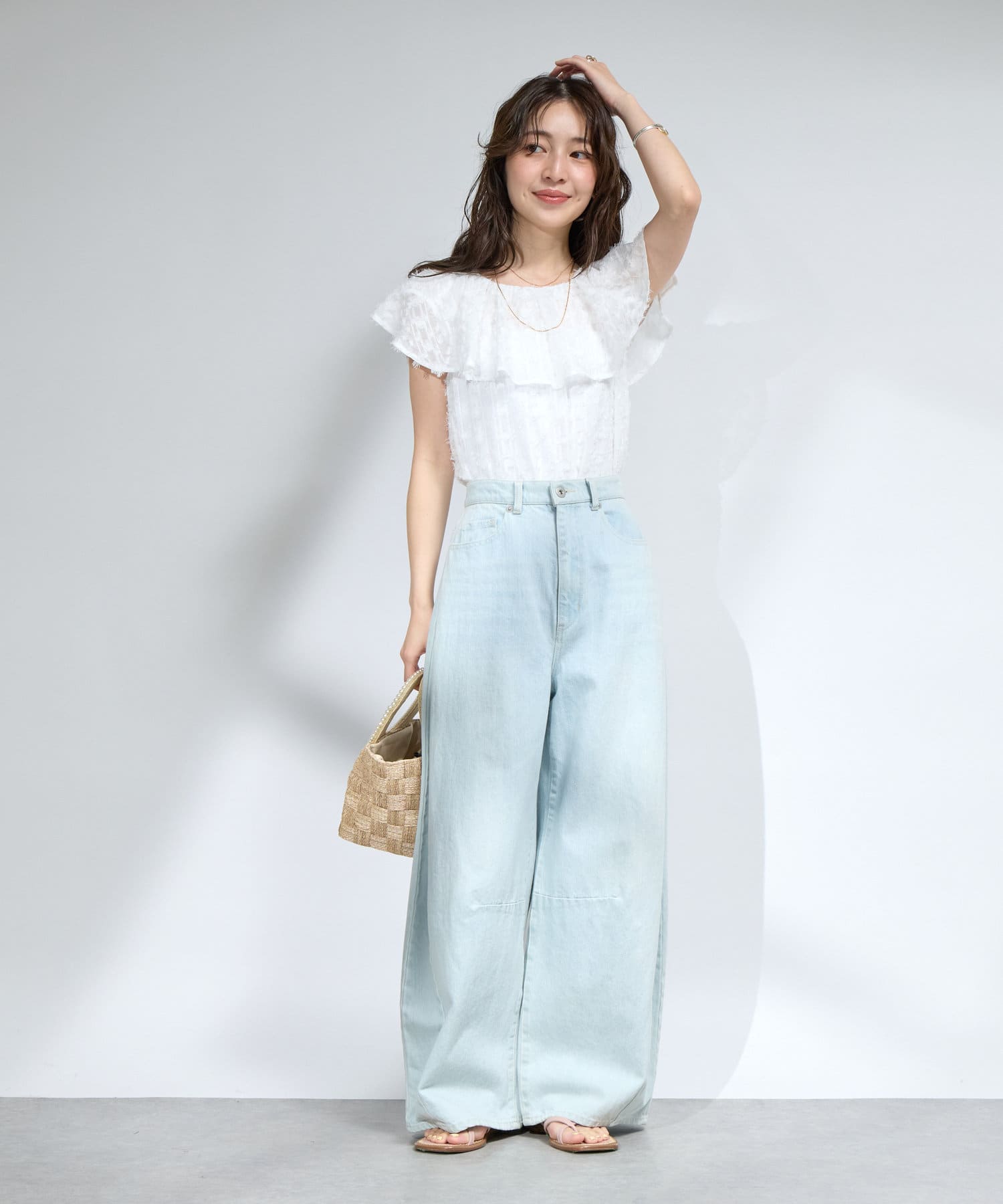 カーブラインが目を惹く、ボリュームデニムパンツ。