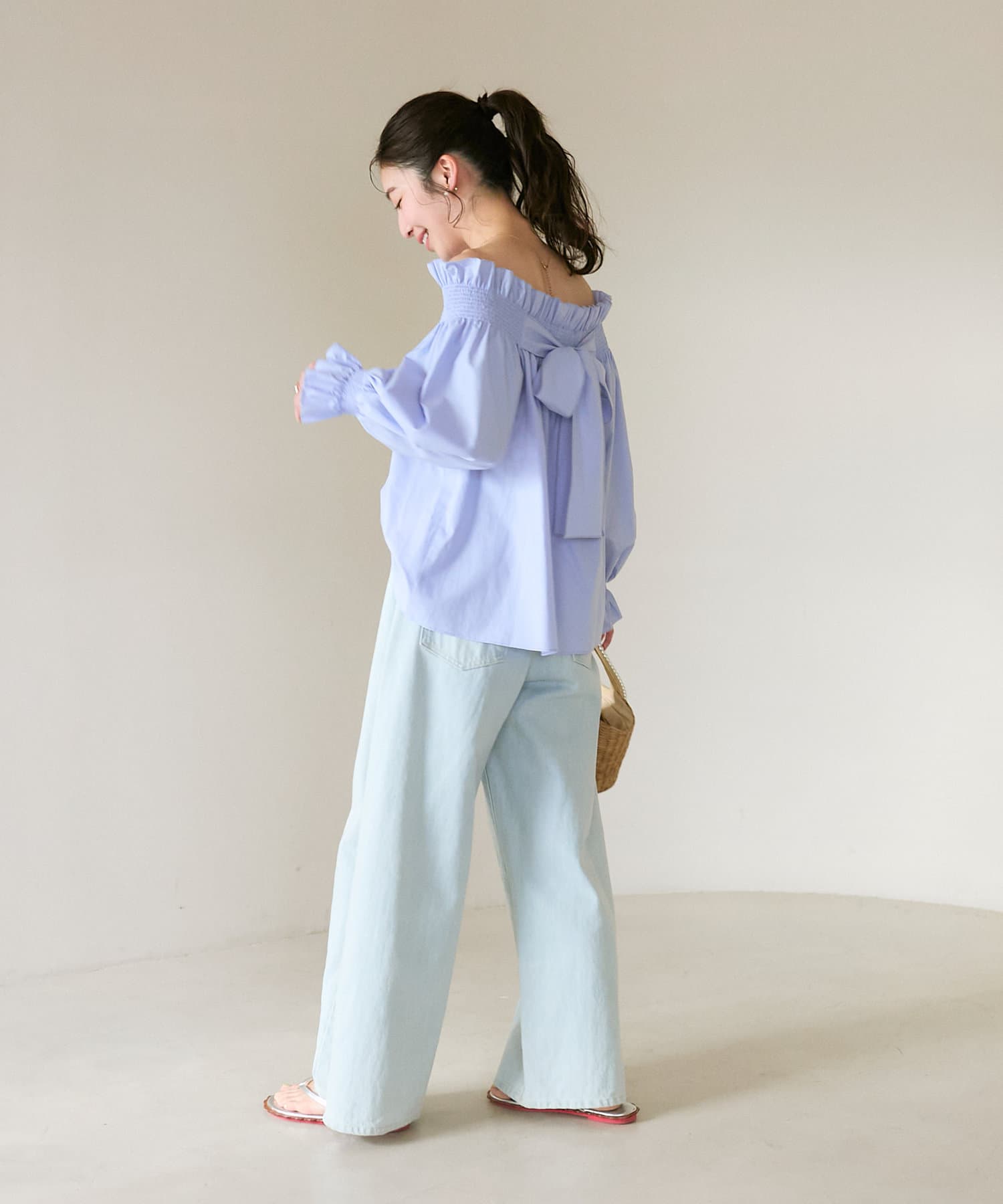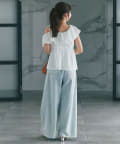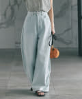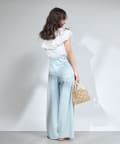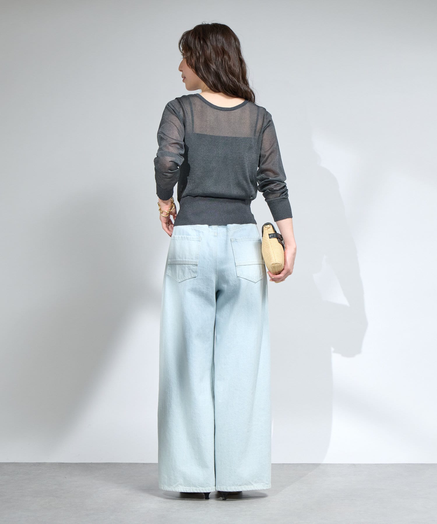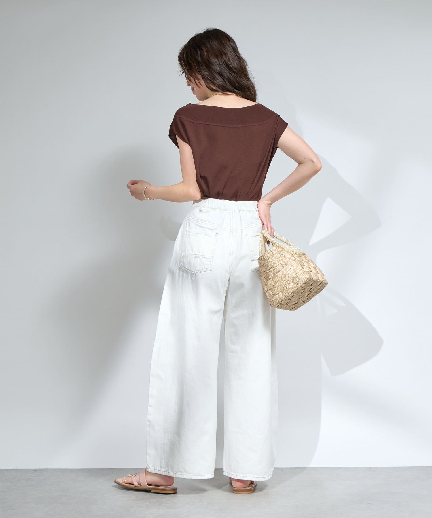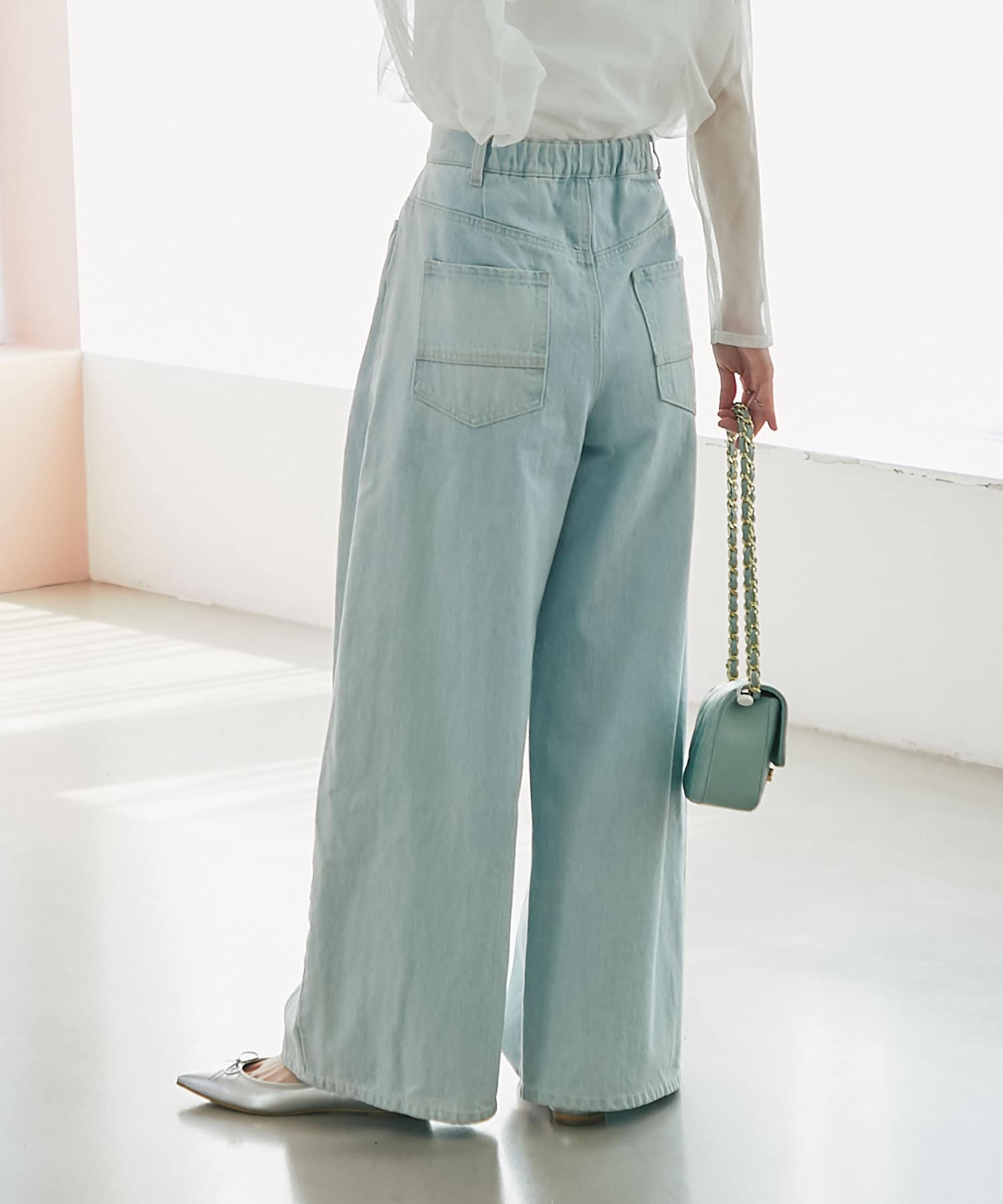 カーブラインが目を惹く、ボリュームデニムパンツ。