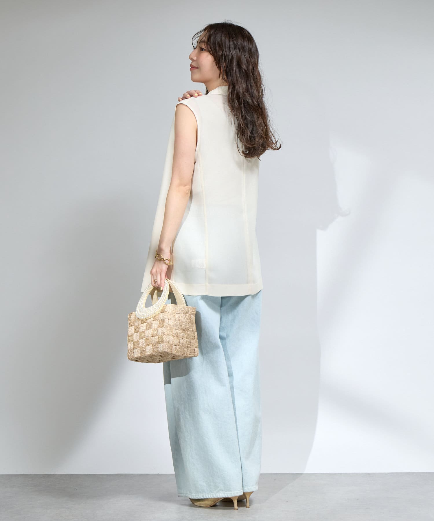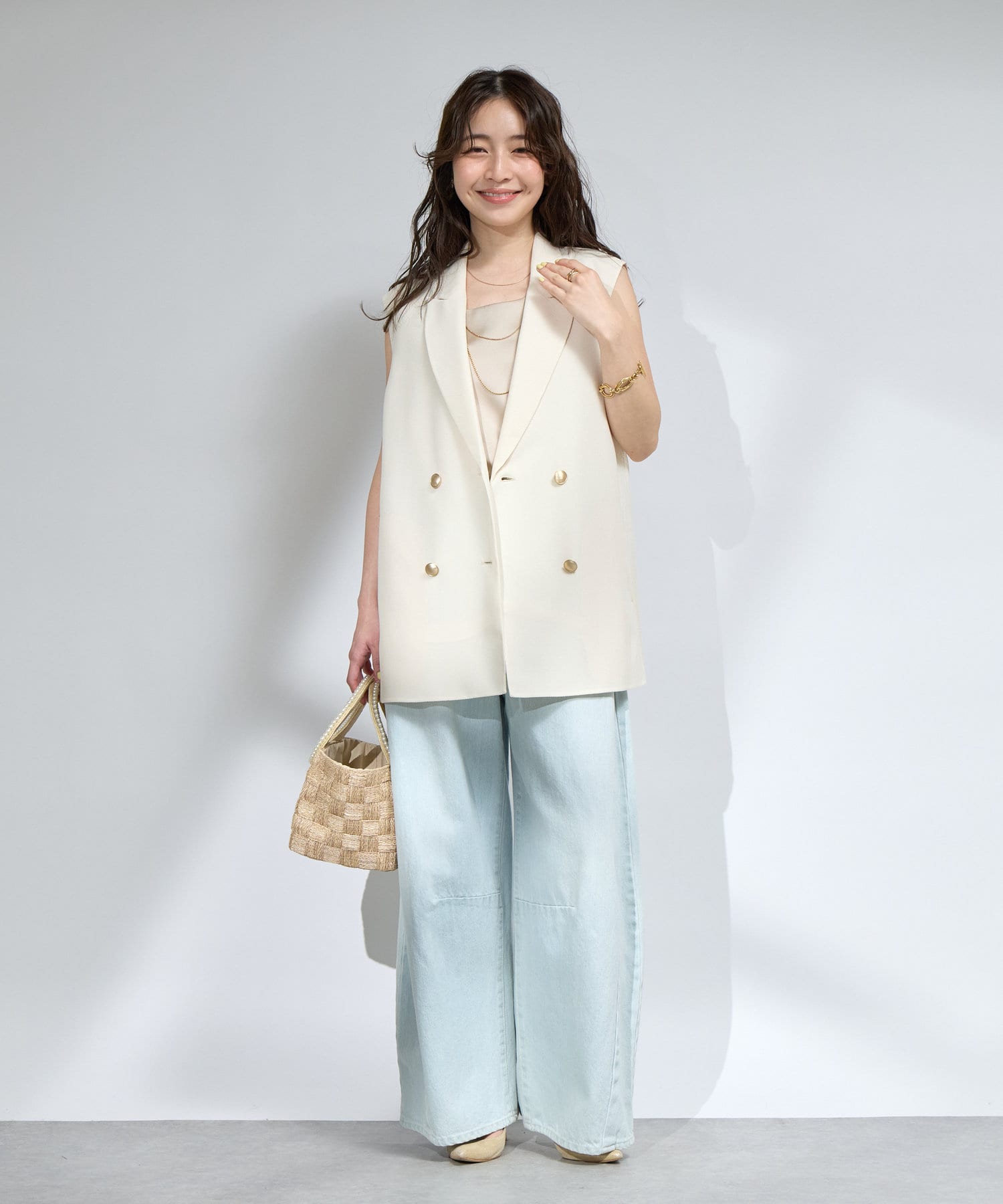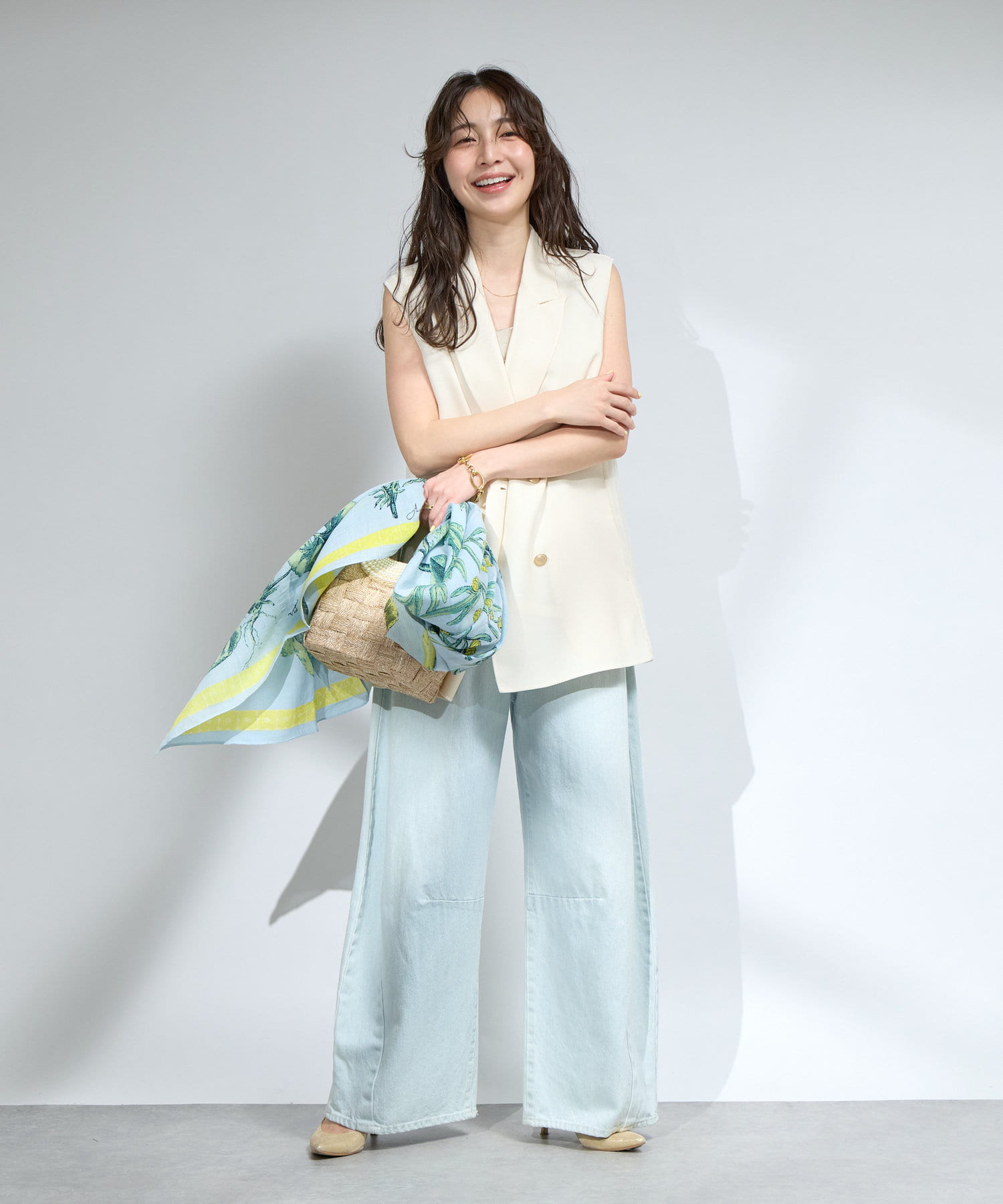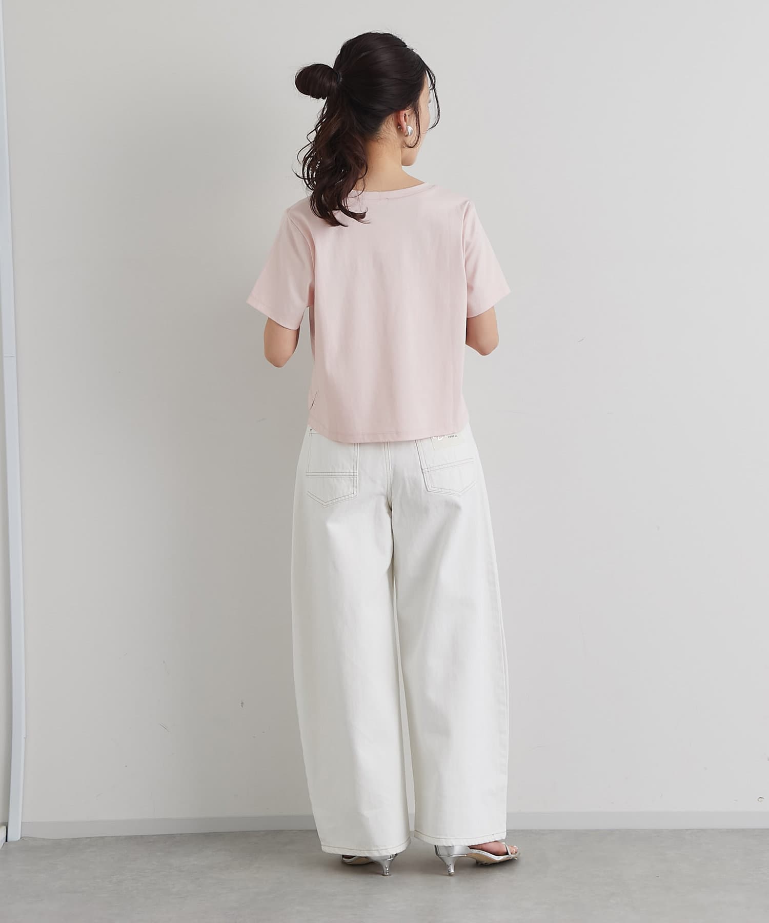 トレンドのクロップド丈トップスに合わせたスタイリングがおすすめです。
