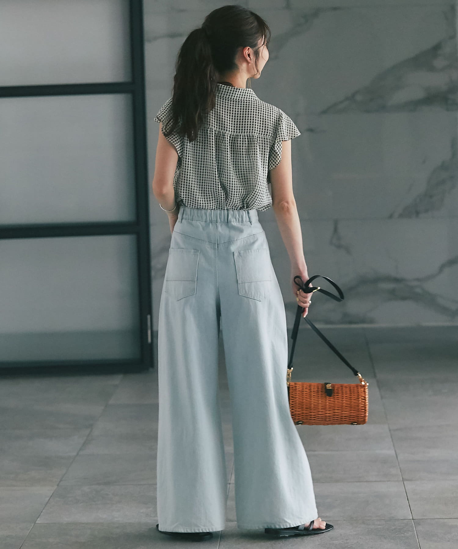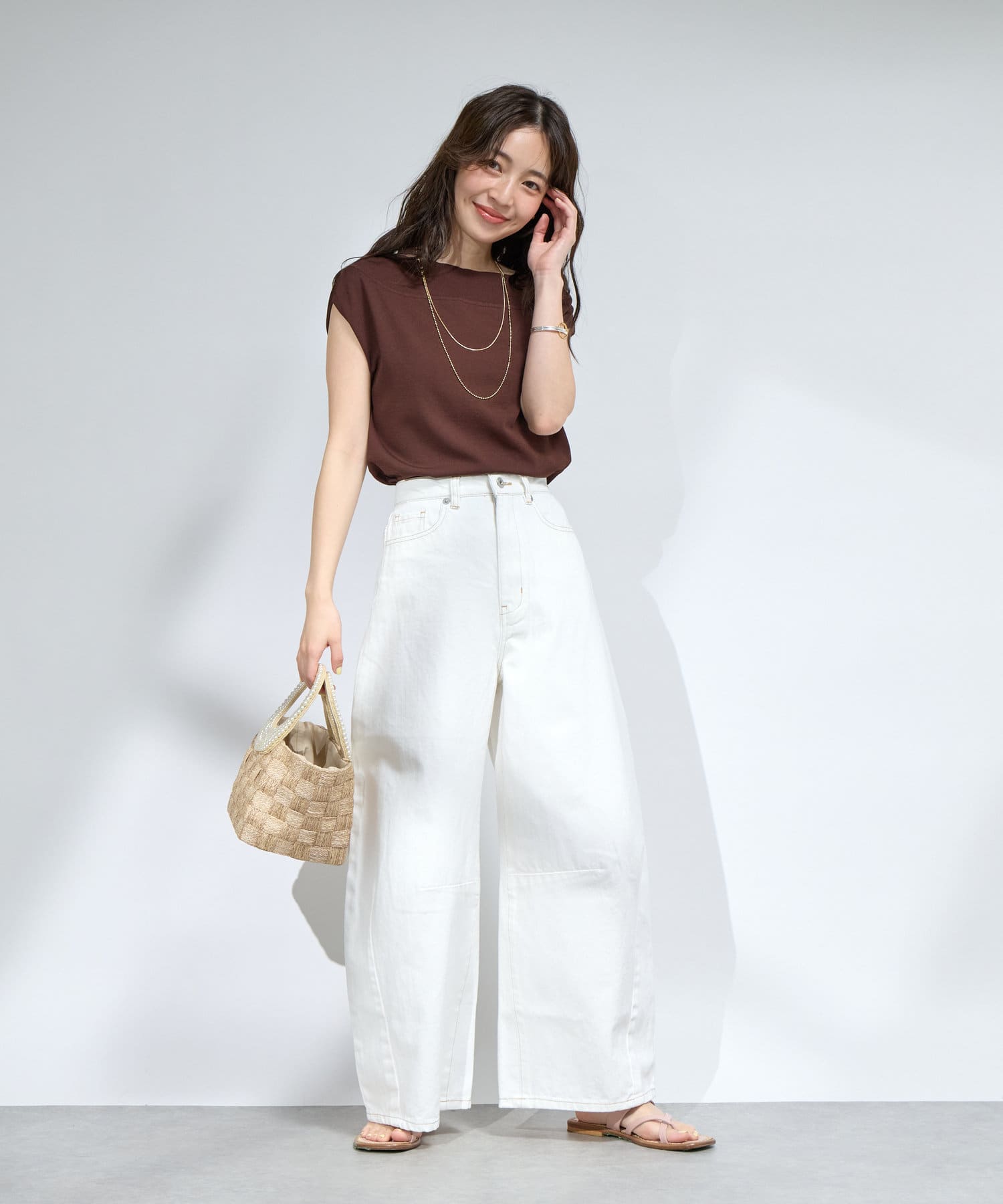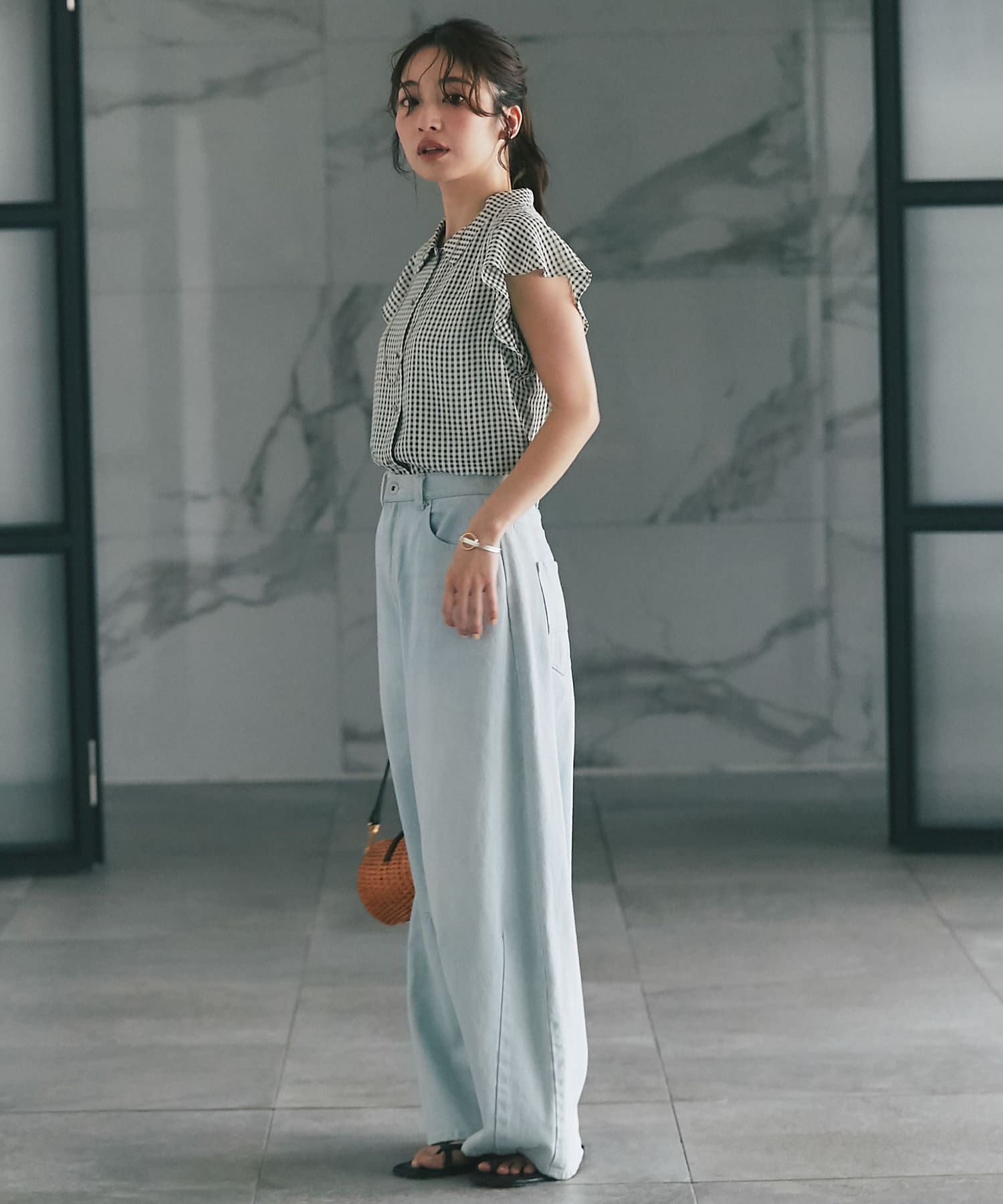 クロップド丈のトップスを合わせるとスタイルアップ効果も抜群です。