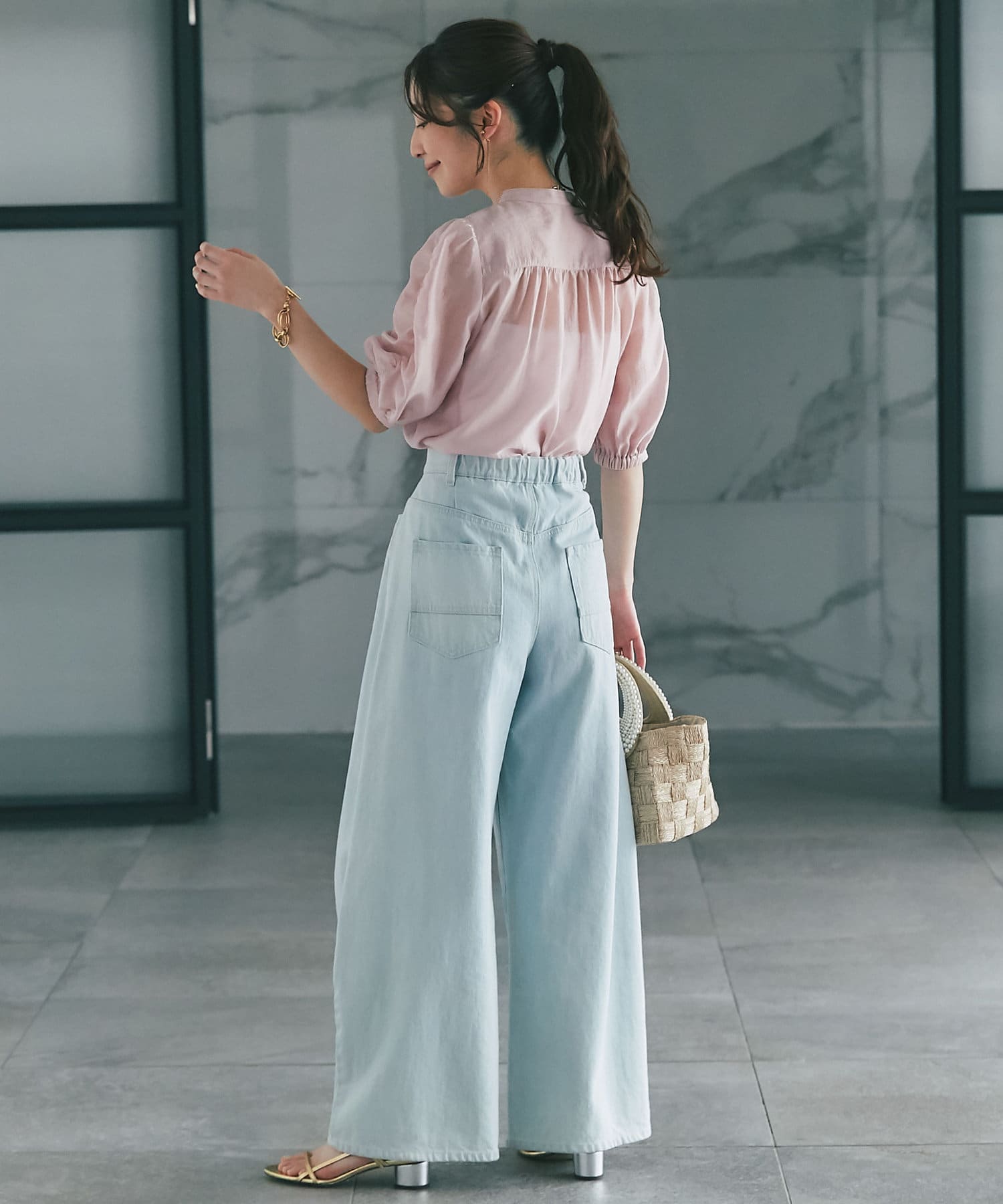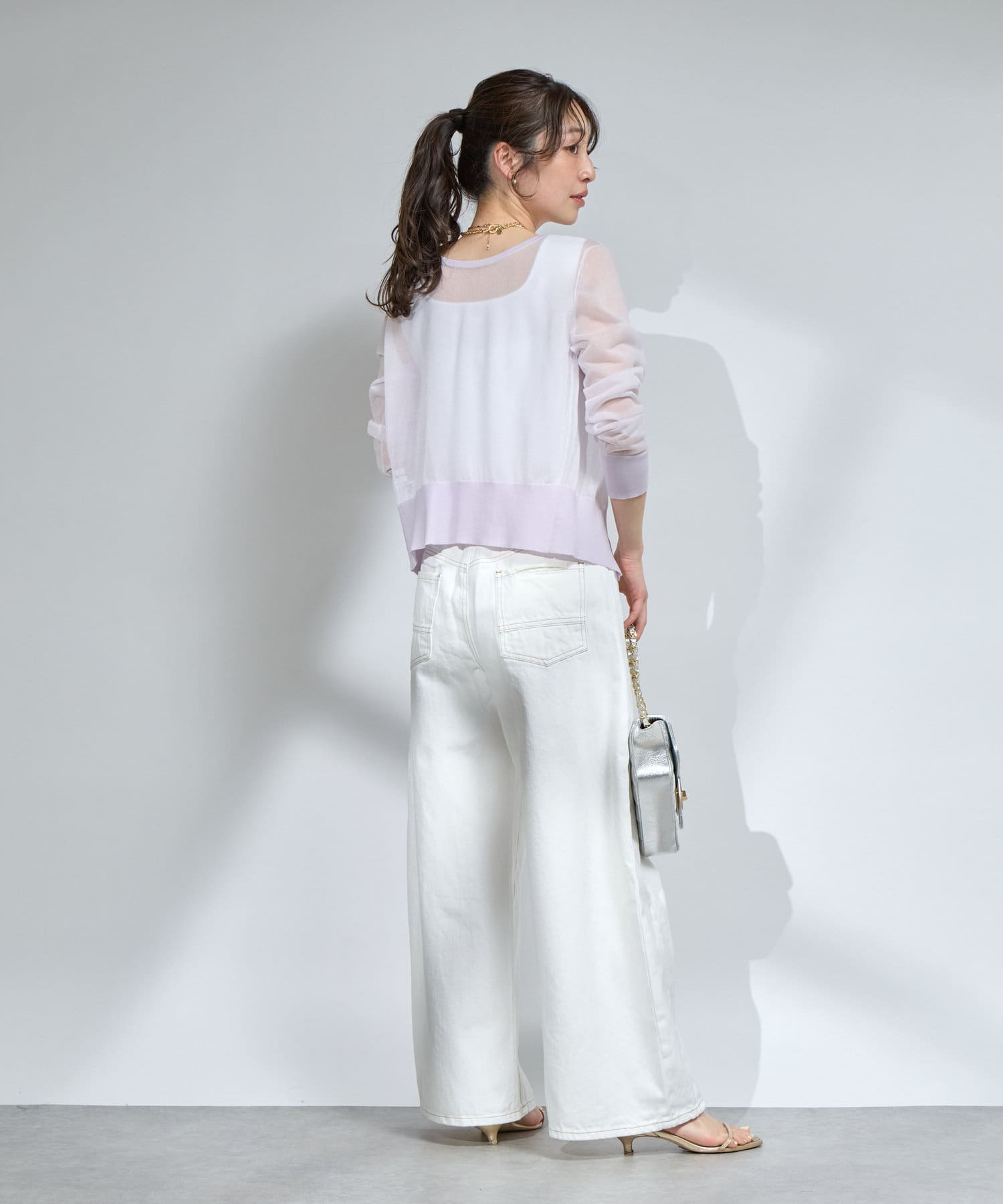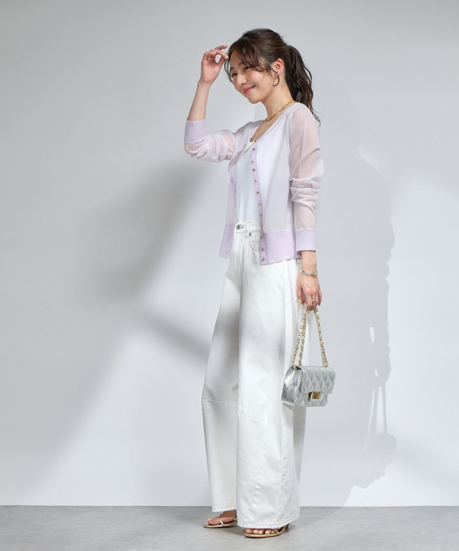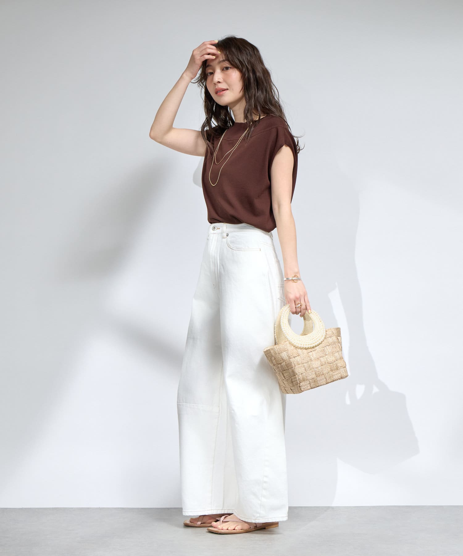 クロップド丈のトップスを合わせるとスタイルアップ効果も抜群です。