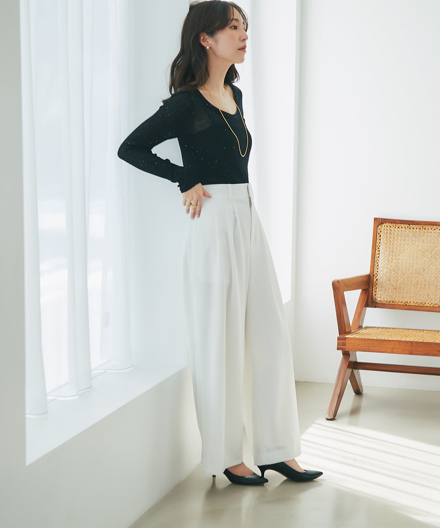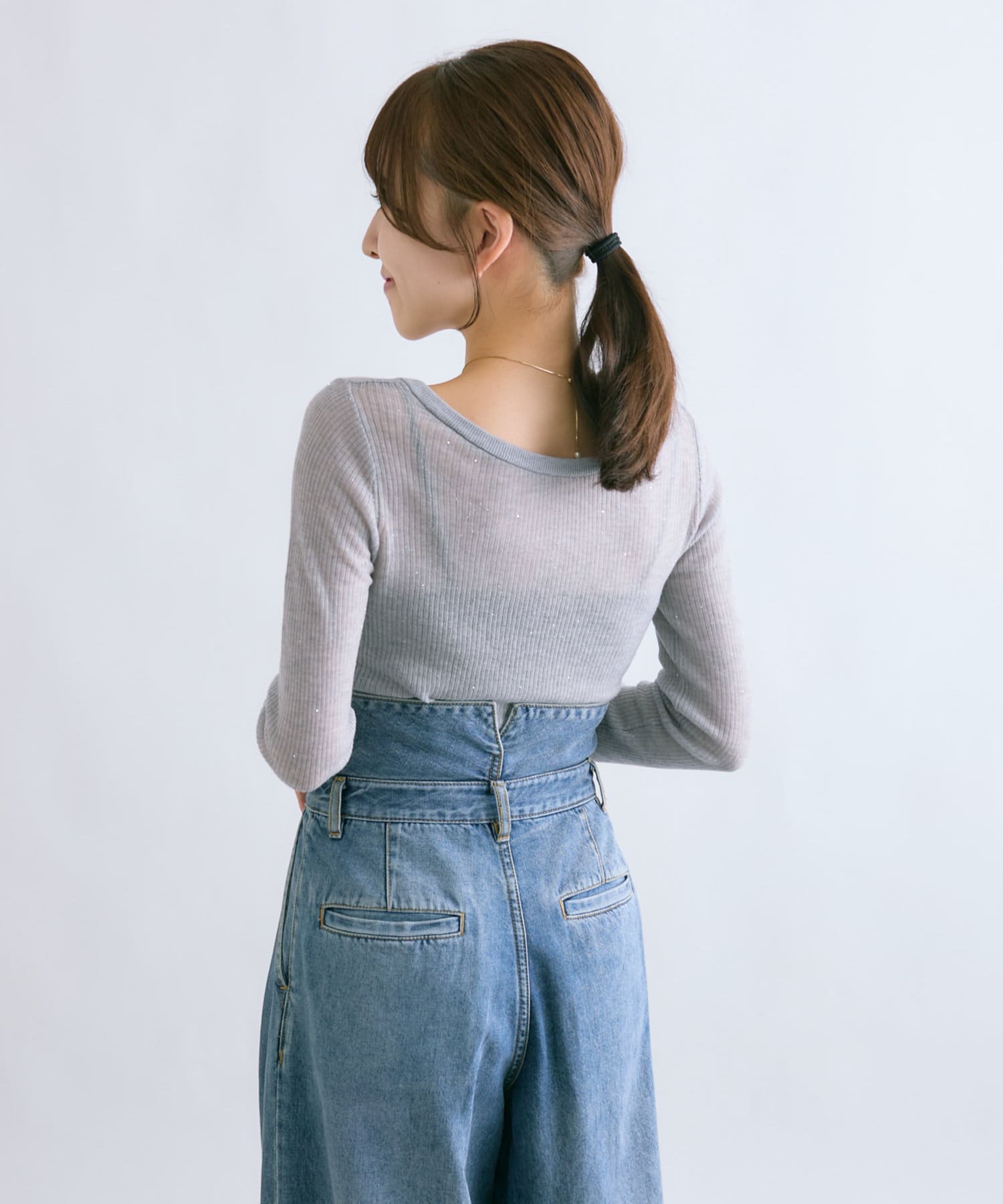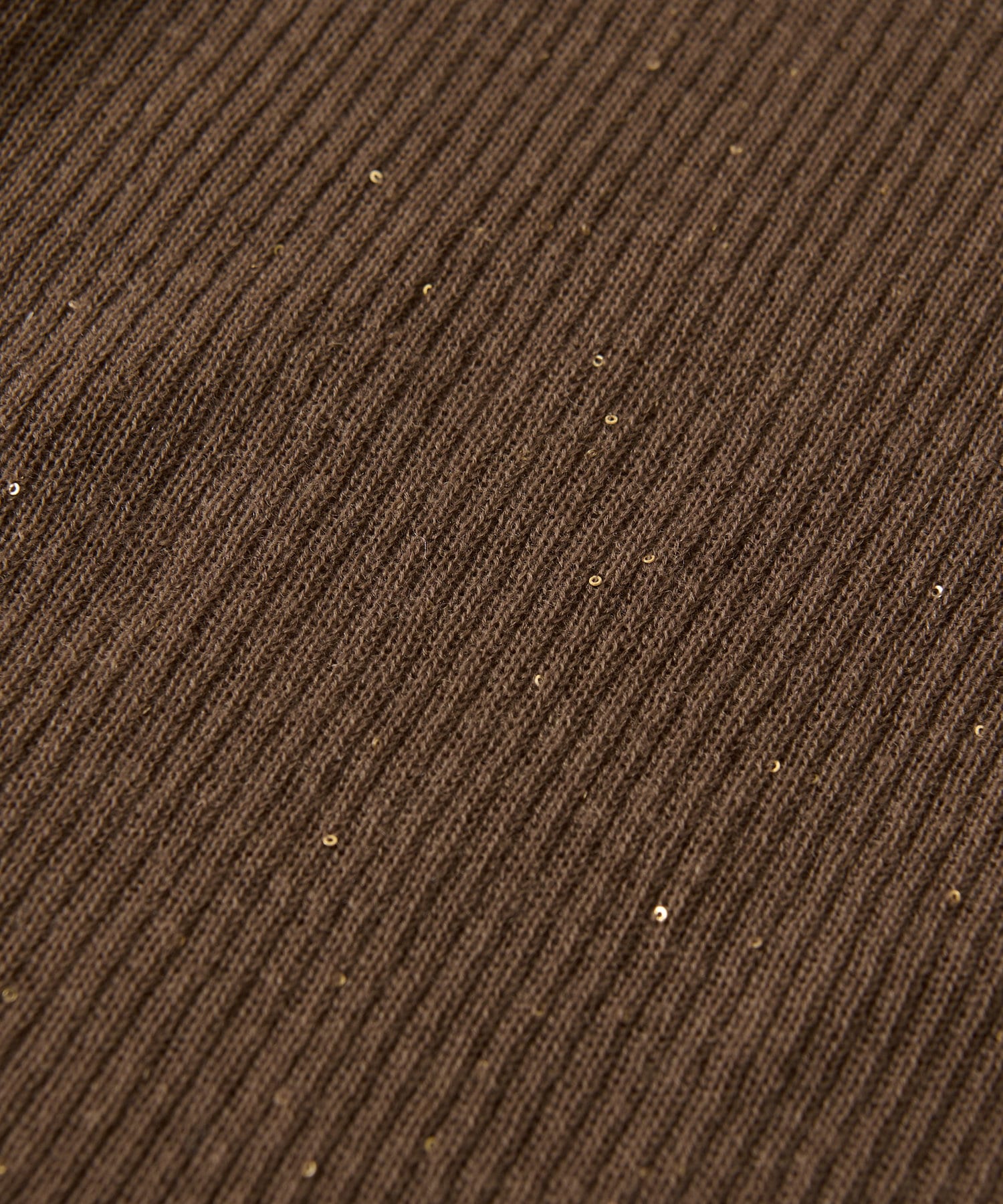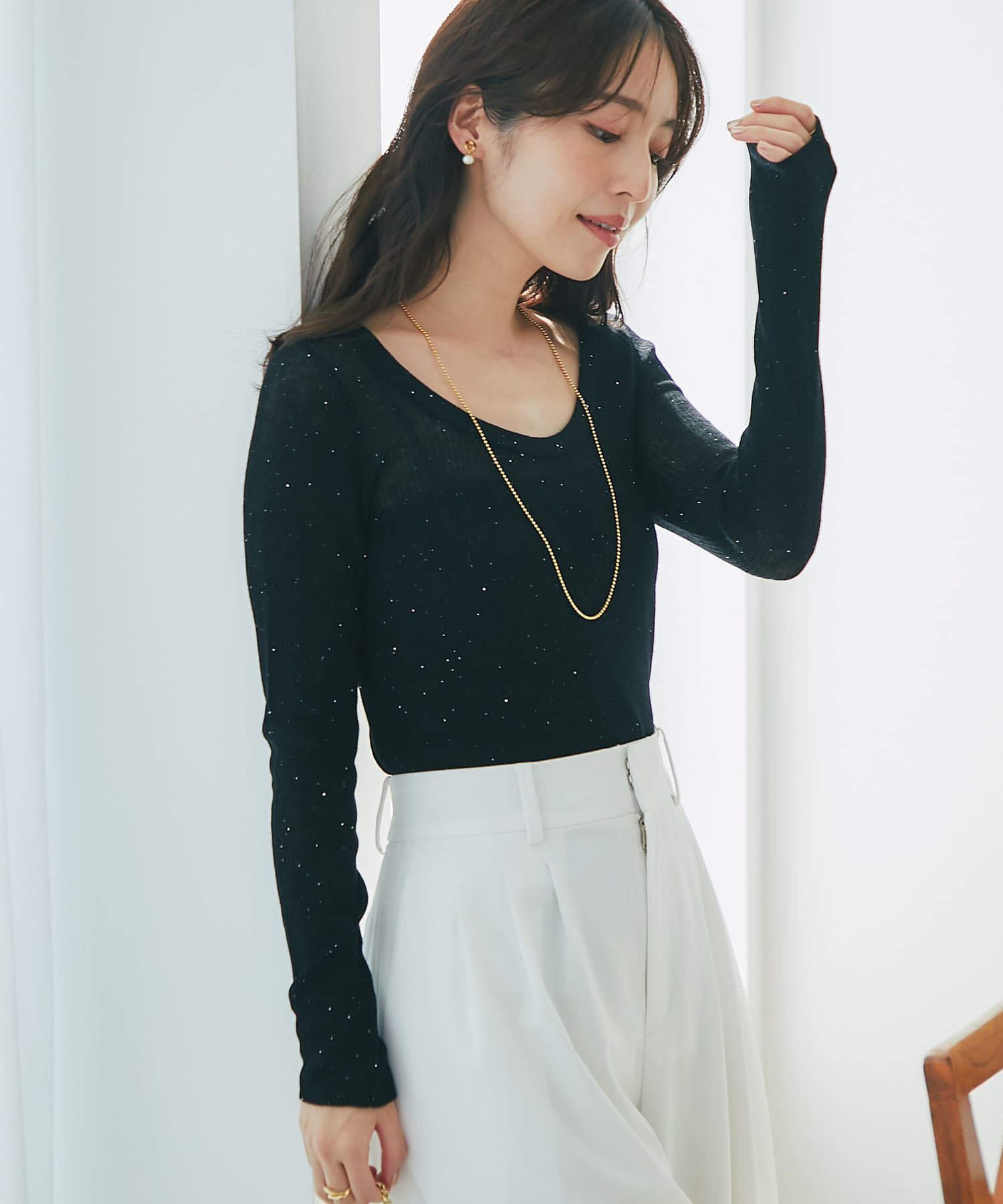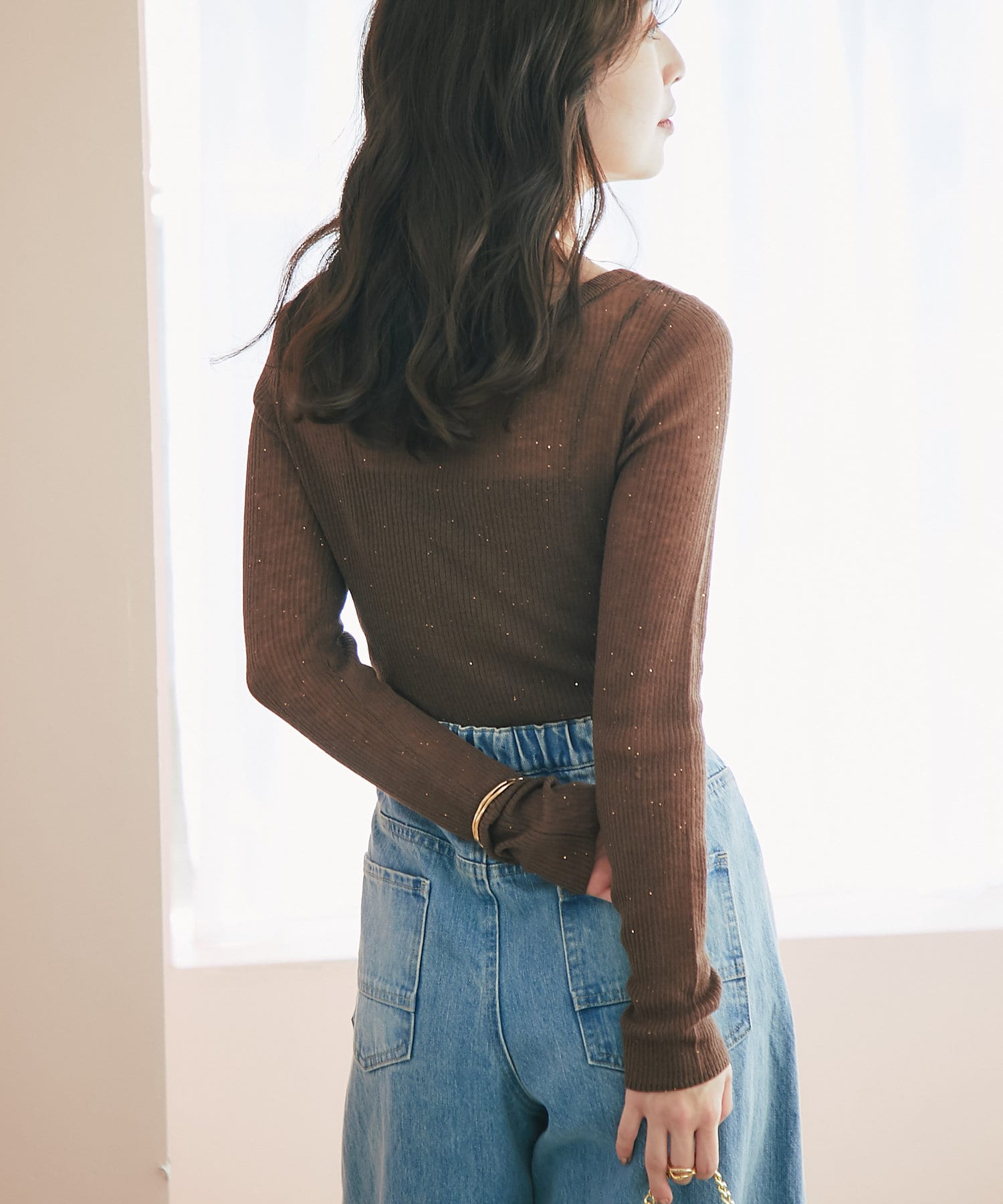 トレンドのシアー素材でさりげなく光る小さなスパンコールが品の良いニットプルオーバー。
