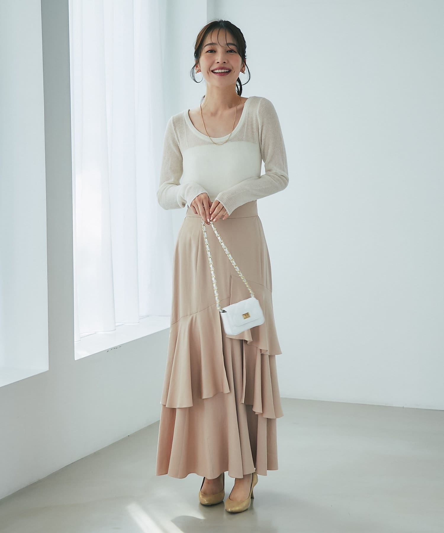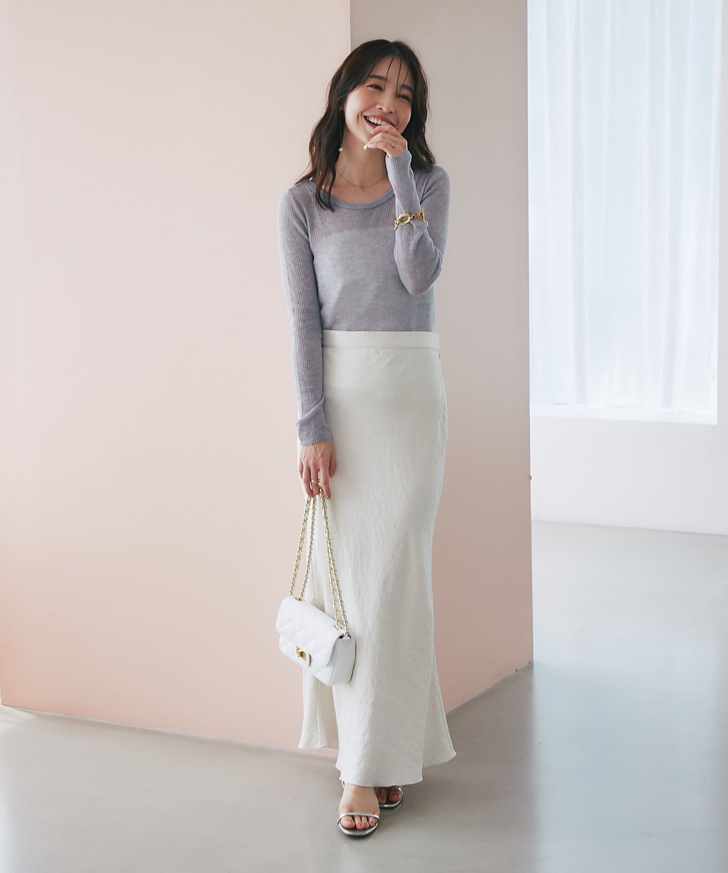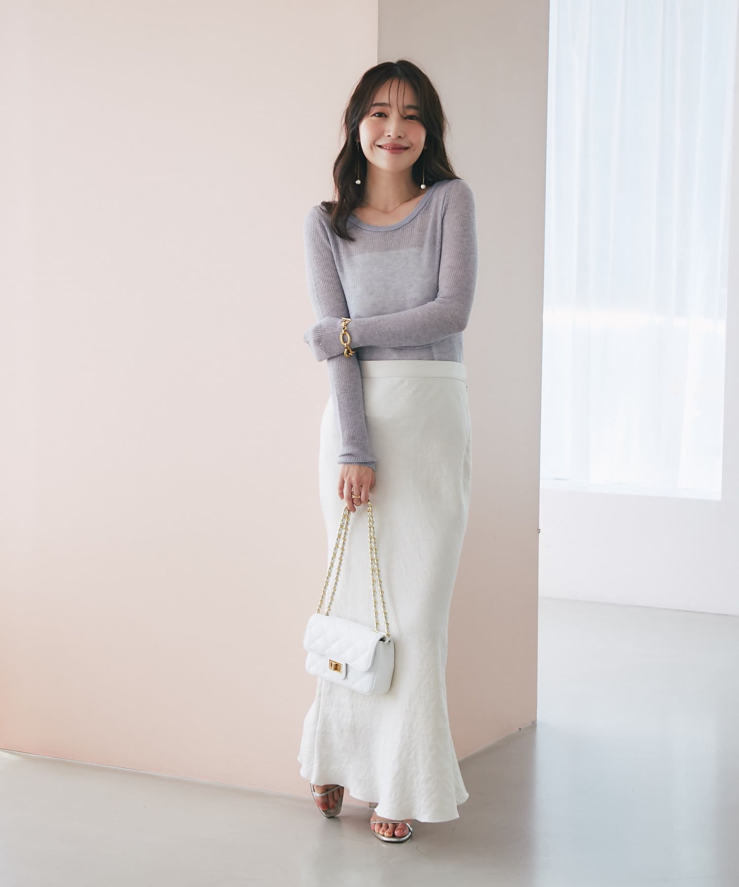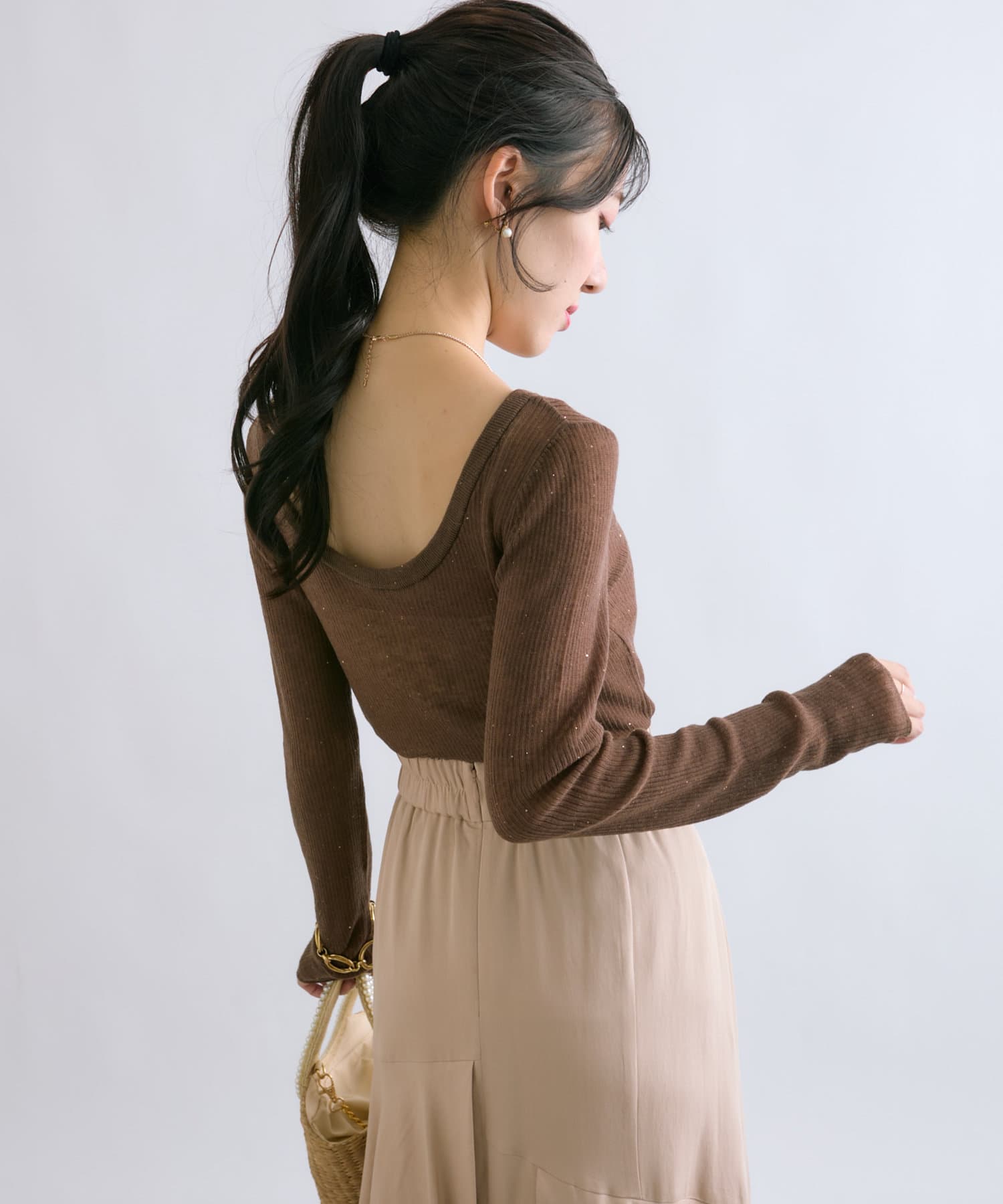 トレンドのシアー素材でさりげなく光る小さなスパンコールが品の良いニットプルオーバー。