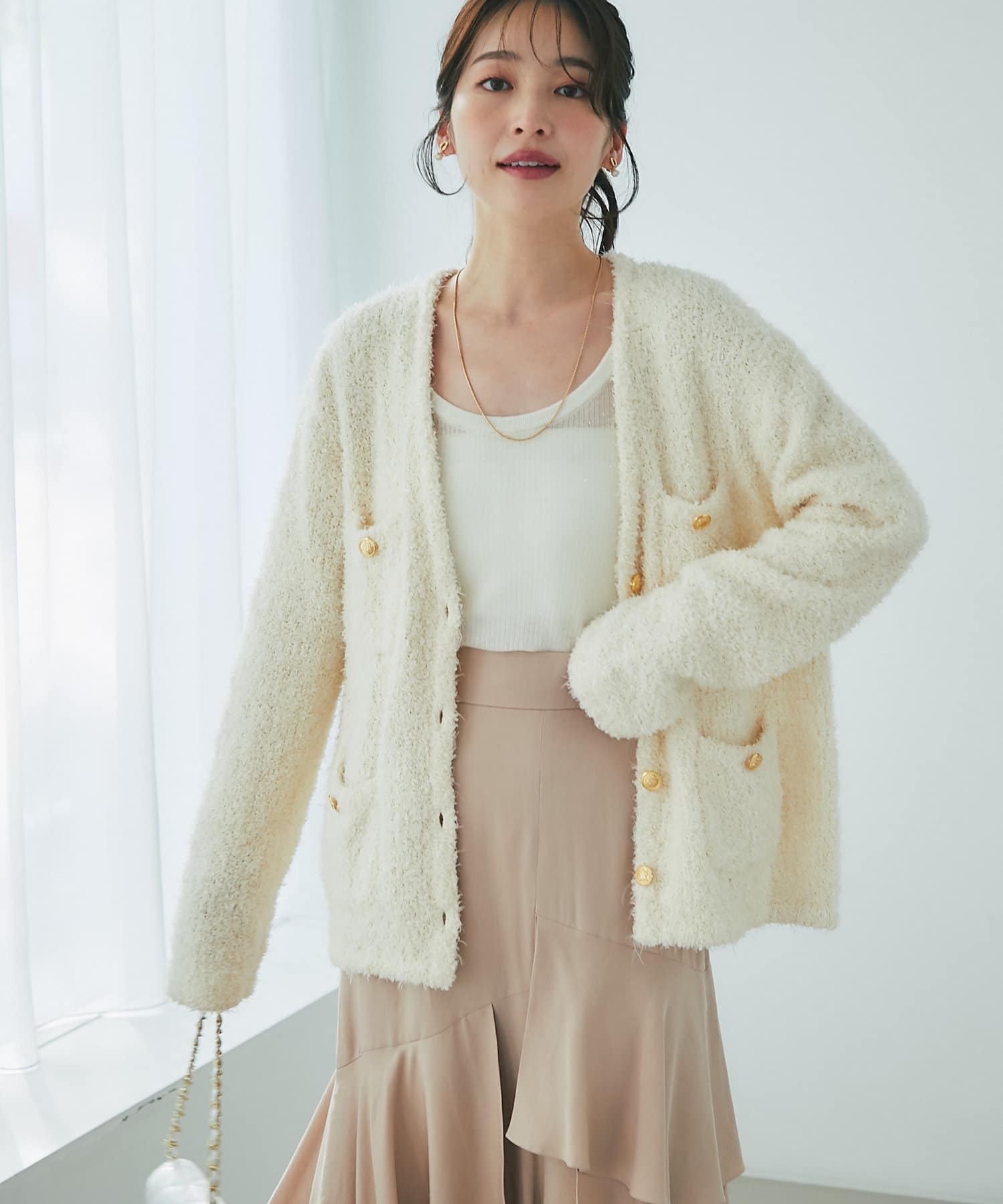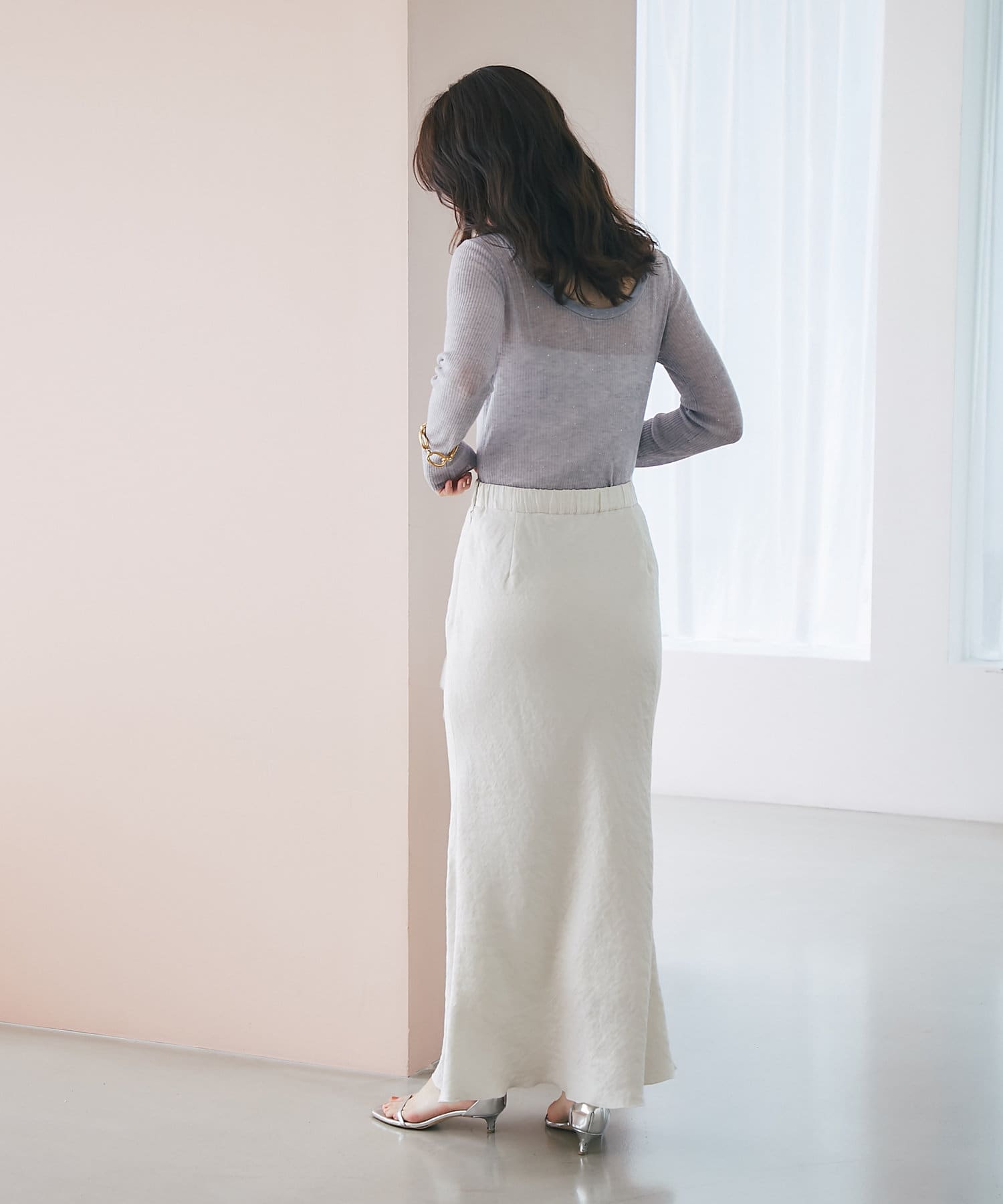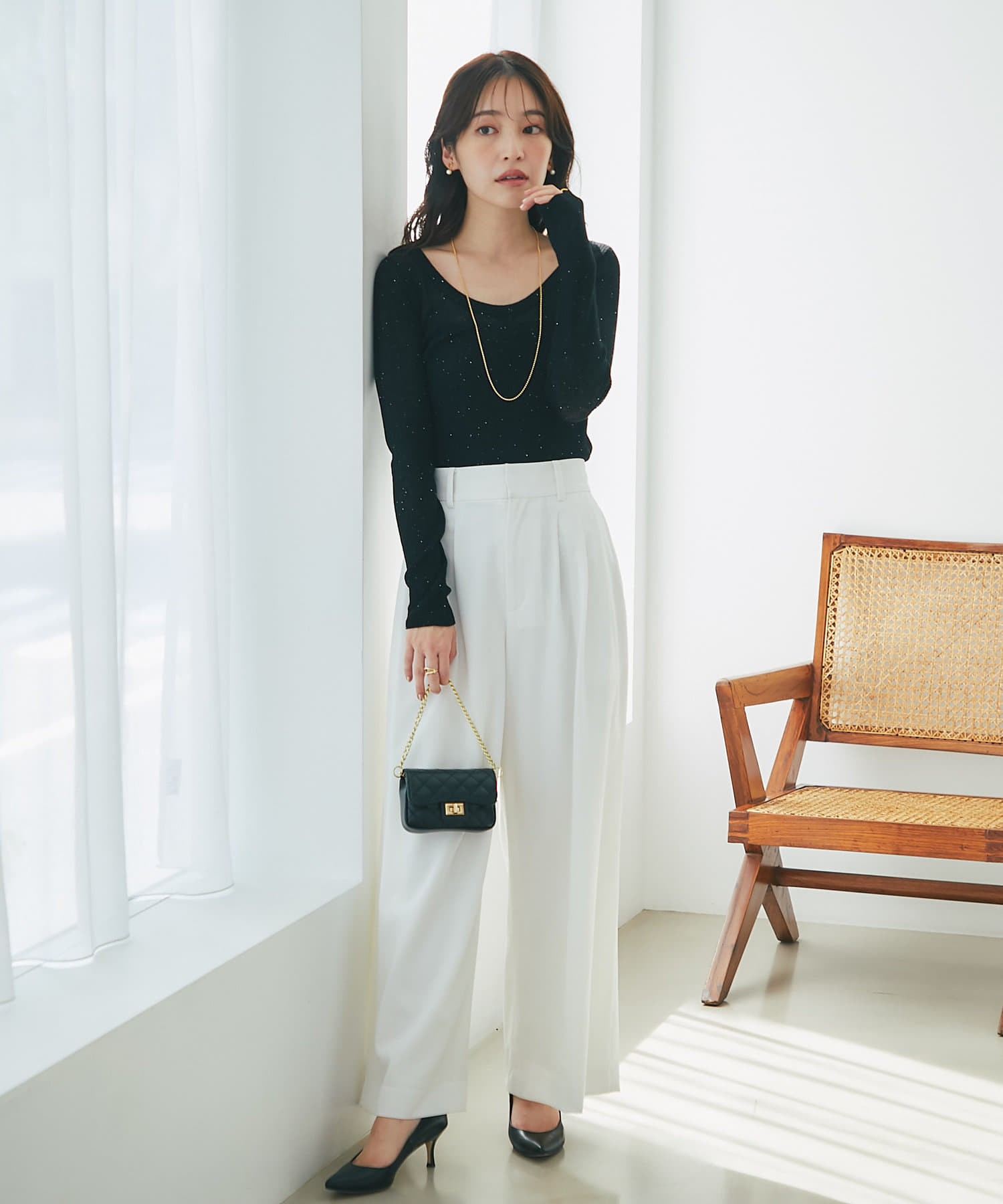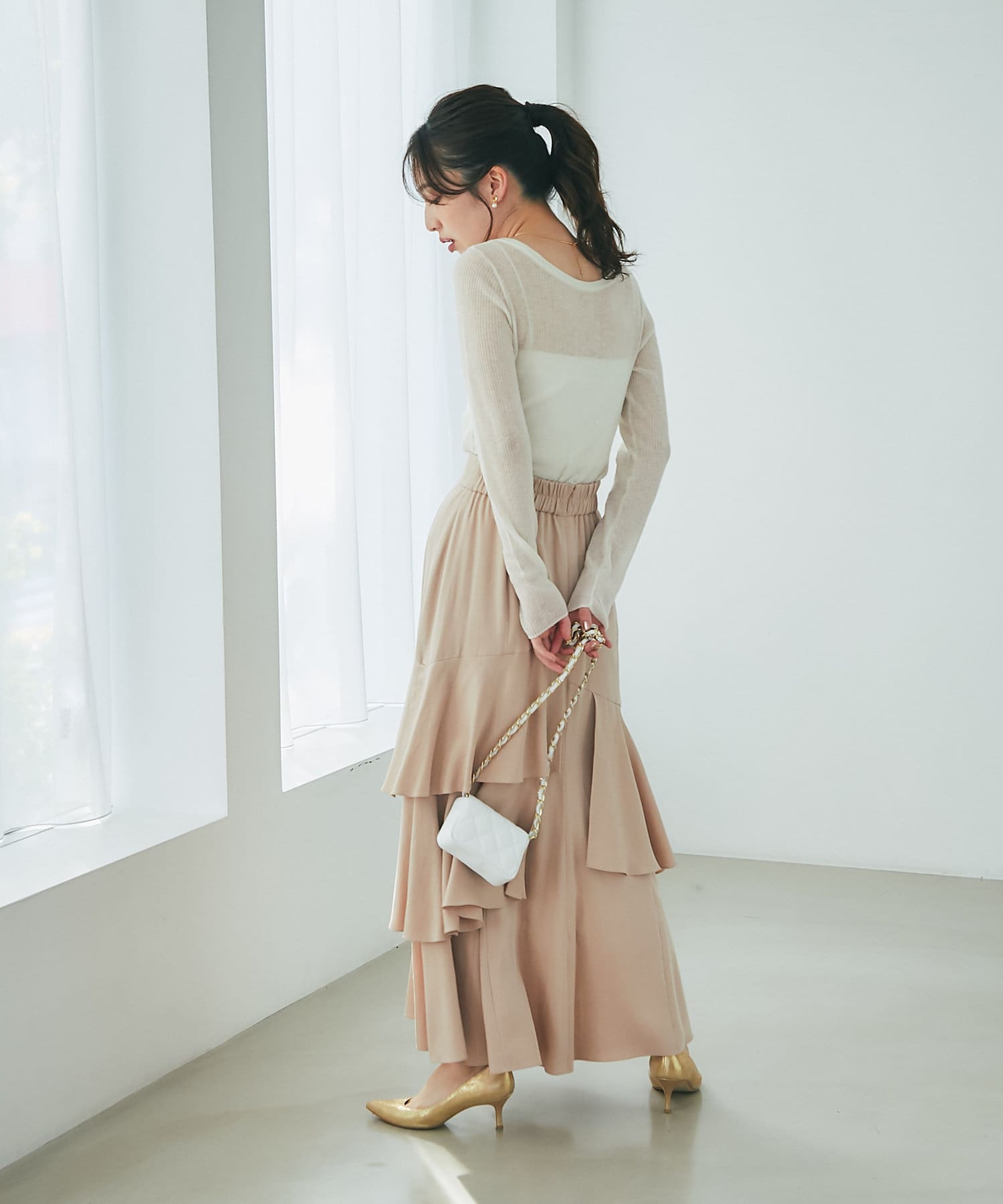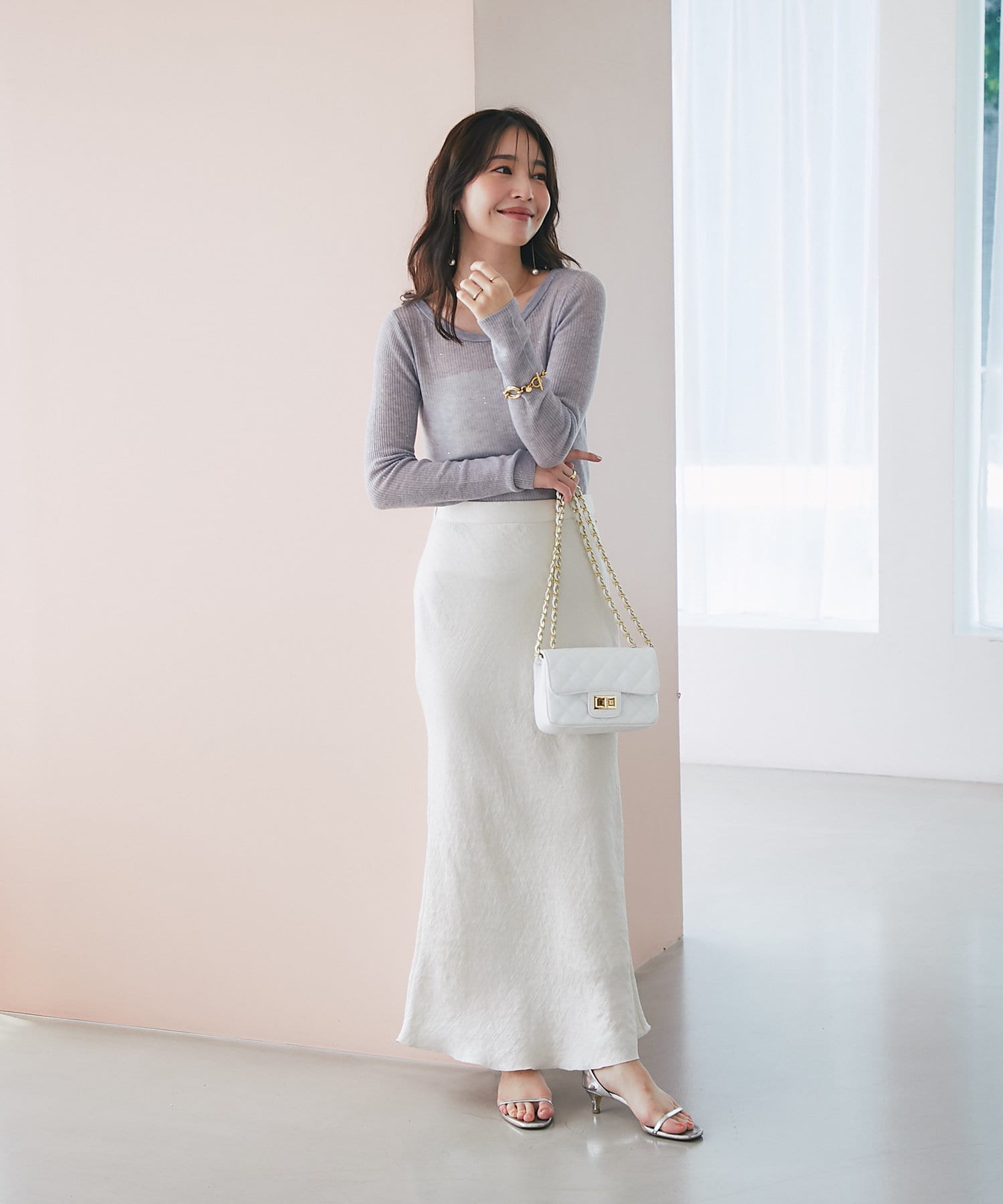 トレンドのシアー素材でさりげなく光る小さなスパンコールが品の良いニットプルオーバー。