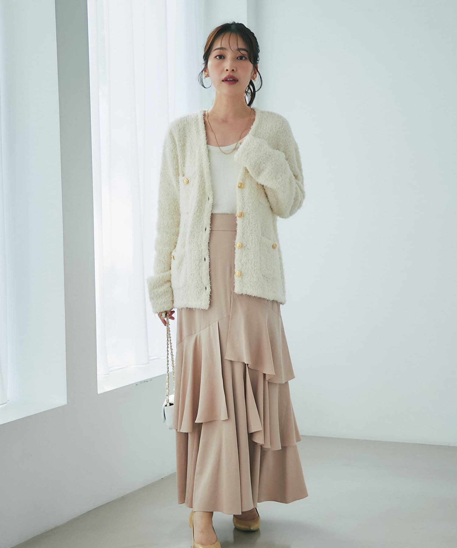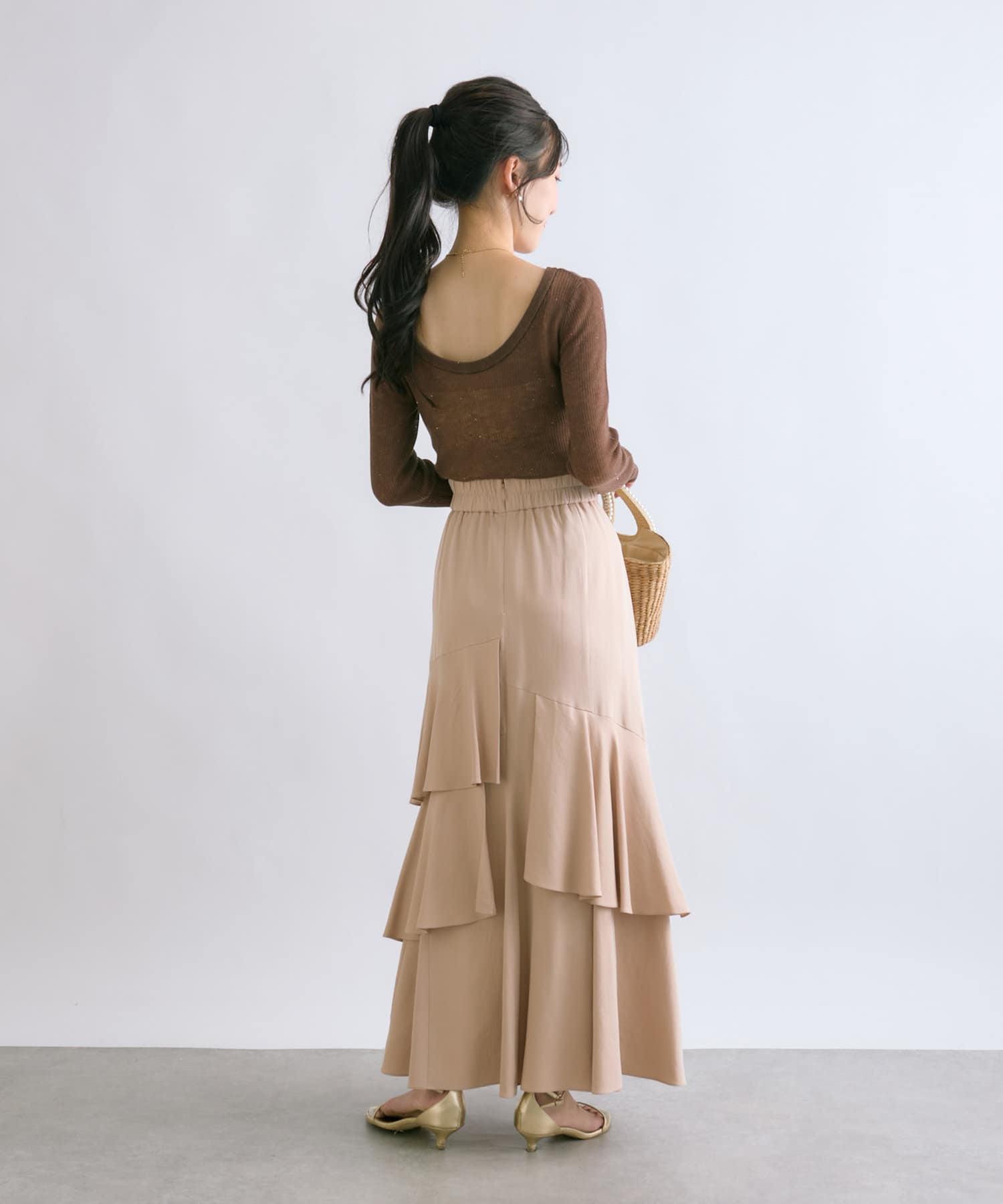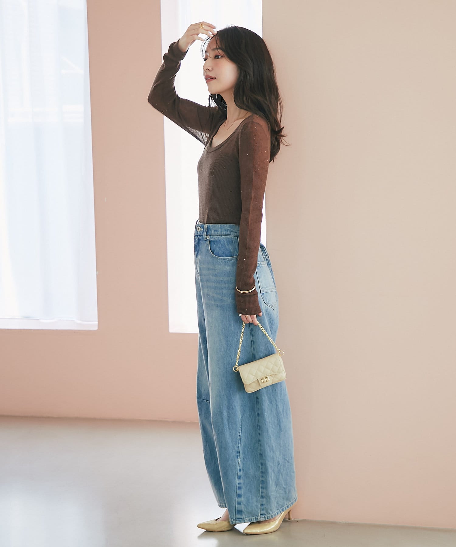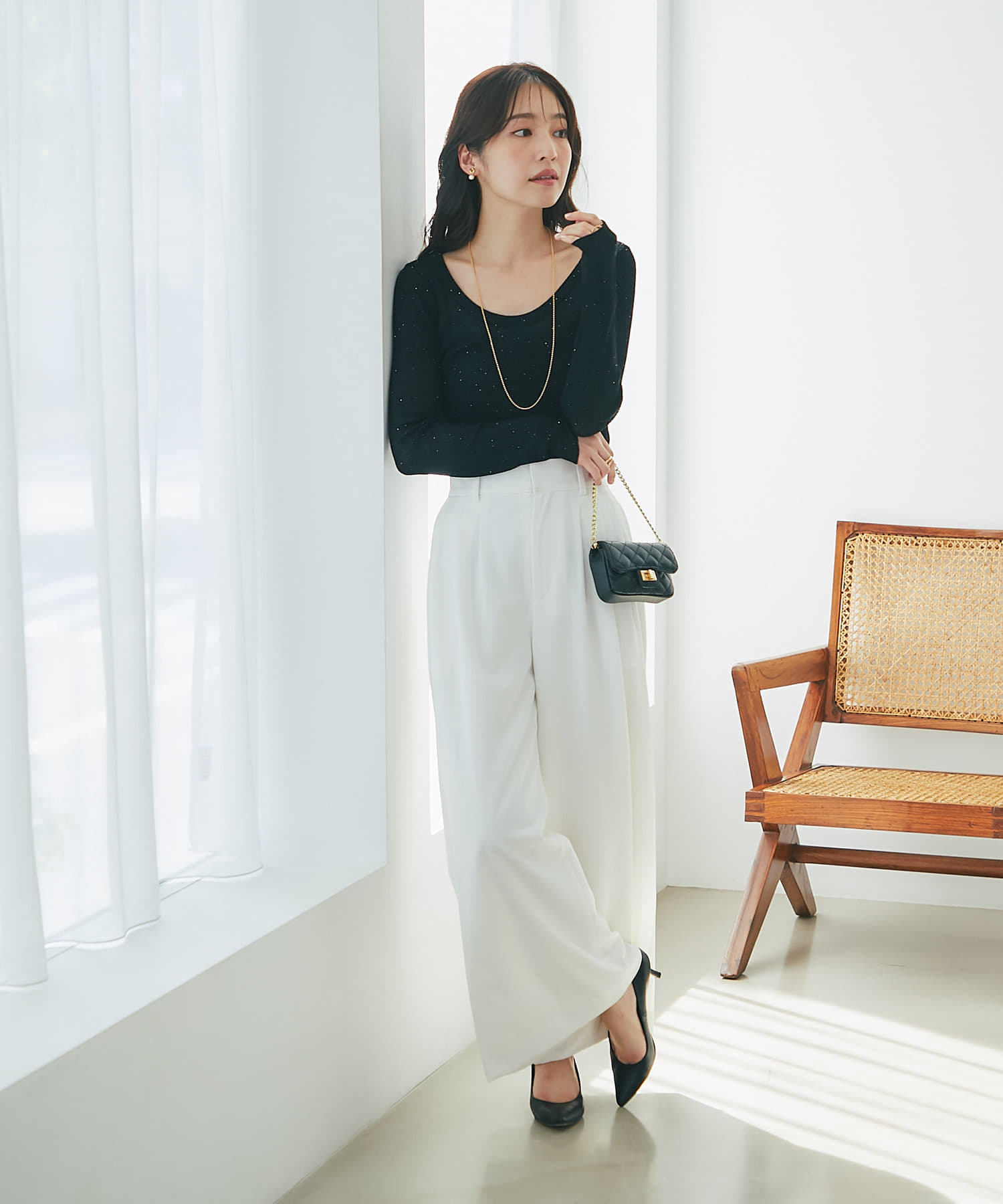 シアーな生地感にスパンコールのきらめきが映え、コーディネートにトレンド感をプラスしてくれます。