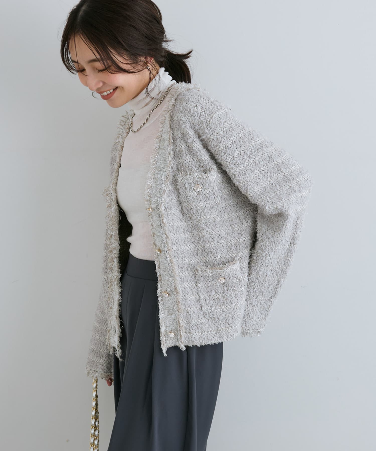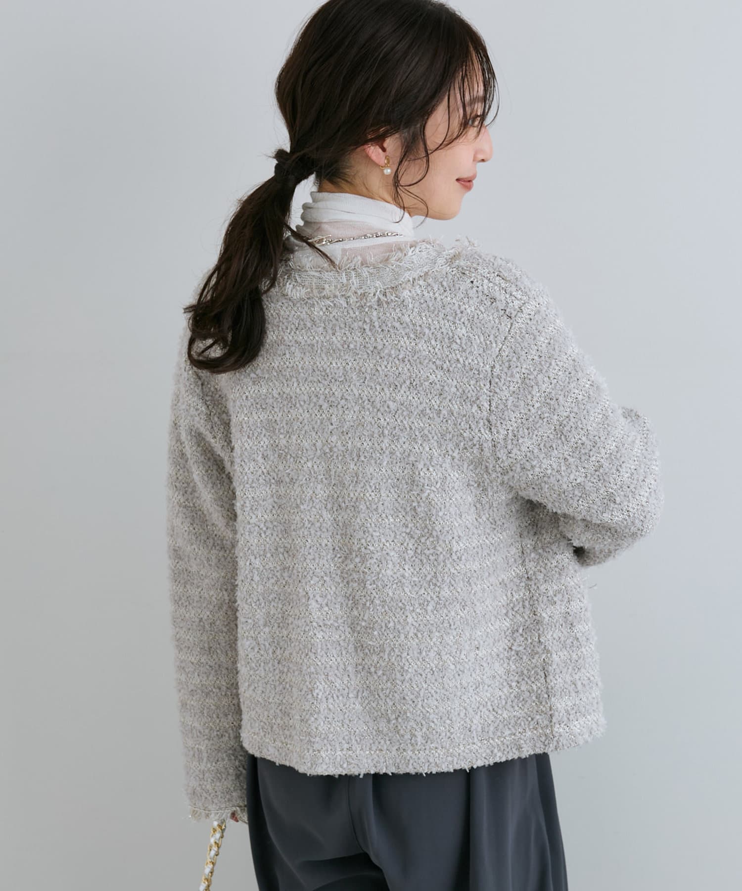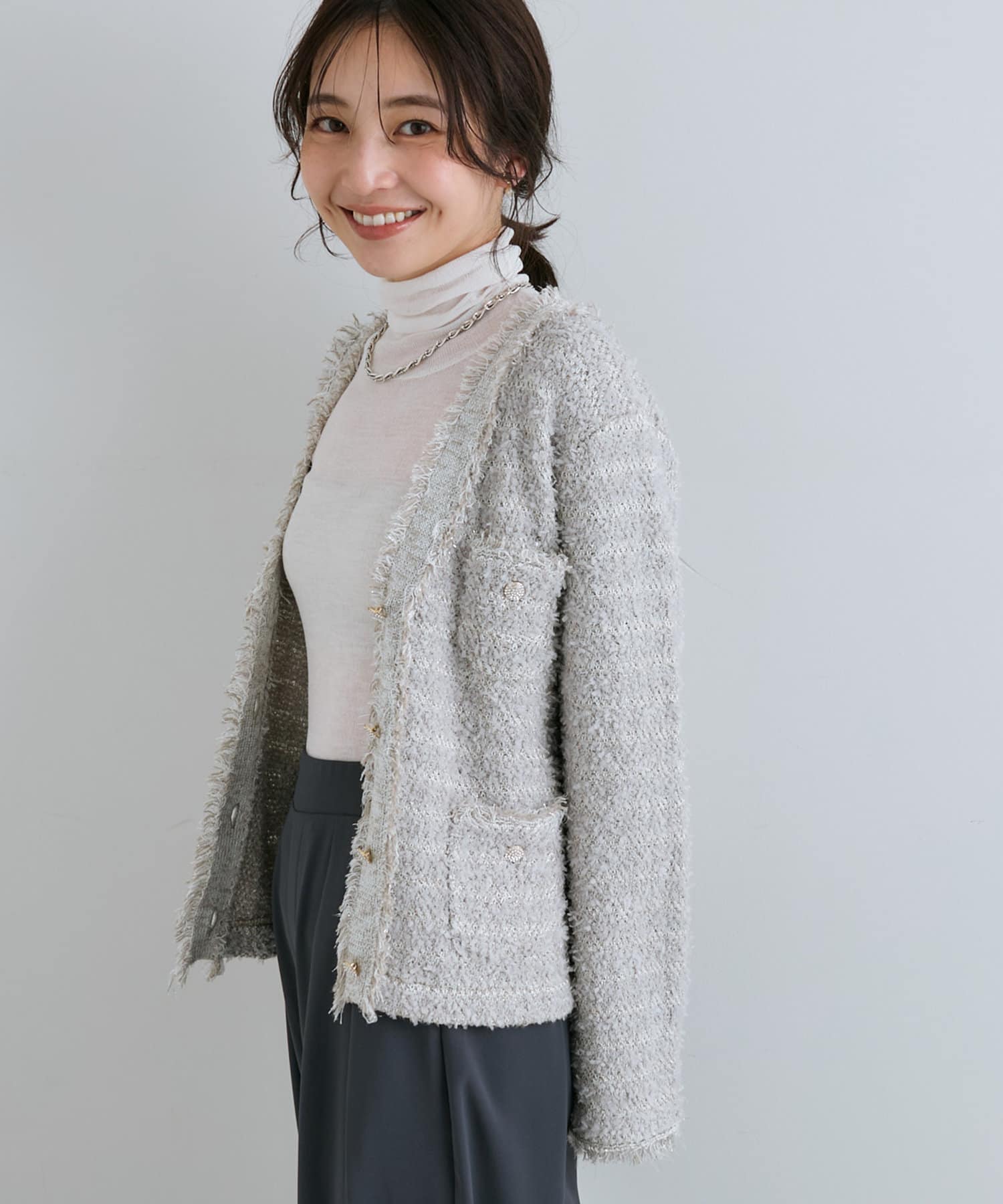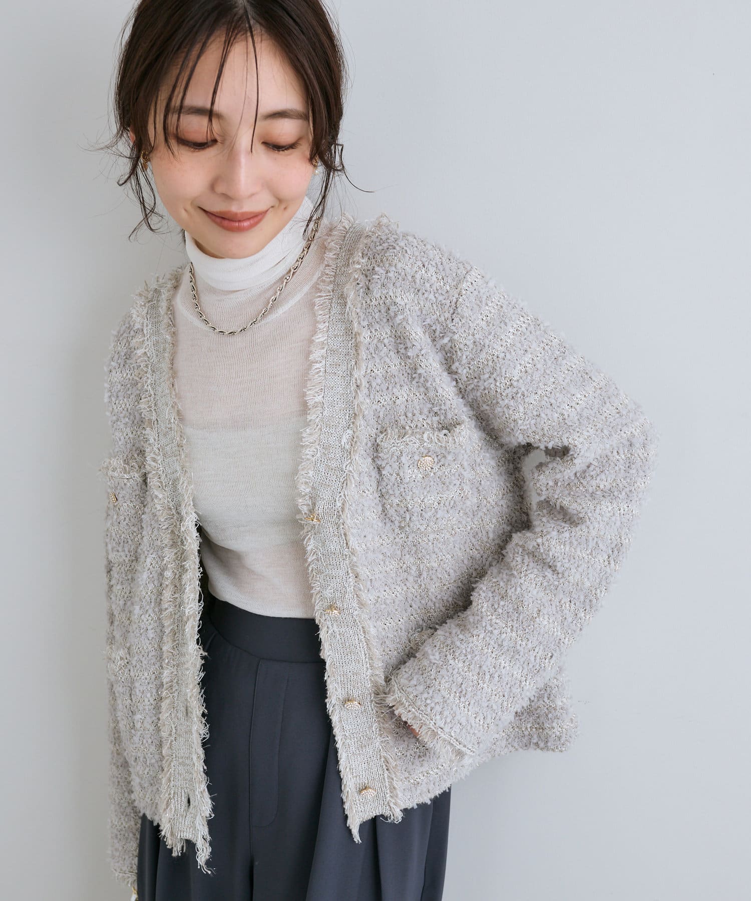 人気アイテムがアップデート!上品な華やかさのツイードカーディガン