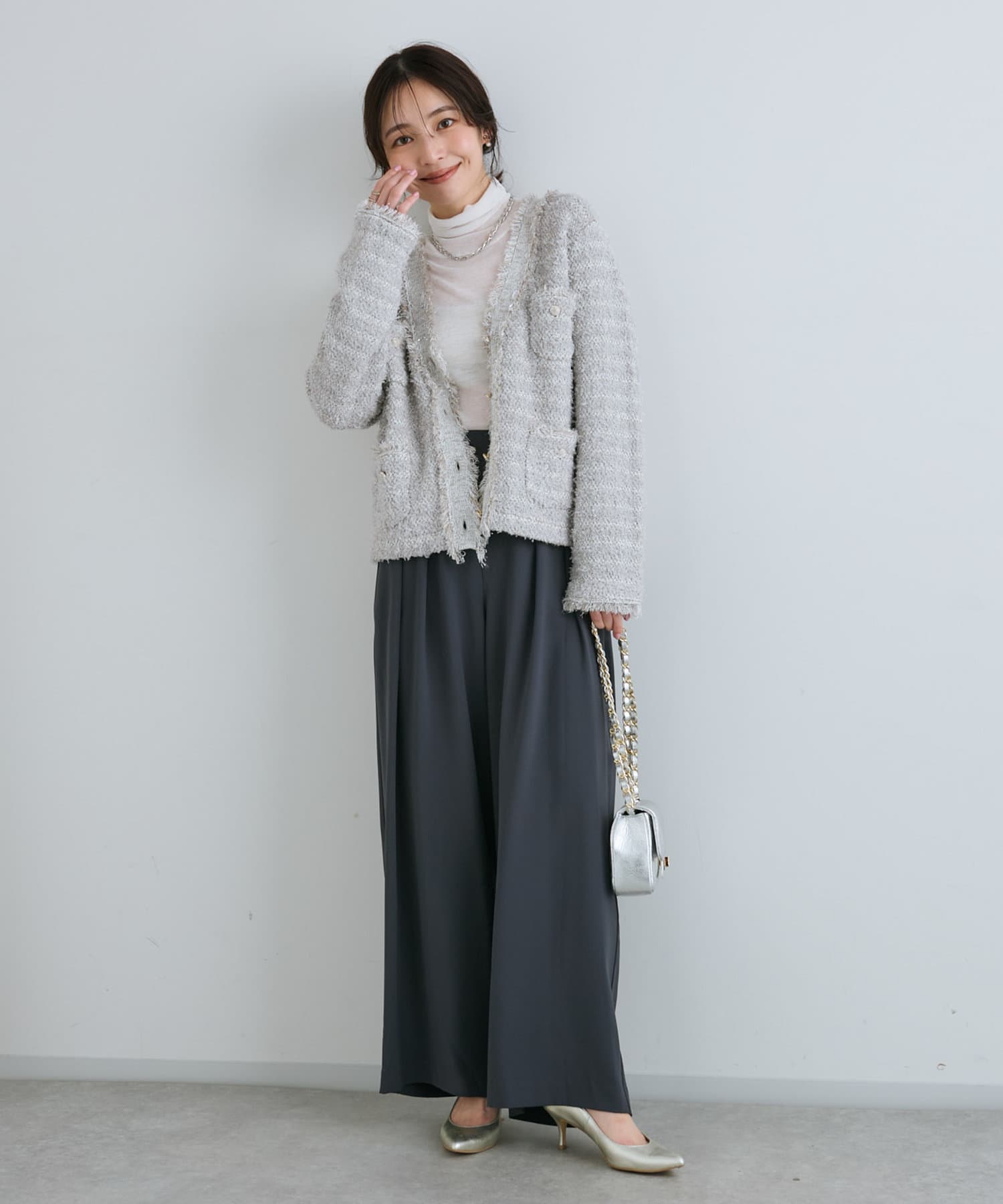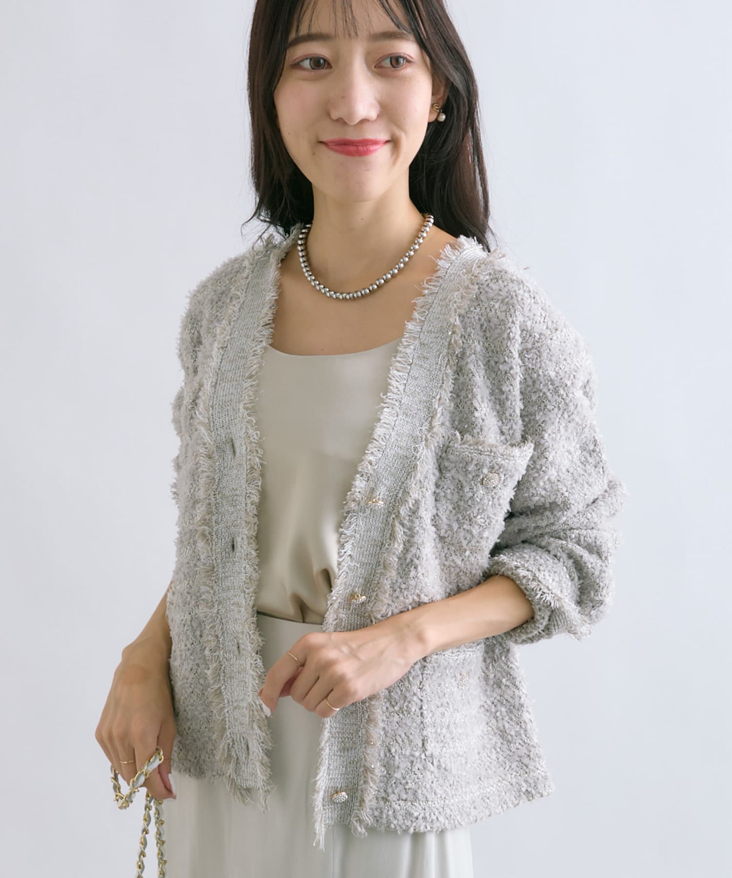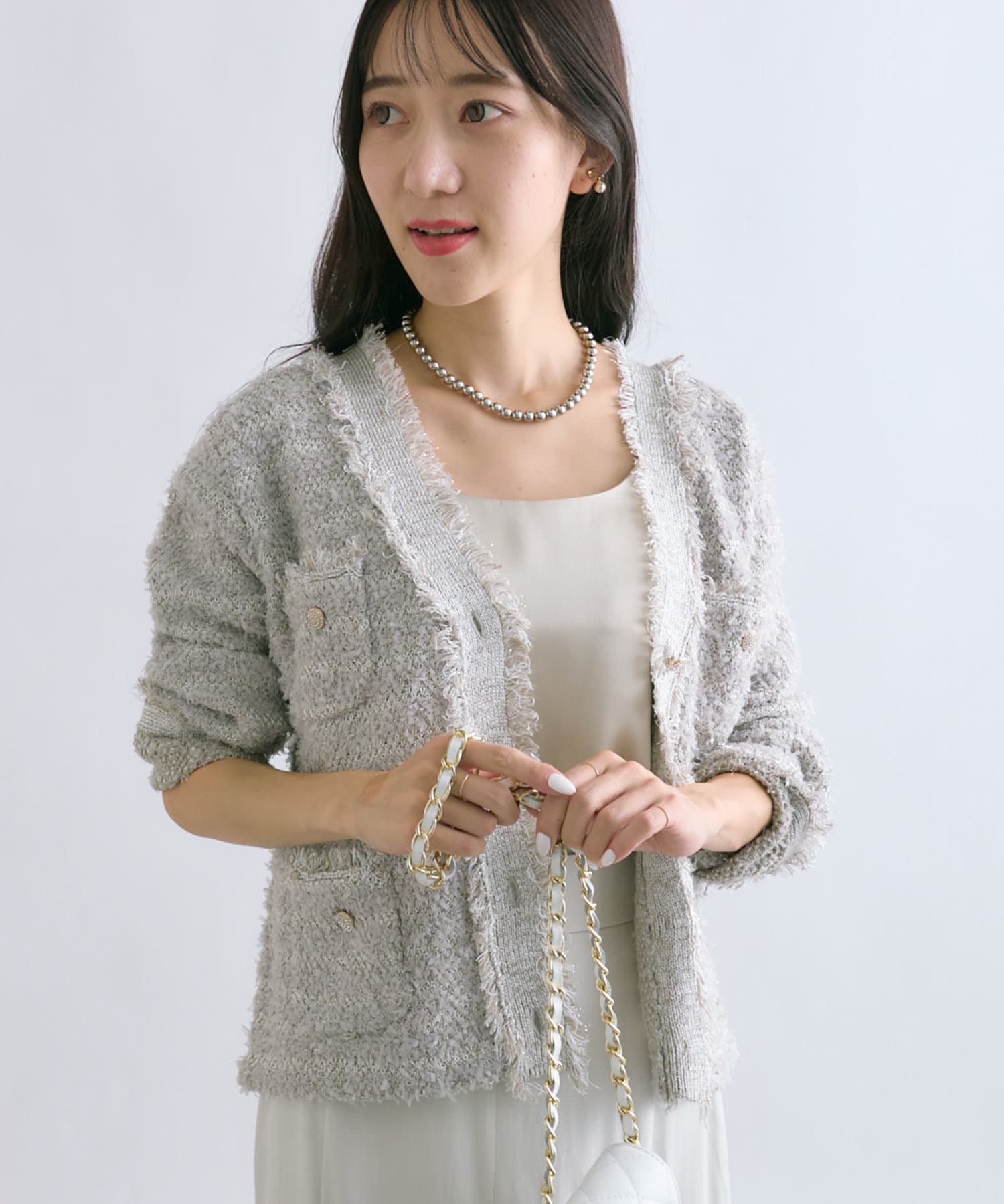 人気アイテムがアップデート!上品な華やかさのツイードカーディガン