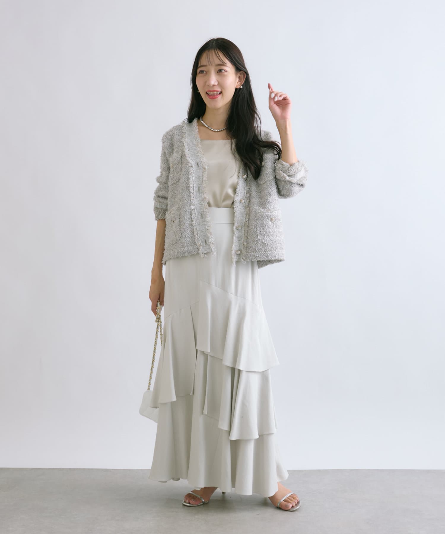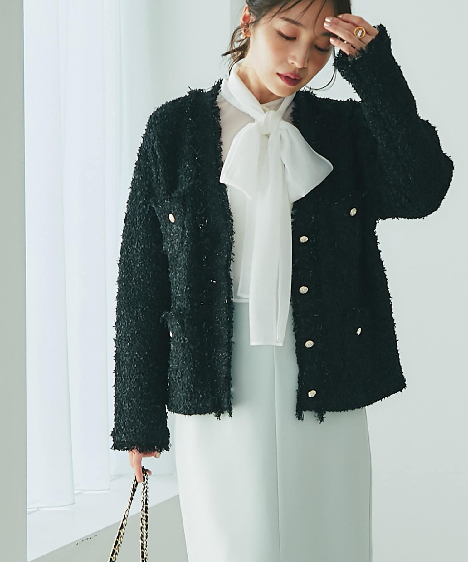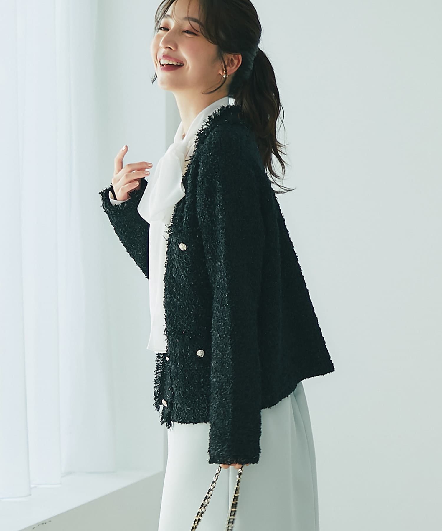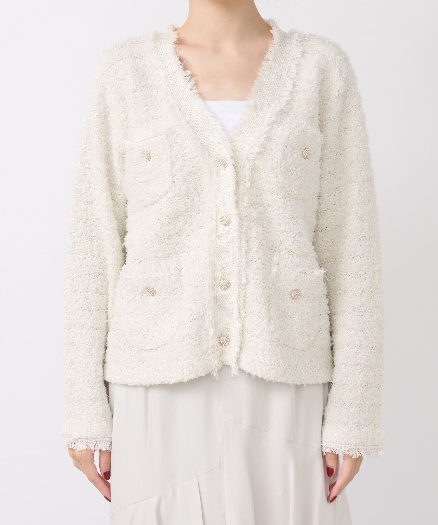 人気アイテムがアップデート!上品な華やかさのツイードカーディガン