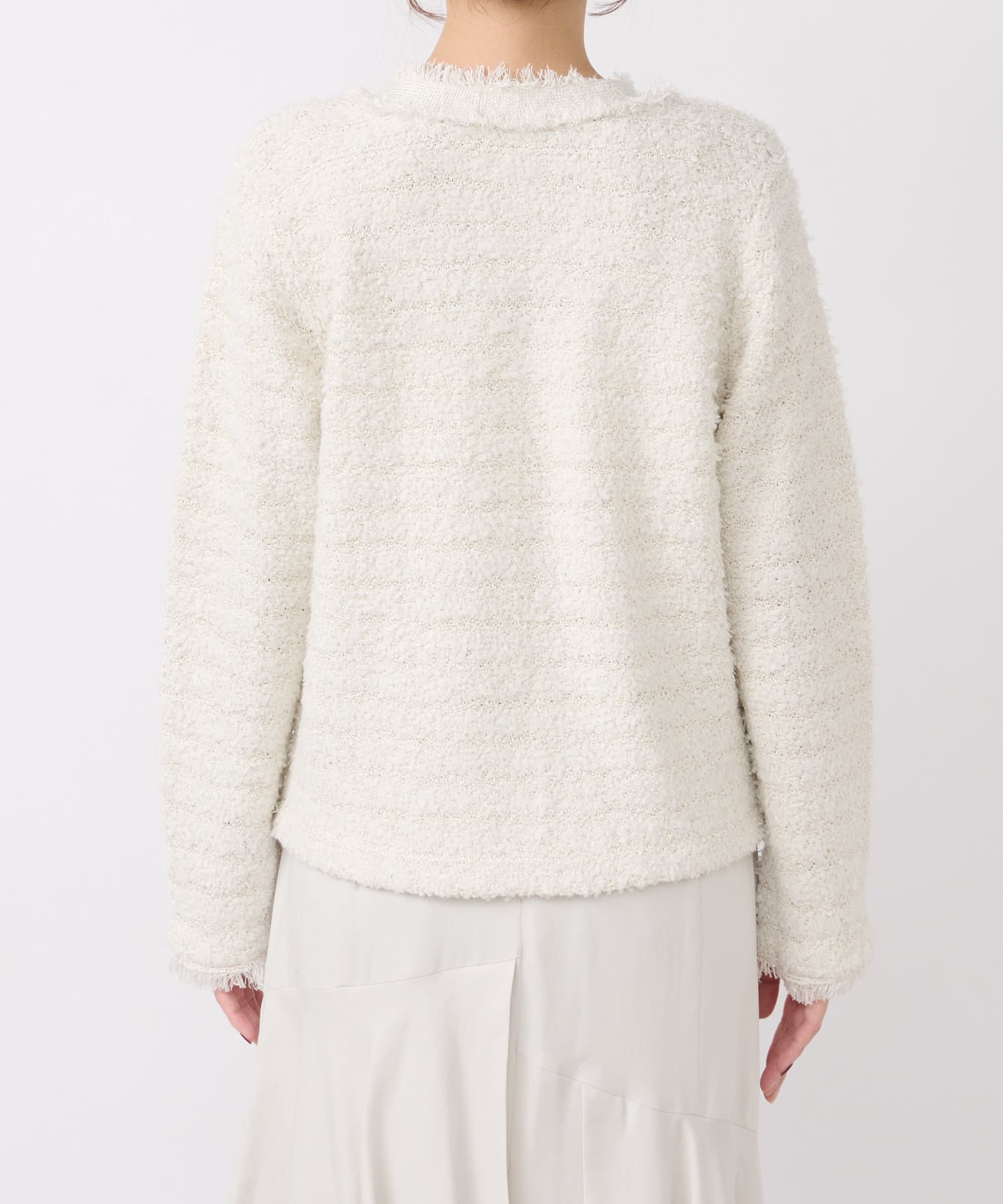 昨年好評だったファンシーツイードのような上品見えニットカーディガン。